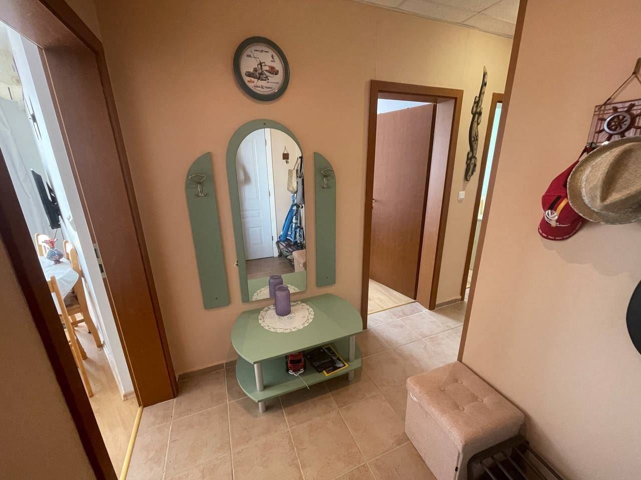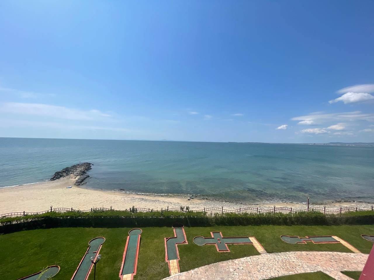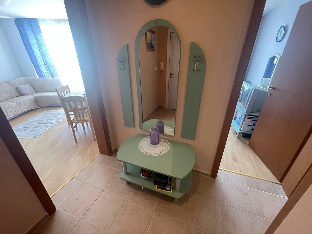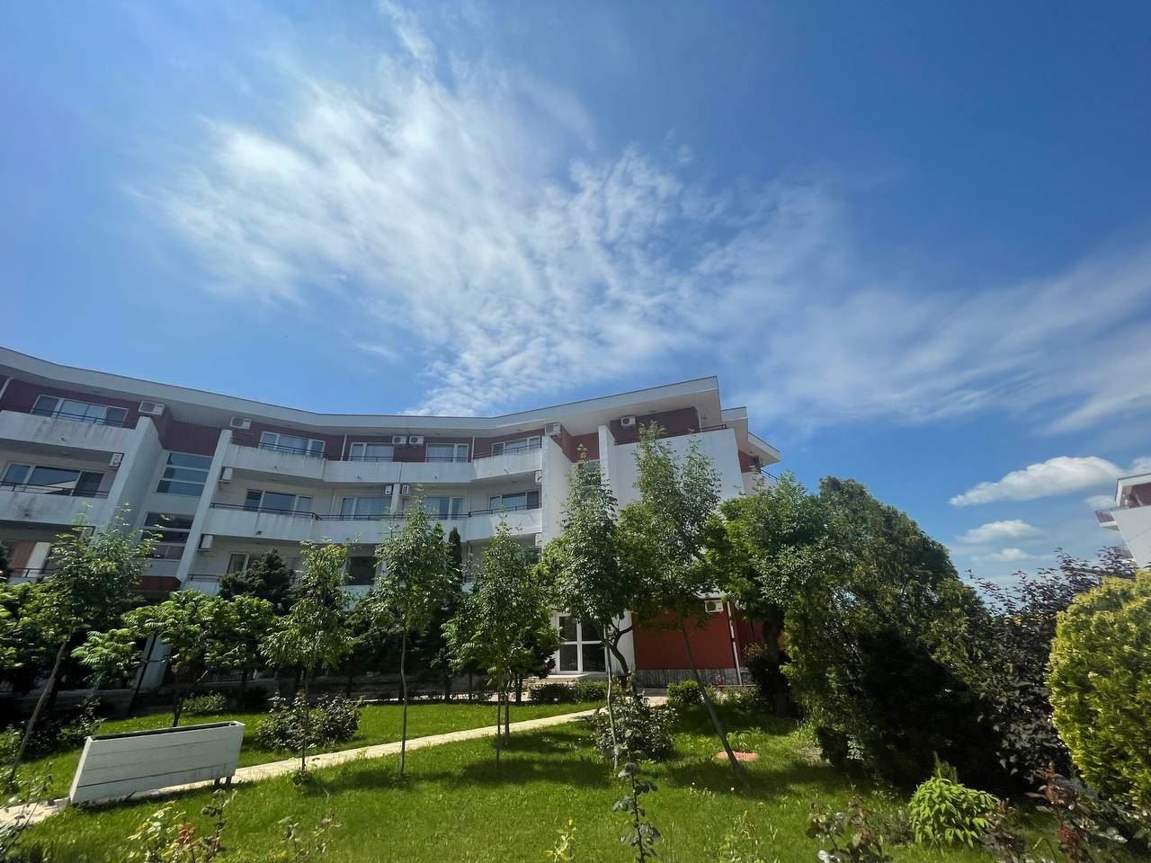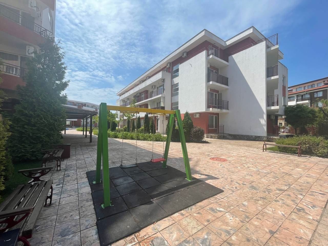 First-class two-bedroom apartment on the first line with direct sea view in the resort Elenite in an excellent family complex. The picturesque resort is a green area at the foot of the mountains and the very sea. A nice private beach is just next to the complex. Comfortable very green and beautiful with a large and well-groomed area, the complex is suitable for permanent residence. It has several swimming pools and recreation areas, playground, play area, supermarket, hair salon, security, parking. The spacious two bedroom apartment is located on the fifth floor of the building. The apartment has a surface of 86 m2 and is for sale fully furnished and equipped. It consists of an entrance hall, a large living room with kitchen area, two bedrooms, a bathroom and a big balcony with beautiful sea view.