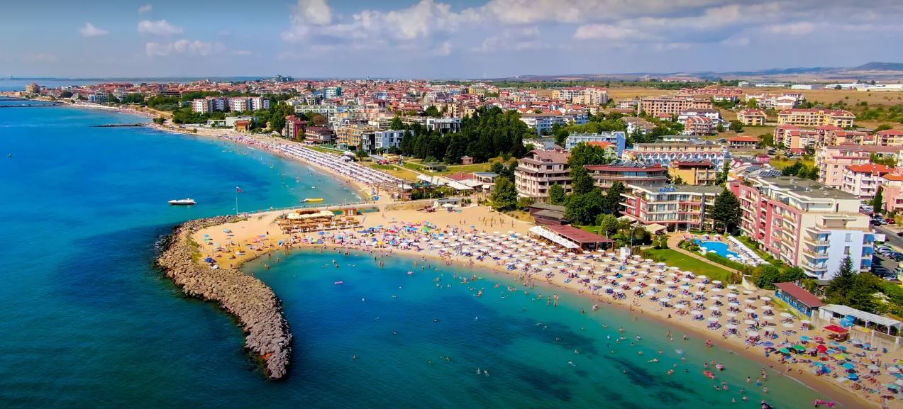 We present for sale a bright and functional one-bedroom apartment with an impressive sea view, located in the most sought-after area of Nessebar – Aurelia district. The property is situated on the first line by the beach, with a total area of 65 m², on the fourth (penultimate) floor, without an elevator.