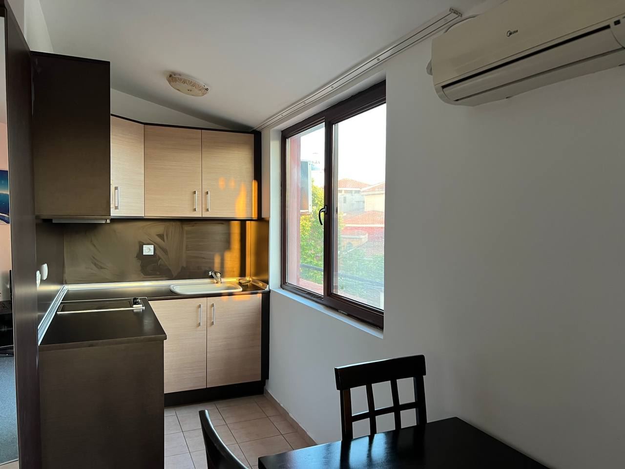 We present to you an exclusive offer for investment or a new home on your dream beach - an attractive studio overlooking the sea in Aheloy, located on the beachfront. This cozy studio offers a total area of 44,27 sq.m and is located on the fifth floor in a modern complex with elevator. The property consists of one spacious room, a balcony - perfect for your morning coffee overlooking the endless blue sea, and a functional bathroom.