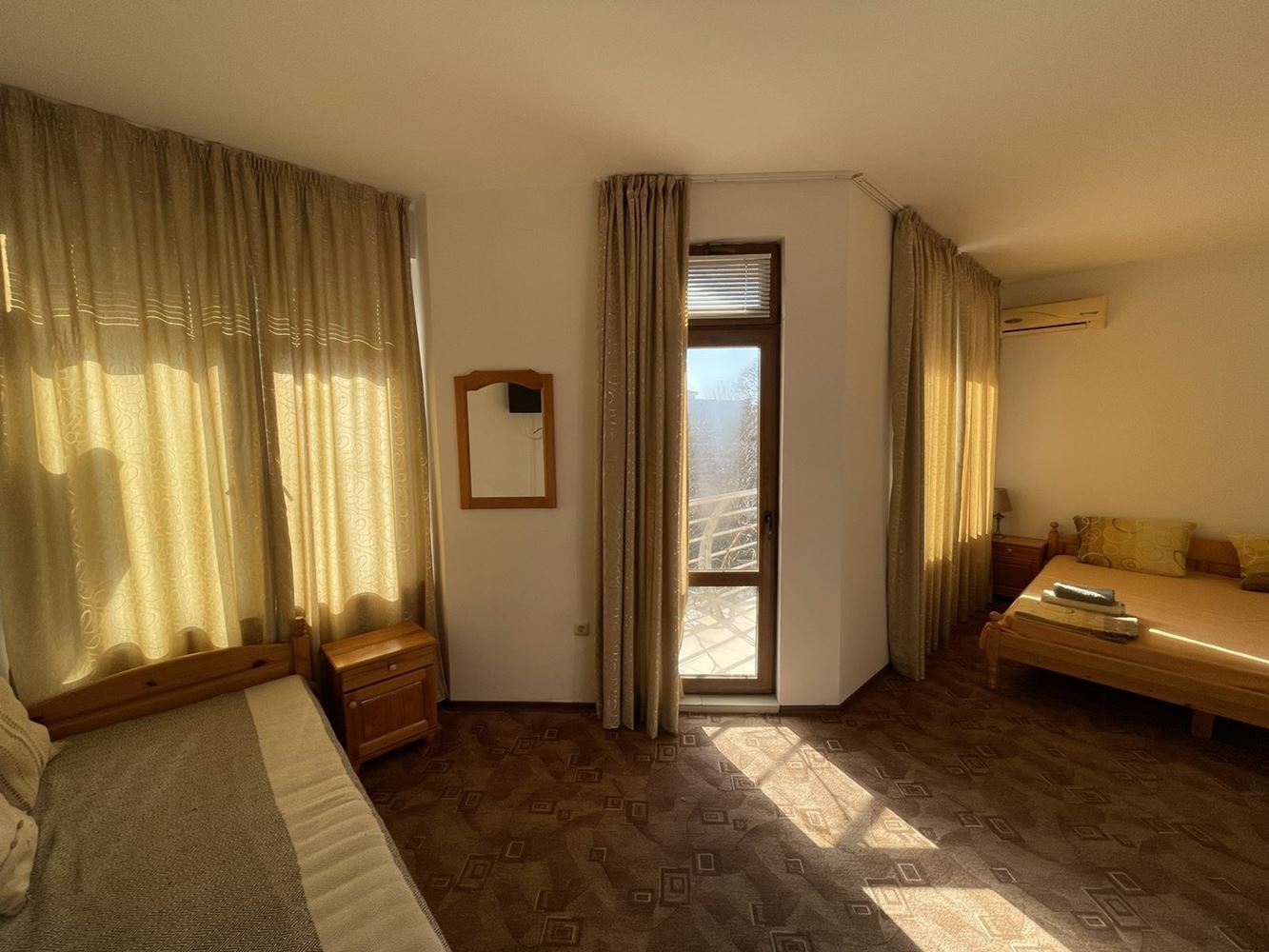 We offer nine rooms located on the first floor of the hotel located on the first line of Northern beach in Primorsko. Each room is furnished, there is a bathroom with a toilet, without kitchen equipment. The total floor area is 408.39m2. The hotel is located on the first line of the North beach. It is one of the favourite places of all holidaymakers. All infrastructure of the resort - bars, restaurants and other entertainments are located nearby. The nearest international airport is Bourgas 40 minutes away.