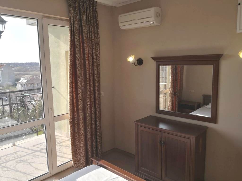 For sale is a one-bedroom flat on the first line in a four-star complex in Pomorie. The flat is located on the sixth floor and has a total area of 65 m2. The flat consists of a corridor, living room with kitchenette, bedroom, bathroom with en-suite bathroom and balcony. The apartment is sold furnished and with all necessary appliances. The rooms are air-conditioned. The luxurious complex offers many opportunities for entertainment and recreation. It combines both majestic architecture and comfort of the interior. Besides offering all the amenities for a pleasant holiday at the sea, the complex is very suitable for year-round living.