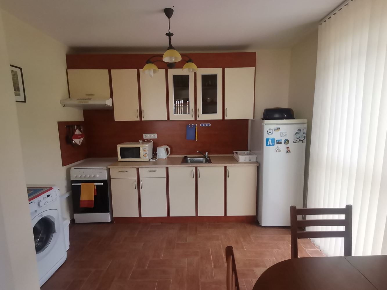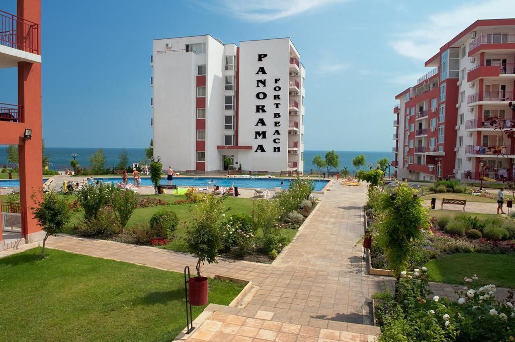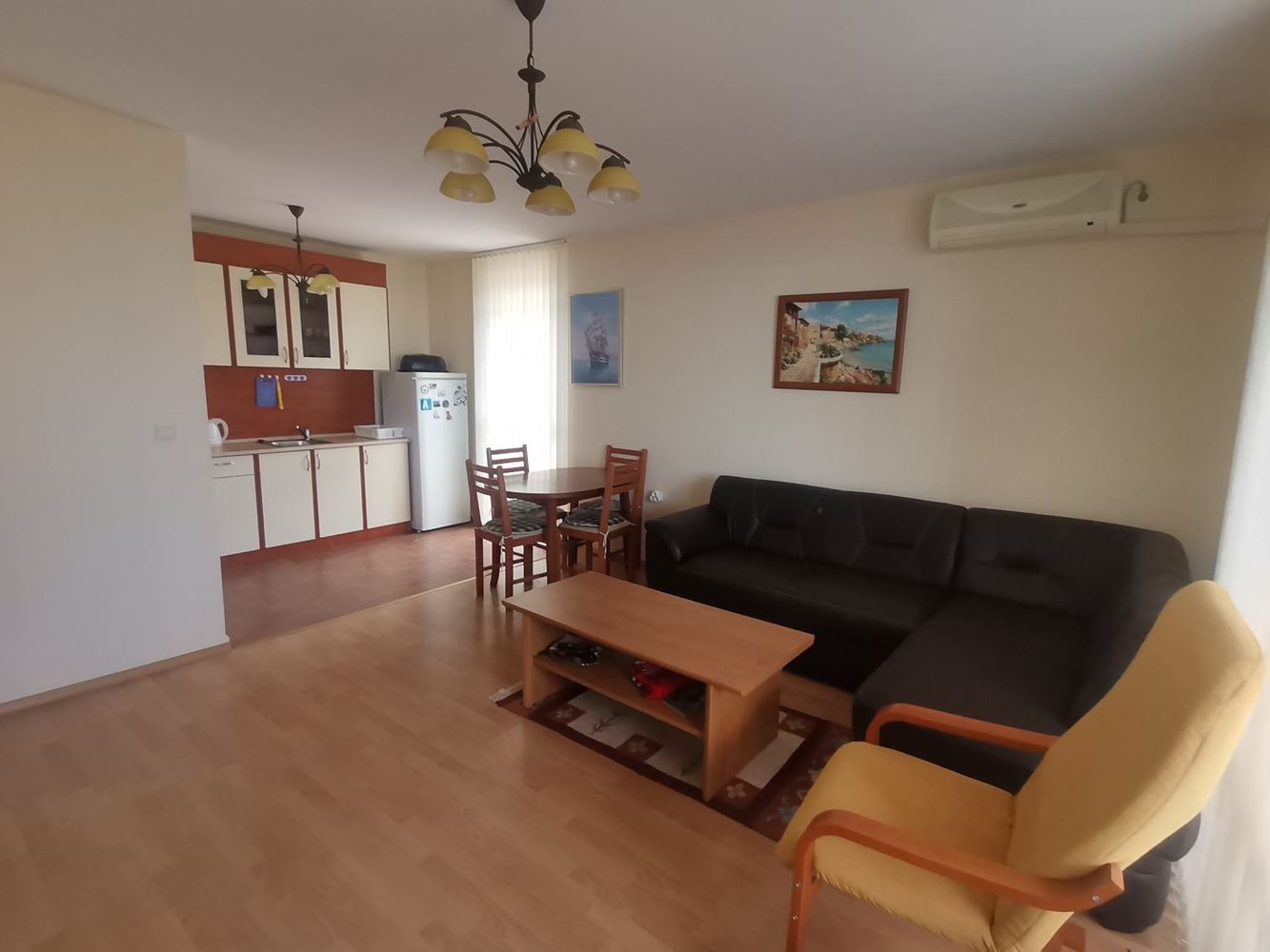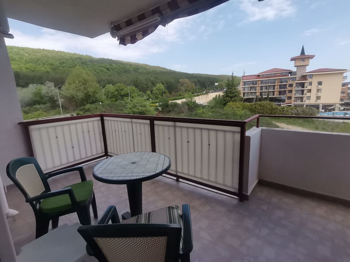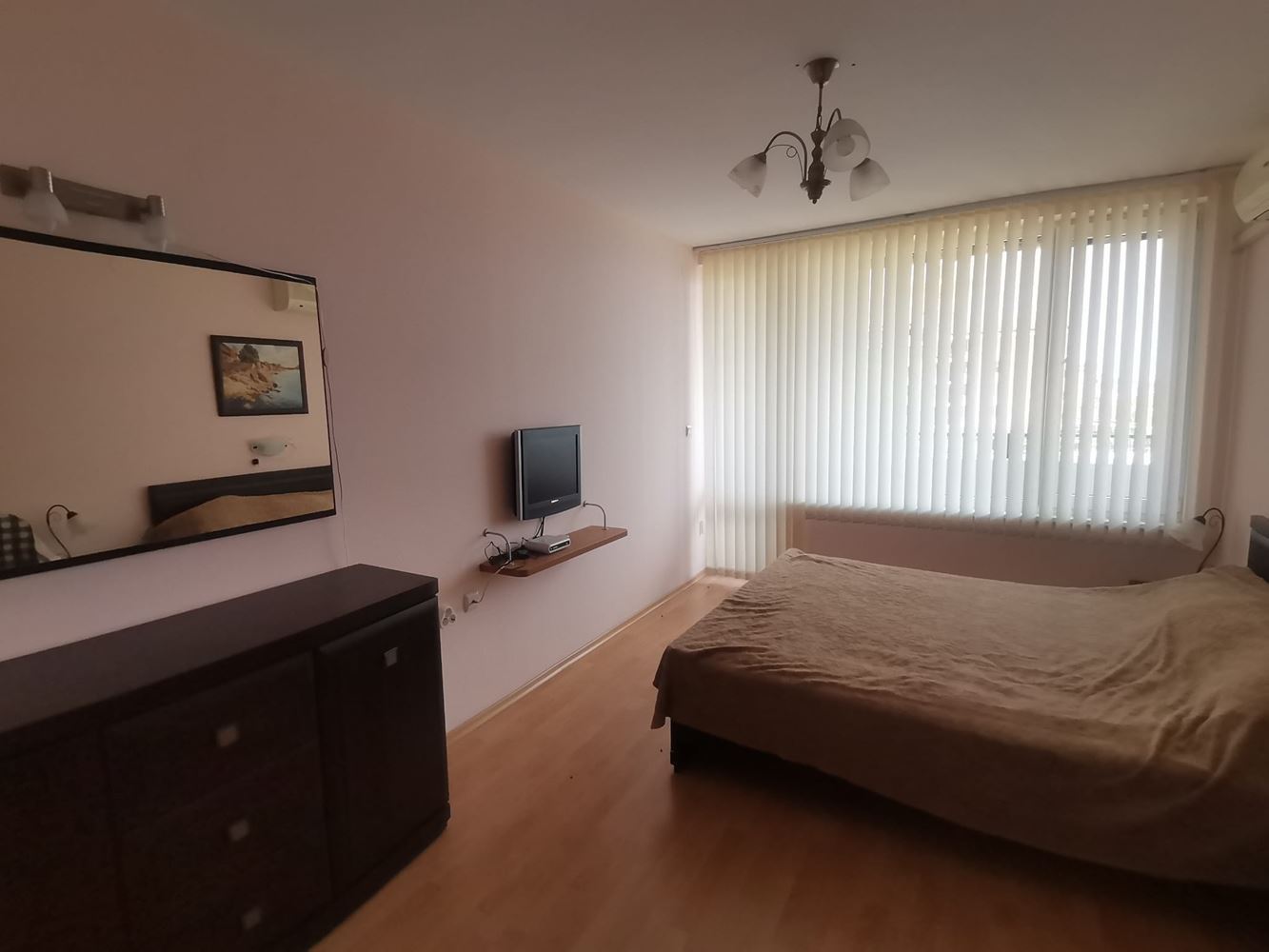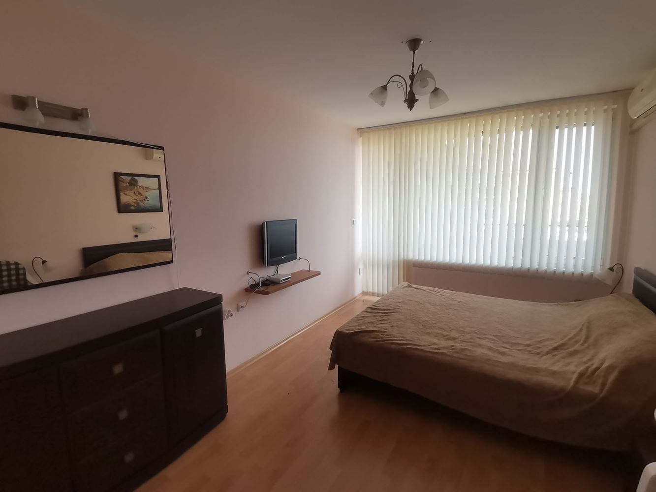 One bedroom flat with sea view in a luxury location near the mountains and the sea. The flat is fully furnished and ready to move in. The complex is located in a prime beachfront location, 50m from the sea. The magical combination of mountain and sea air makes this place unique and the climate extremely favourable. There is a rich infrastructure- four restaurants with Bulgarian and European cuisine, bars and cafes, a supermarket, fitness centres, sauna, internet clubs, a beauty salon, a massage room, a medical centre, a guarded parking area, 18 swimming pools for children and adults including artificial wave pools and Jacuzzi. This 73m2 flat is located on the third floor. It consists of a living room with kitchen, bedroom, bathroom with toilet and a balcony. The apartment is fully furnished and equipped.