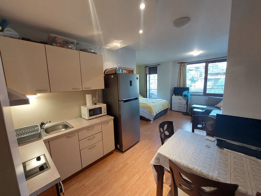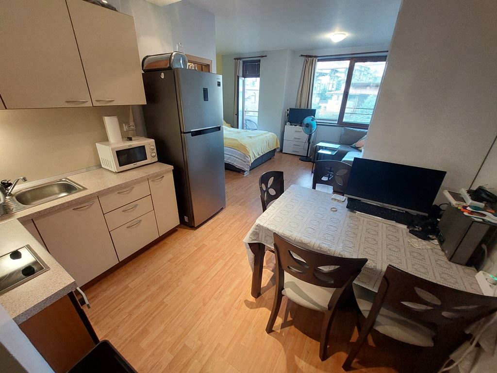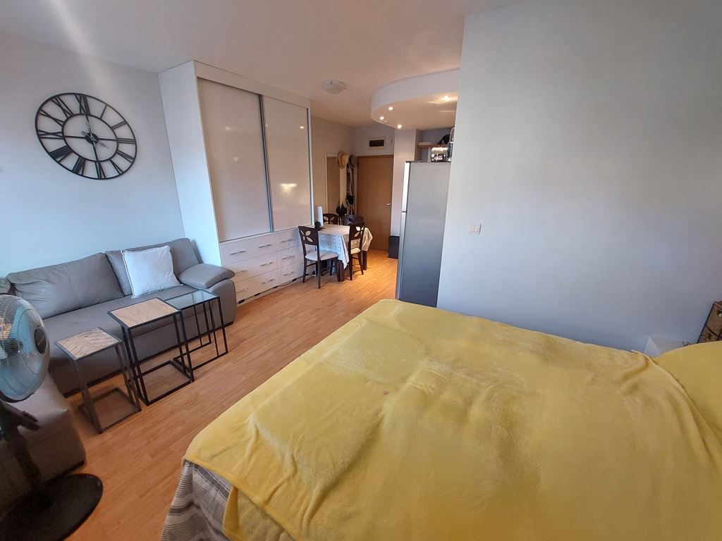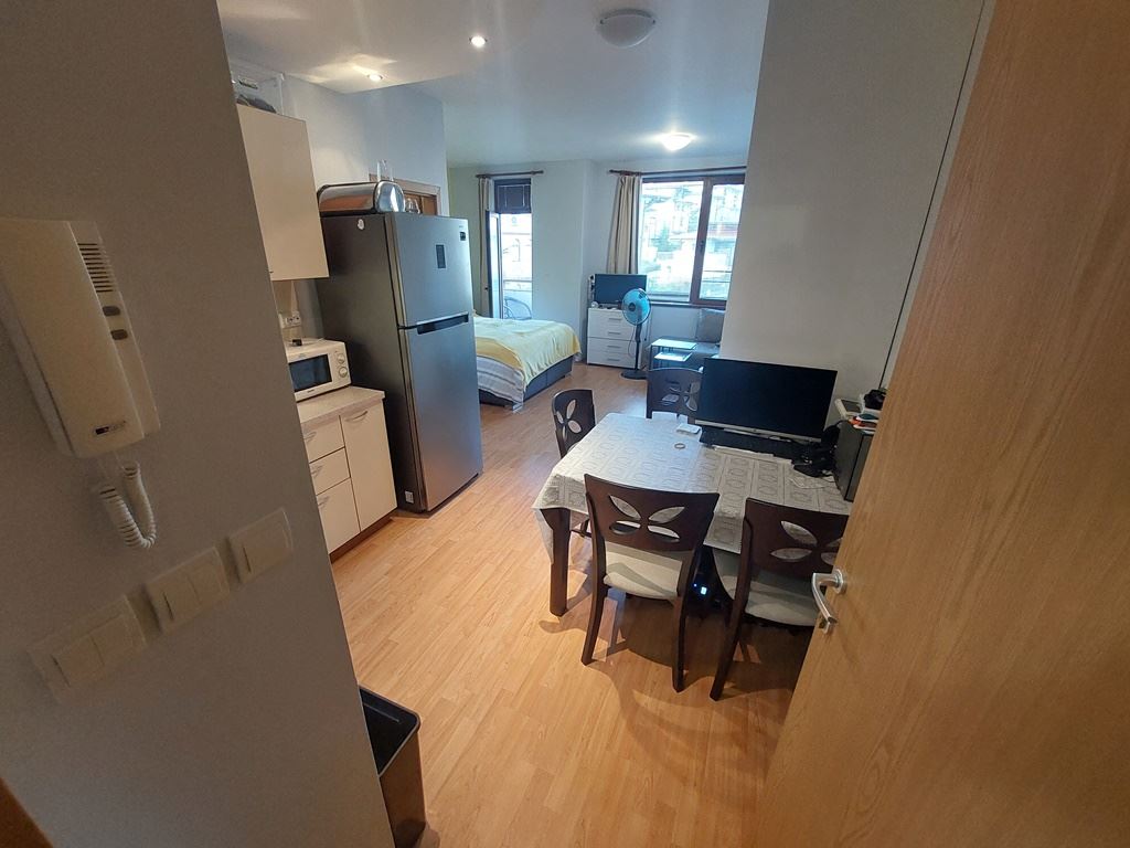 Large studio in St. Vlas, in a magnificent complex, located on the beachfront. The flat is a studio of 48 m2 and is located on the third floor. There is a lift. It consists of a spacious living room-kitchen with seating and dining area, bathroom with WC and a balcony overlooking the landscaped gardens of this charming complex. The complex has eight swimming pools one of which is covered, shops, spa salons, its own four-level free parking. The property is sold fully equipped and furnished.