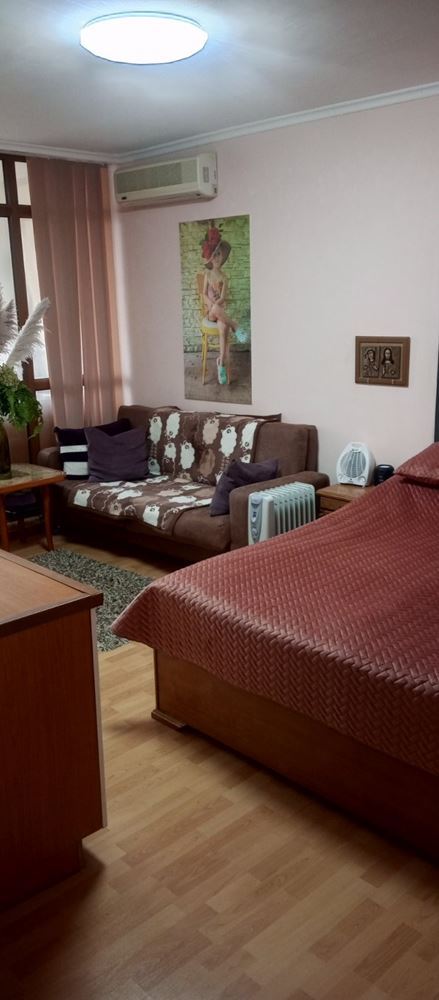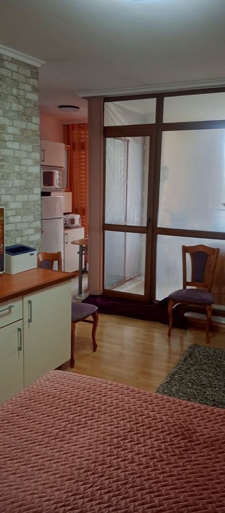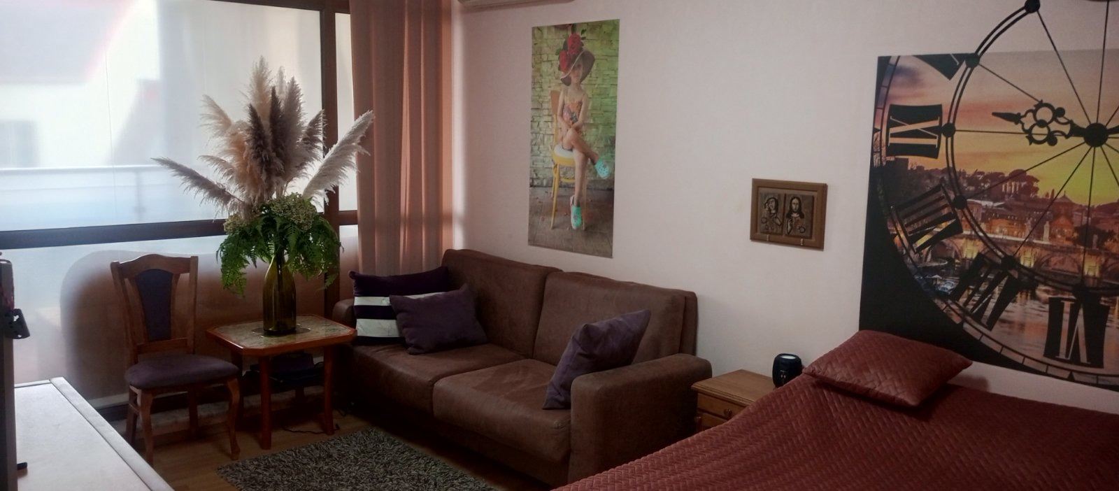 We present a cozy and fully furnished studio, located on the fourth floor of a well maintained residential complex, designed to provide peace, security and comfort for its residents. The property has a total area of 48,84 m², with a functionally organized layout suitable both for personal use and for investment for rental purposes. The studio is bright and spacious, with clearly defined areas for rest, dining and relaxation. It is offered fully furnished, allowing immediate move in without additional costs. The property offers a view of a neighboring complex, ensuring a quiet and pleasant atmosphere, away from the noise of busy streets.