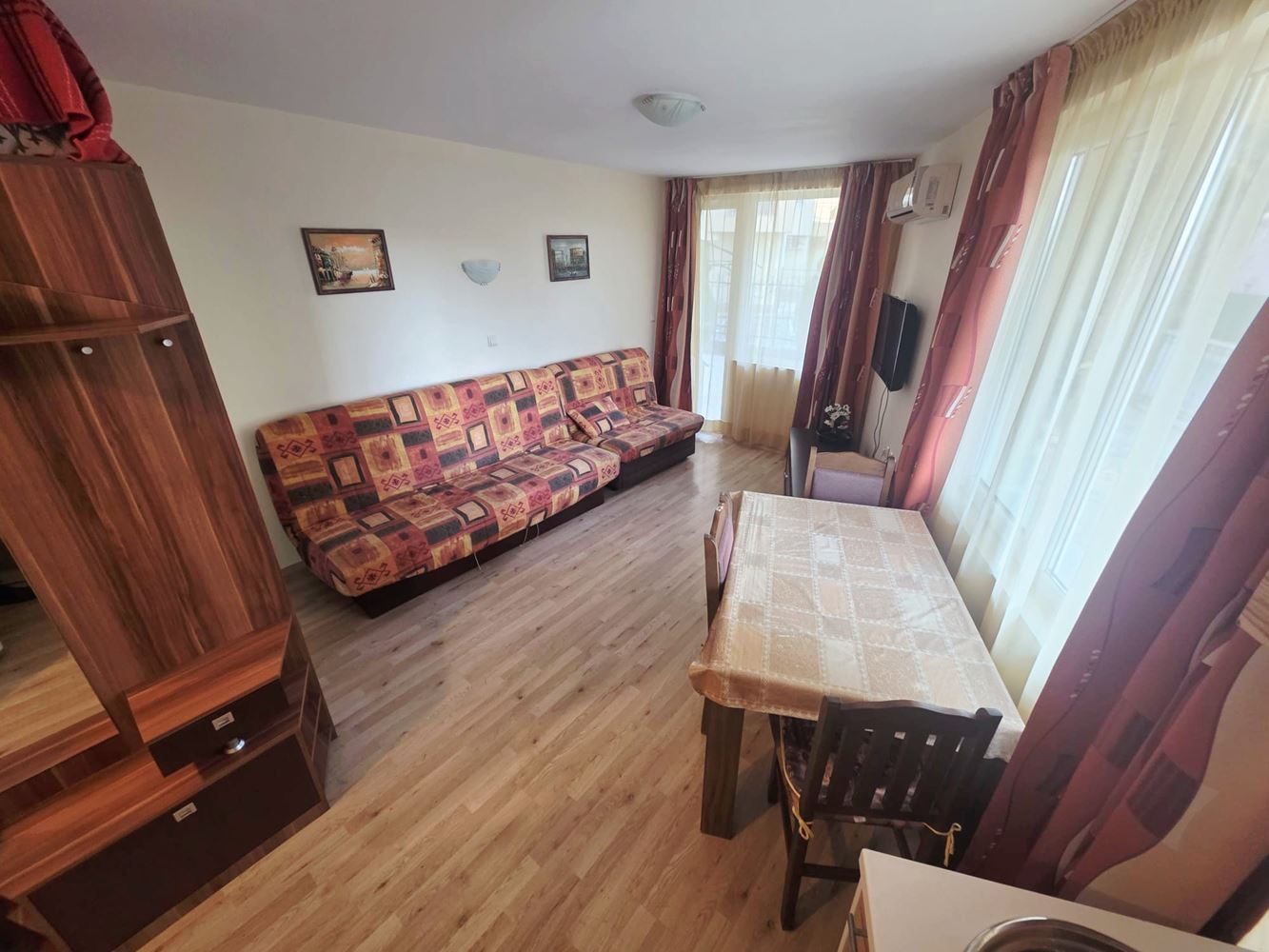 The property has a net area of 29 m², without a terrace, and is practically laid out to provide maximum comfort and functionality. It consists of an entrance hall, a spacious bathroom with a window, providing natural light and good ventilation, and a bright living area combining relaxation and dining zones. Despite its compact size, the studio offers sufficient space for comfortable everyday living.
