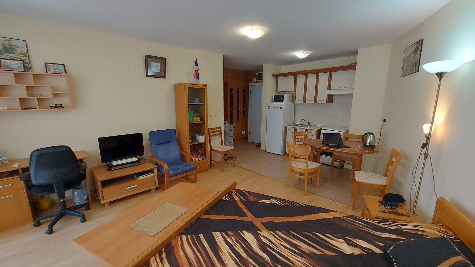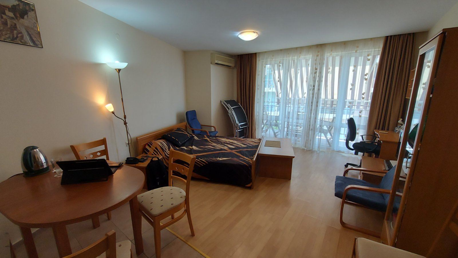 We offer a two-bedroom apartment with sea view in the resort complex Elenite. This property, with a total area of 75 m², combines comfort and coziness with excellent conditions for relaxation. The apartment features a functional bedroom, a living room with a kitchen, and a balcony overlooking the sea and the complex. The property includes a fully furnished bathroom with toilet.