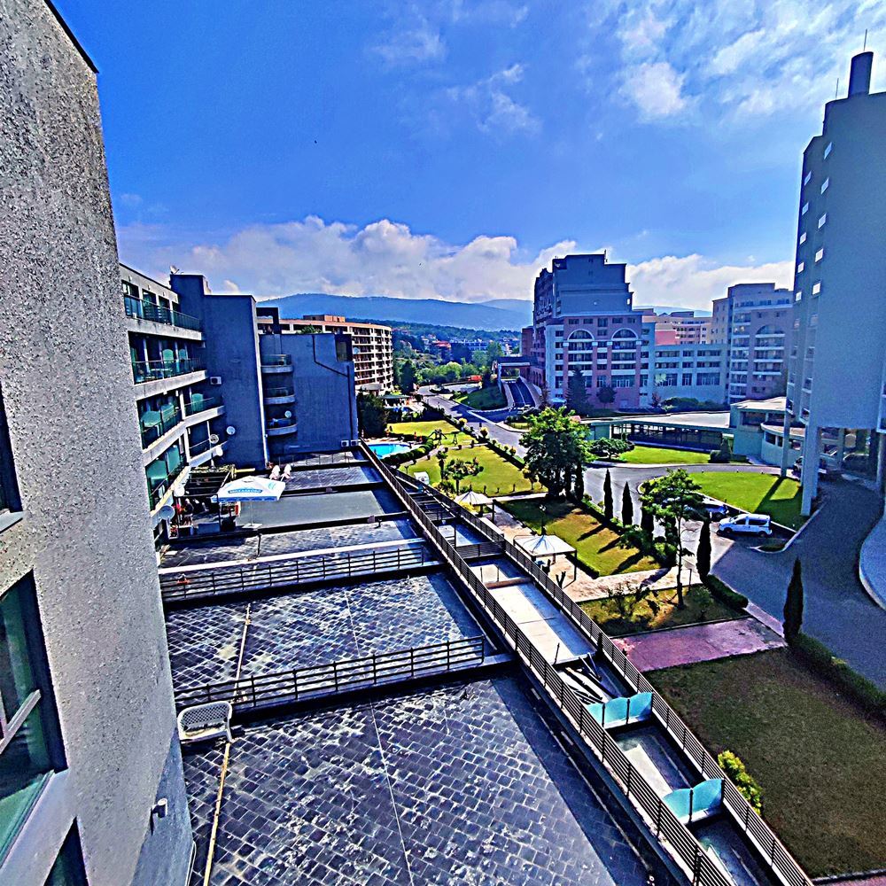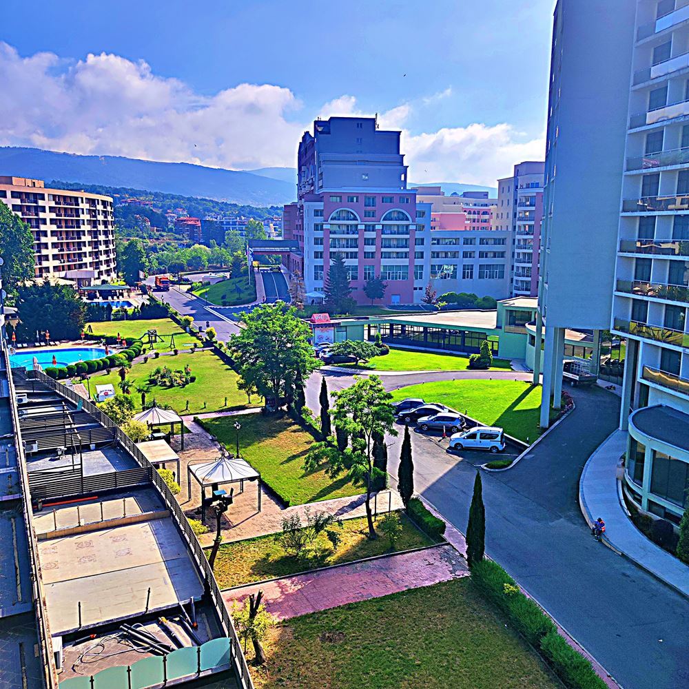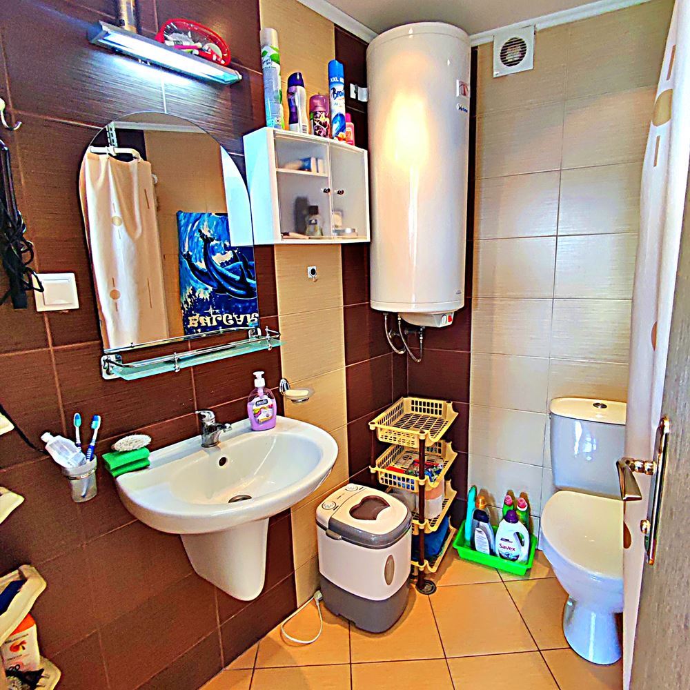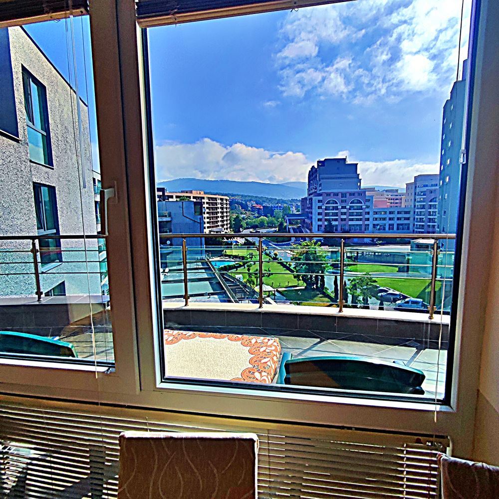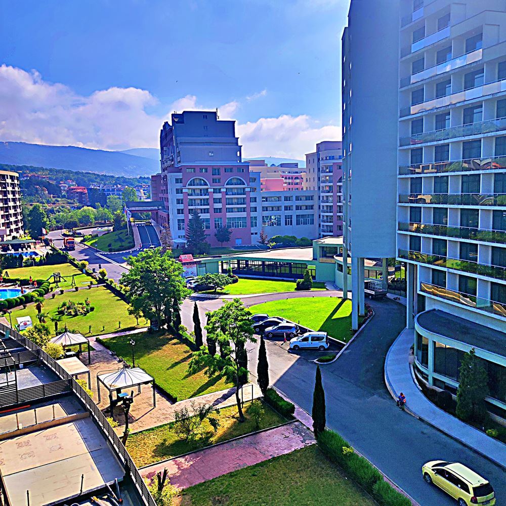 One bedroom furnished apartment in a beautiful complex with commercial premises located in the northern part of the resort of Sunny Beach, two minutes walk from the sea and the beautiful equipped beach. The complex is located on landscaped and landscaped area with a garden, swimming pool, area for sunbathing and recreation, playground. There is a lobby, reception, modern elevators, two restaurants, fitness center, WI-FI, parking. The commercial part includes stores and offices. The complex is closed and guarded 24 hours a day. The management company offers the services for renting the apartment. The apartment of 54 m2 is located on the fifth floor, with a large panoramic terrace overlooking the resort.