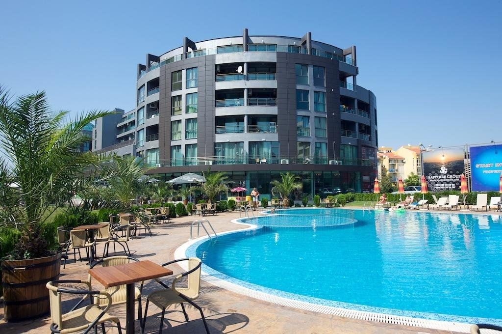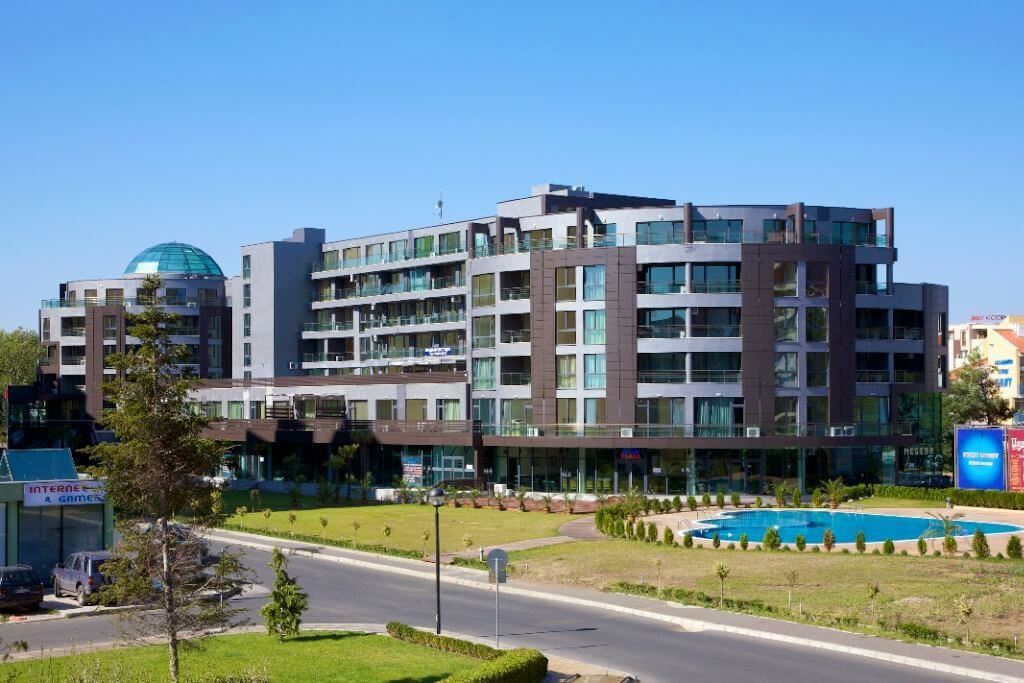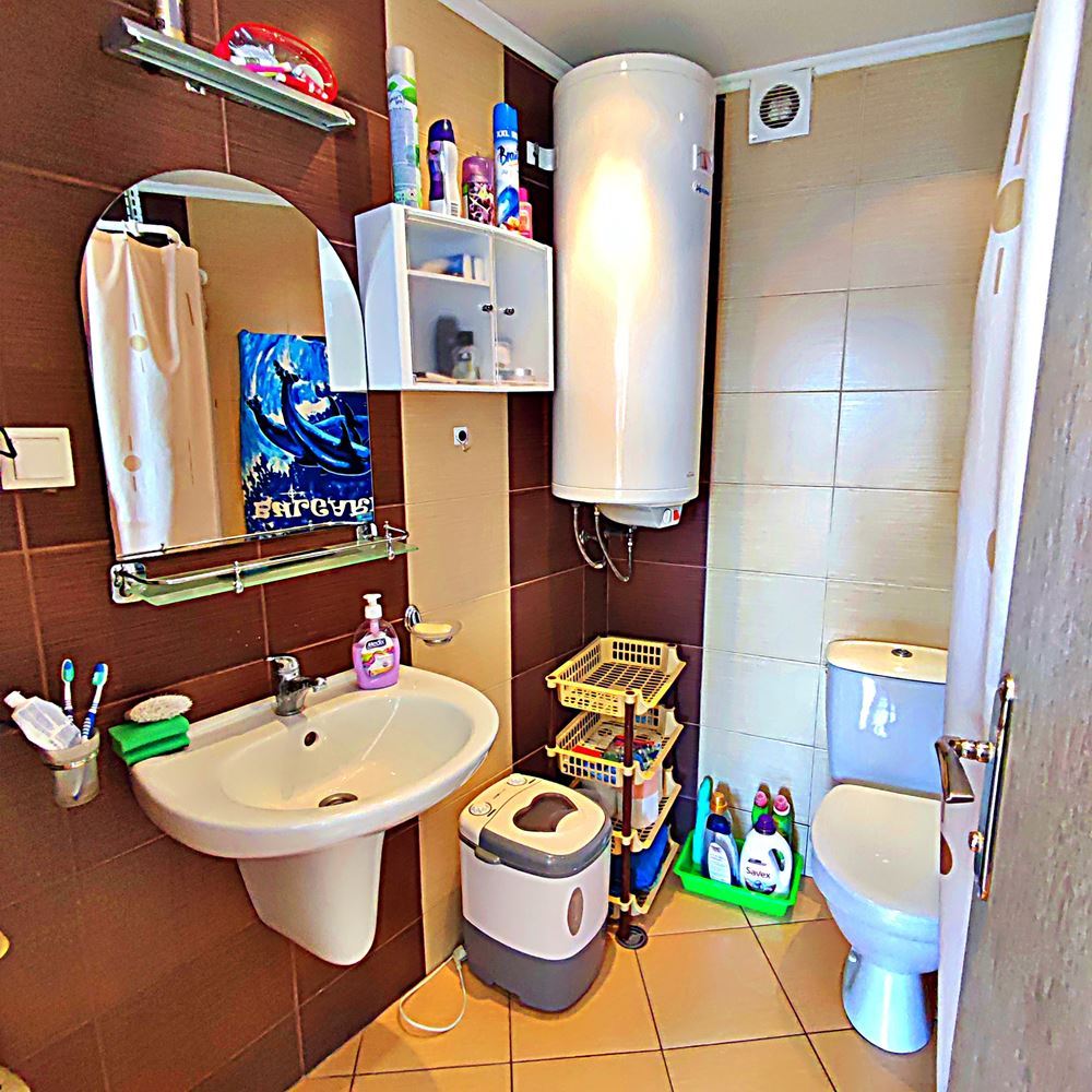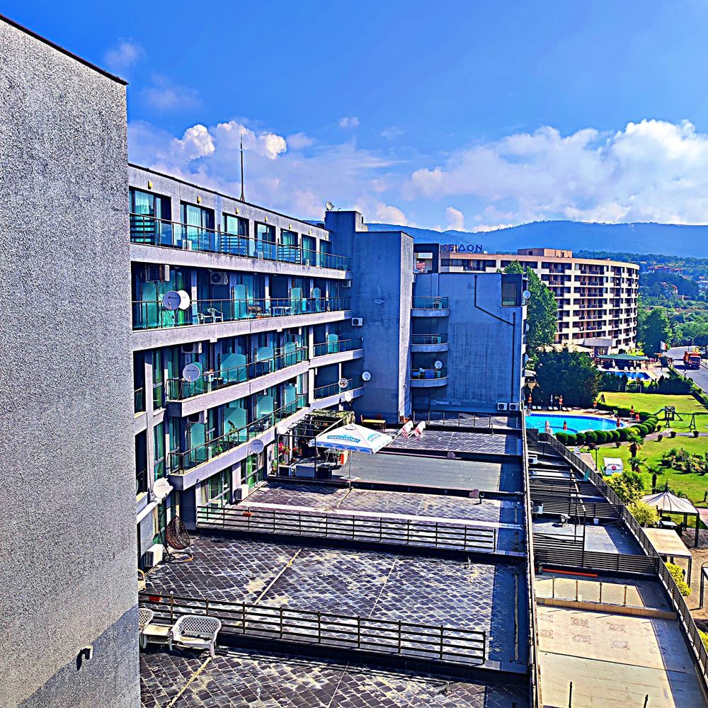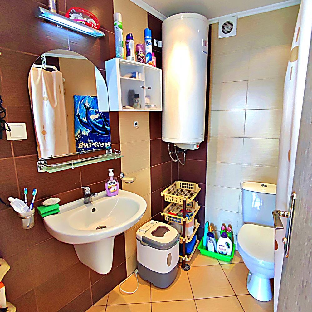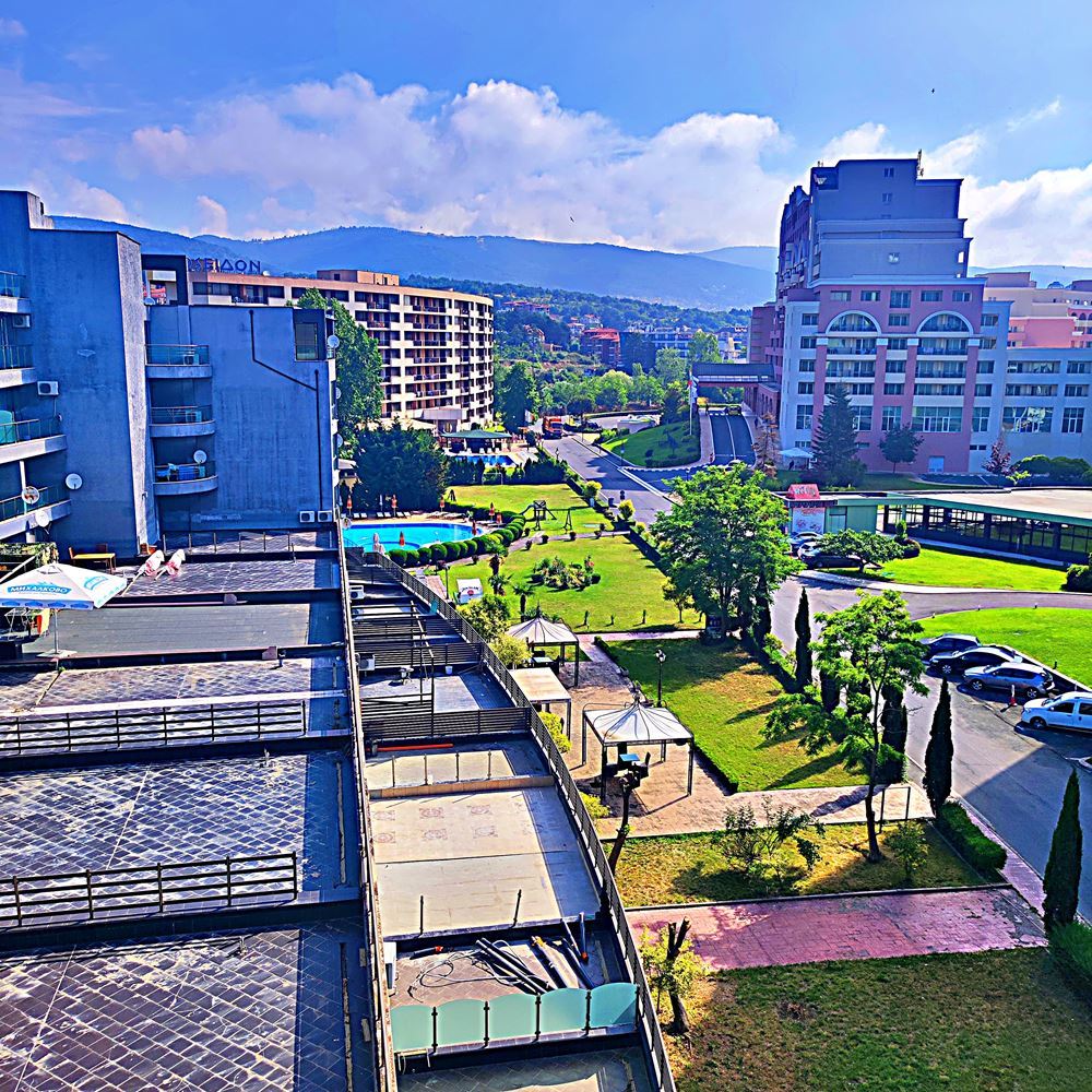 One bedroom furnished apartment in a beautiful complex with commercial premises located in the northern part of the resort of Sunny Beach, two minutes walk from the sea and the beautiful equipped beach. The complex is located on landscaped and landscaped area with a garden, swimming pool, area for sunbathing and recreation, playground. There is a lobby, reception, modern elevators, two restaurants, fitness center, WI-FI, parking. The commercial part includes stores and offices. The complex is closed and guarded 24 hours a day. The management company offers the services for renting the apartment. The apartment of 54 m2 is located on the fifth floor, with a large panoramic terrace overlooking the resort.