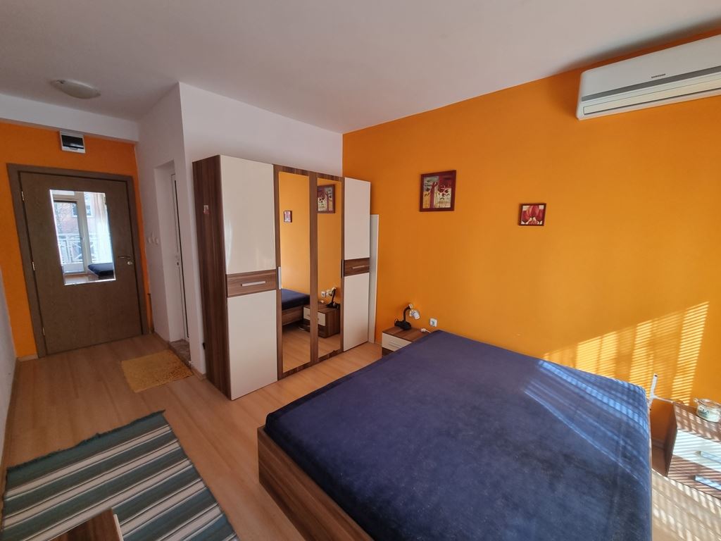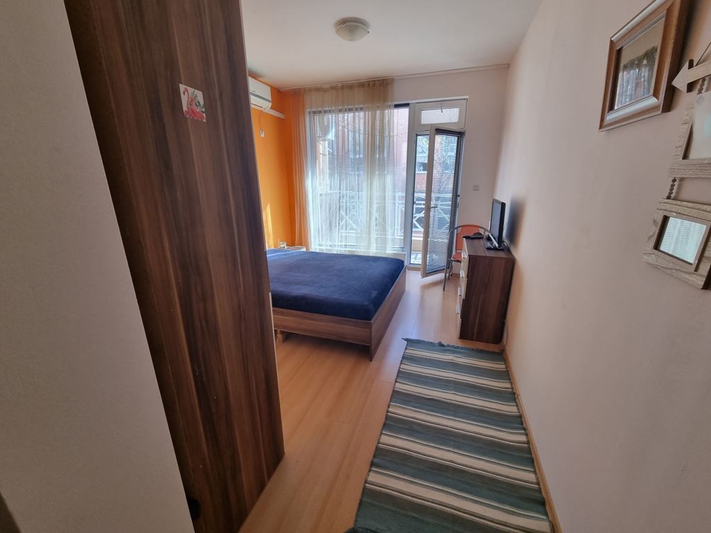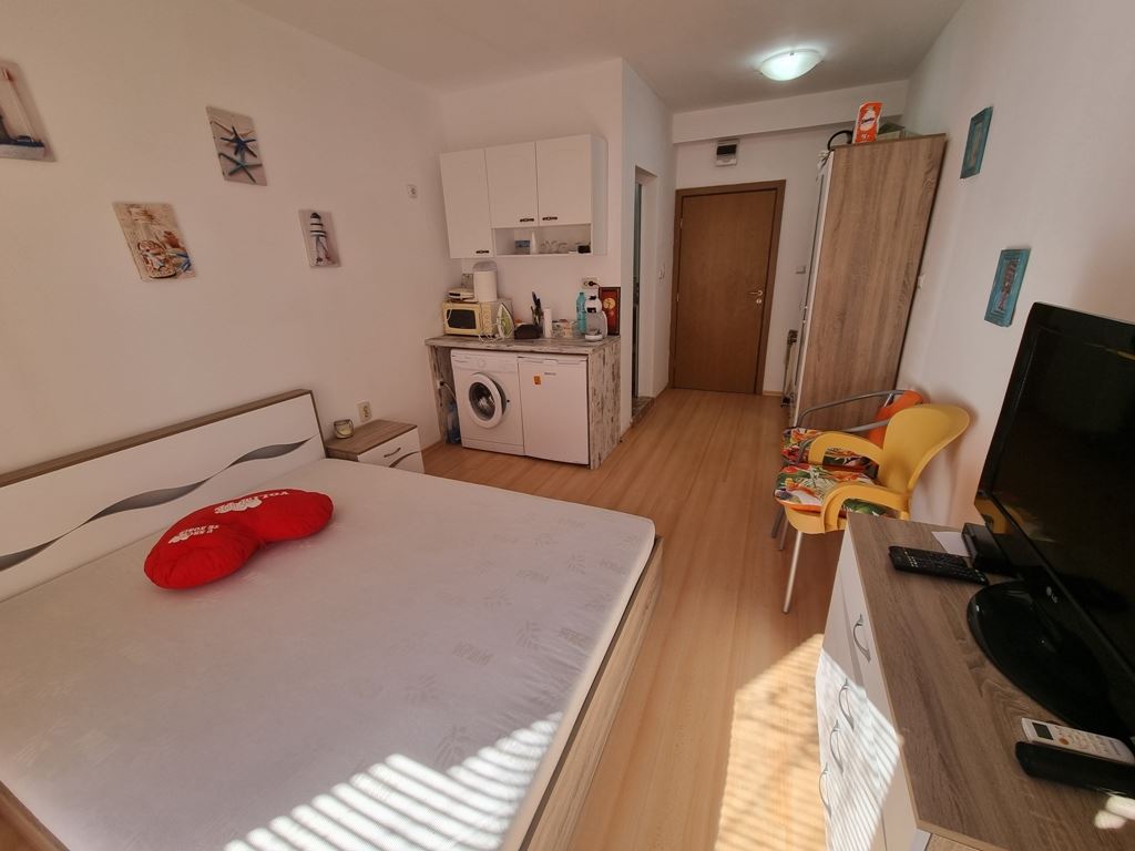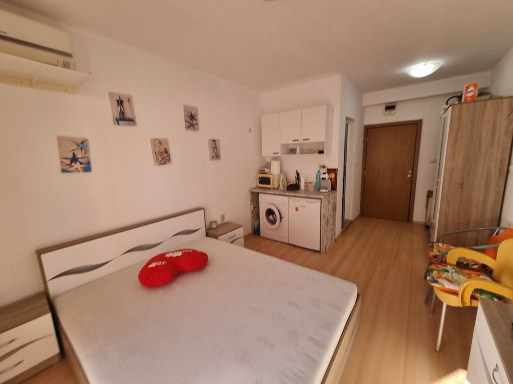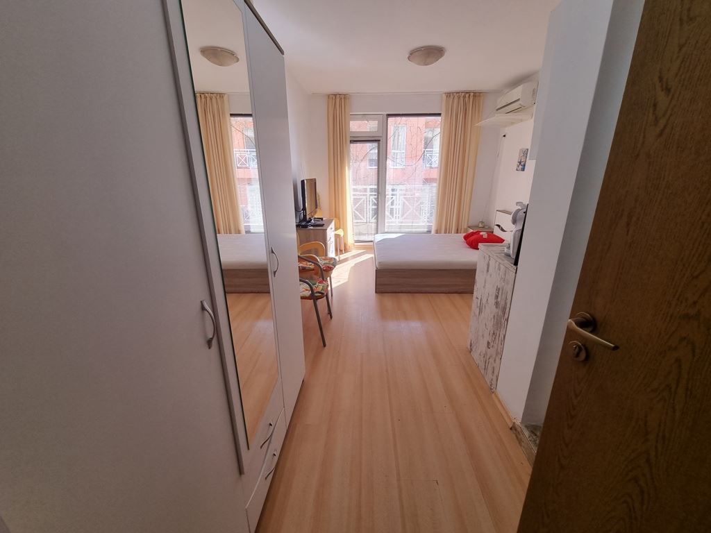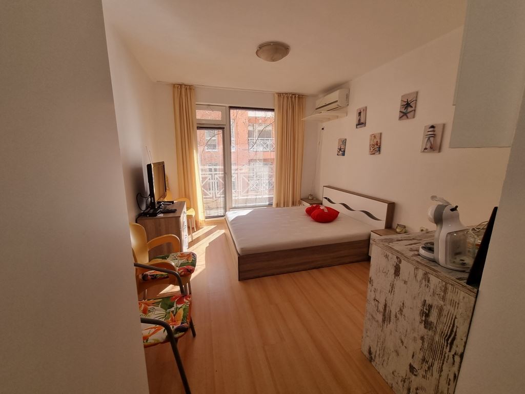 We offer for consideration a comfortable one-bedroom flat of 56 m2 with a good layout and quality renovation on the ground floor of a complex located in the suburbs of Sunny Beach. The flat is divided into two studios with a shared terrace. One flat has a spacious room with kitchen and sitting area, a combined bathroom and a terrace. The other studio has a bedroom, bathroom and access to the terrace. The property is sold with all available furniture and equipment. This large complex is a holiday village type base. The picturesque location near green hills and a river, as well as the amenities offered to the residents, a tennis court, sports and children's playgrounds, supermarket, restaurants and fitness facilities. During the summer season there is a bus service to the beach and resort centre.