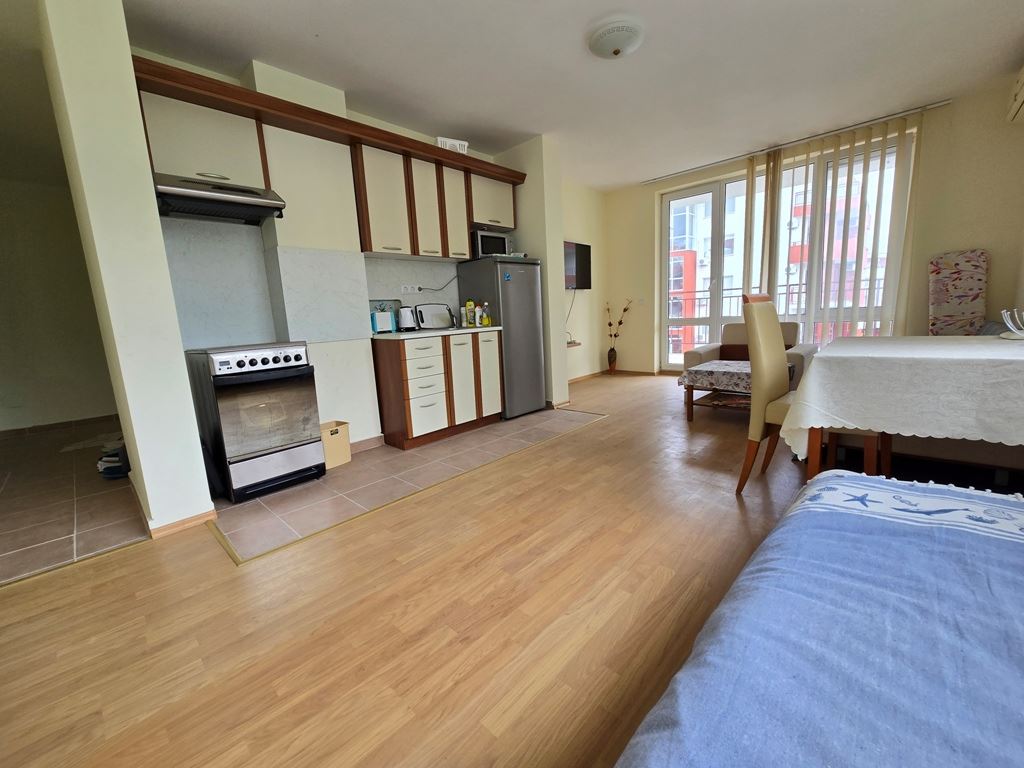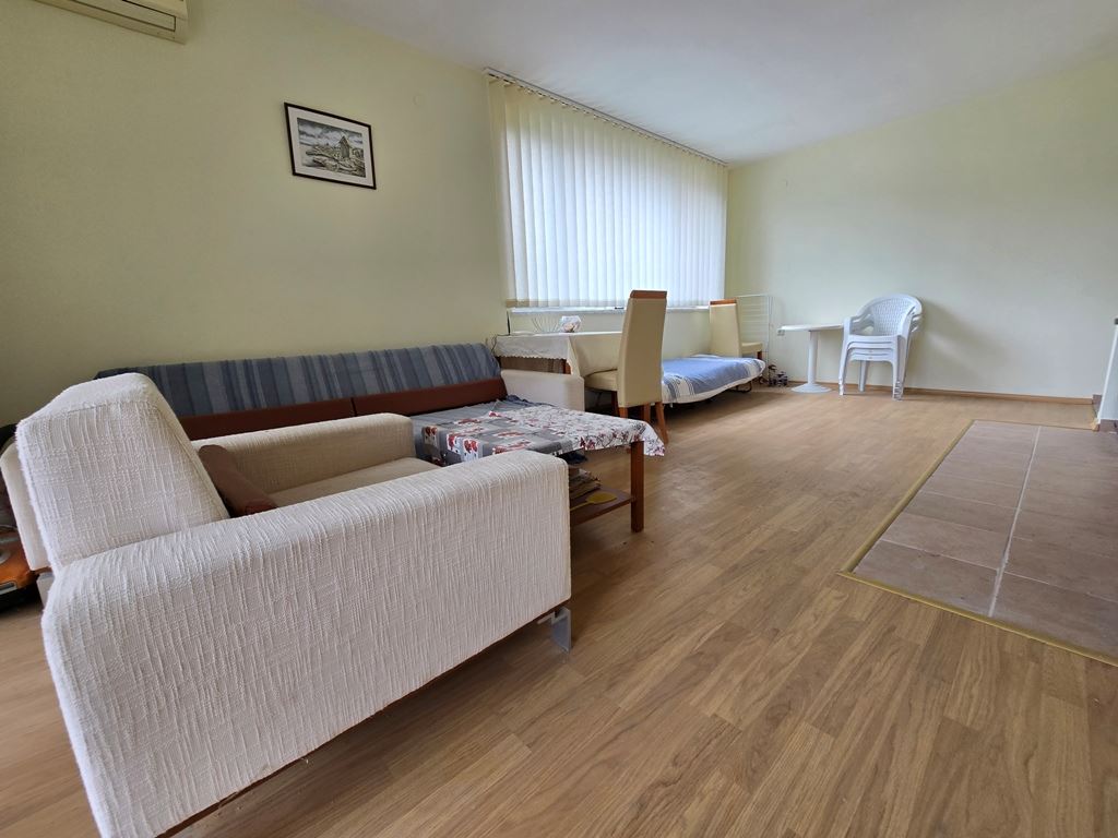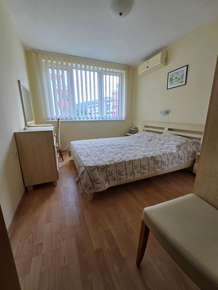 For sale one bedroom apartment in the prestigious resort of Sveti Vlas, which offers a combination of comfort, style and beautiful sea views. This spacious property of 67 m² is located on the fourth floor and is ideal for people looking for comfort and tranquility close to the sea coast. The apartment has a bright living room combined with a modern kitchen, one comfortable bedroom and a fully equipped bathroom with WC. A distinctive feature is the spacious terrace, which reveals spectacular views of the sea and the complex, which also includes a swimming pool.