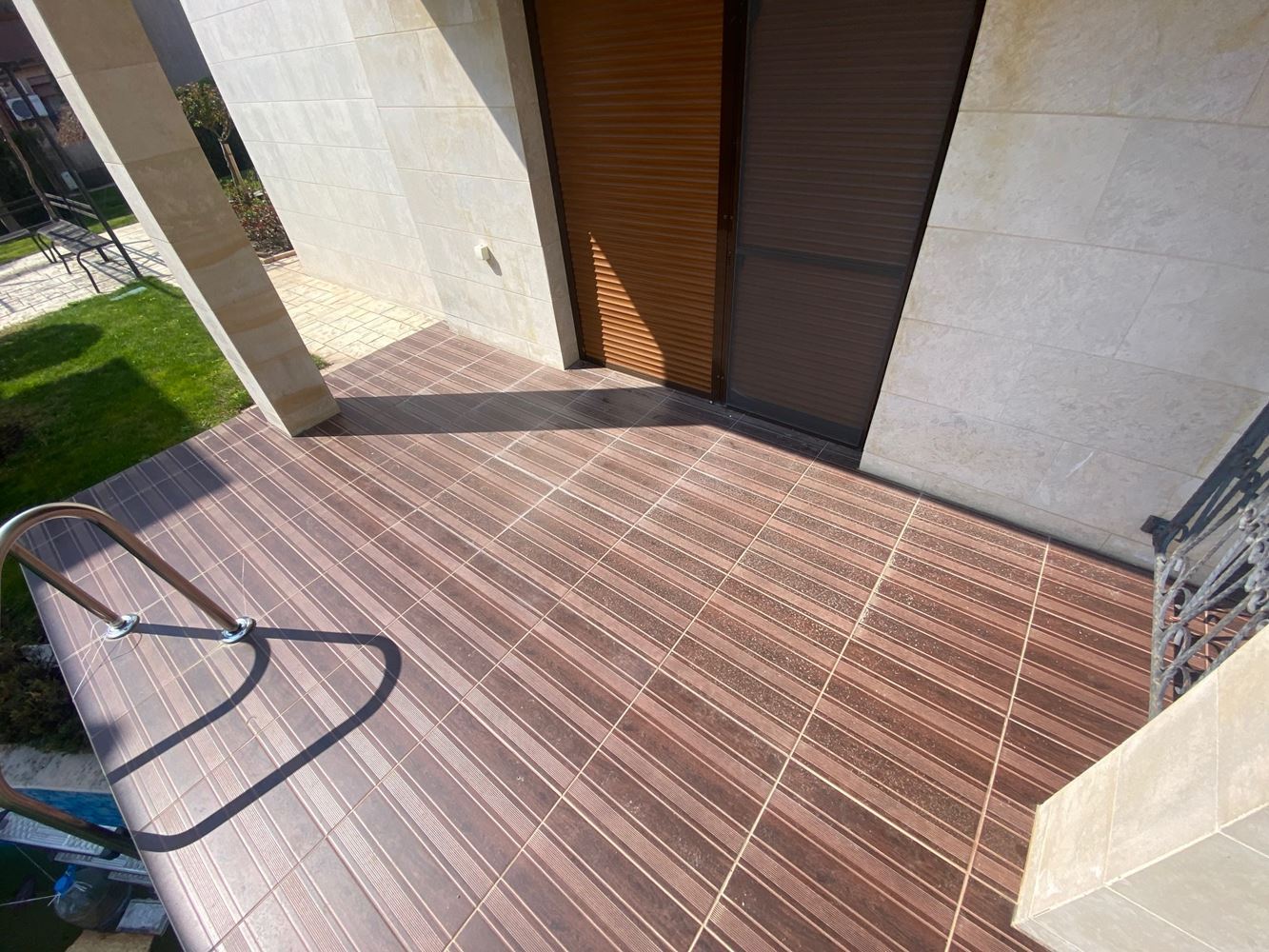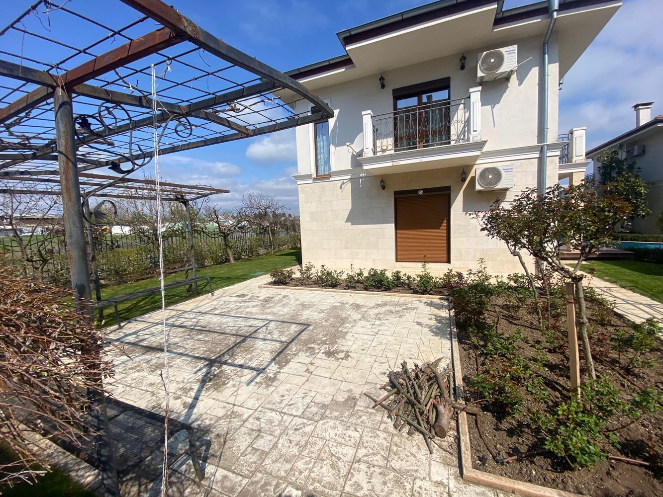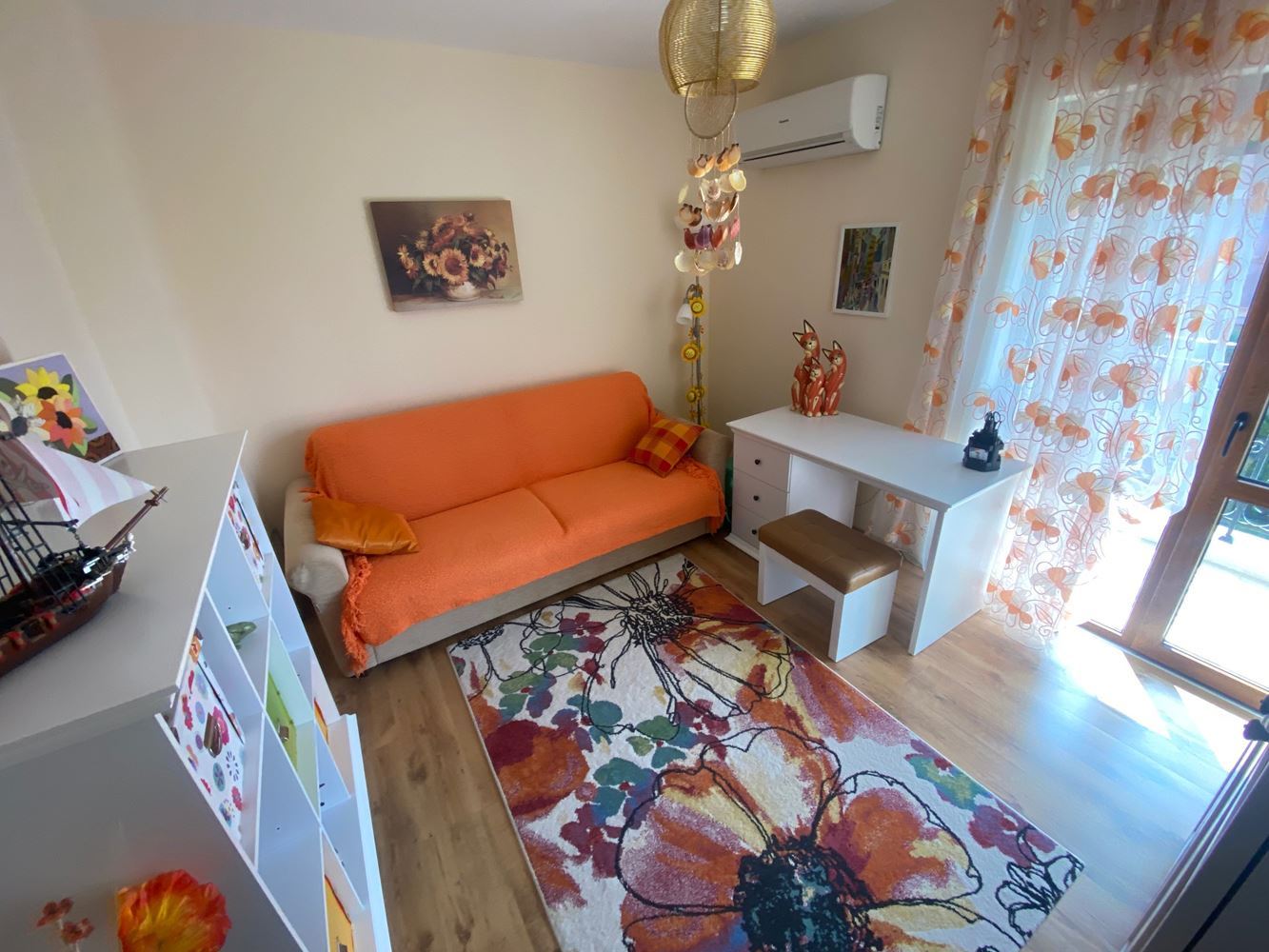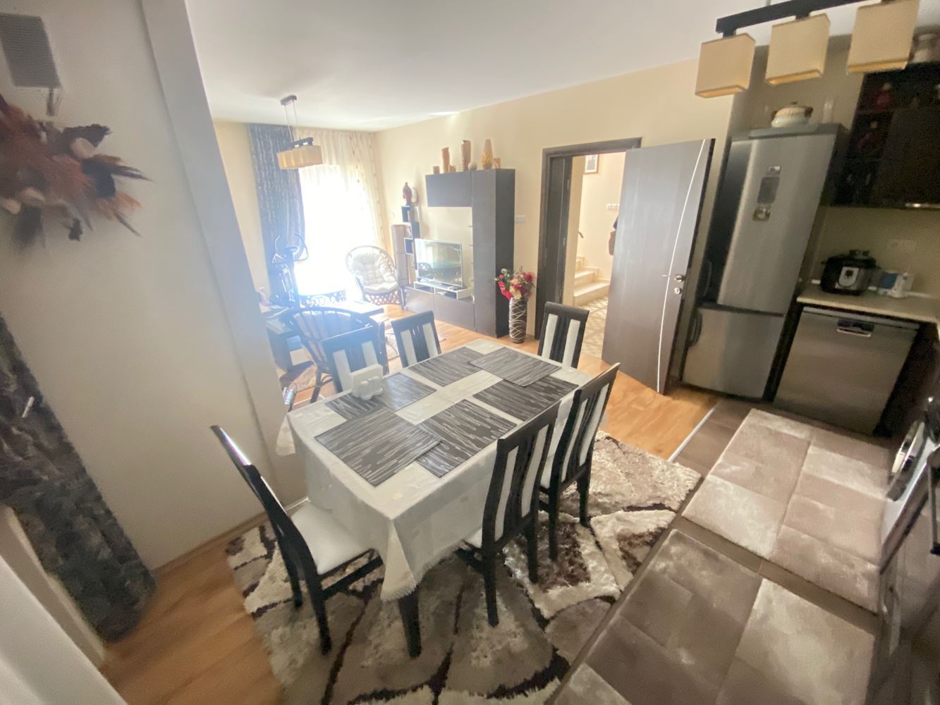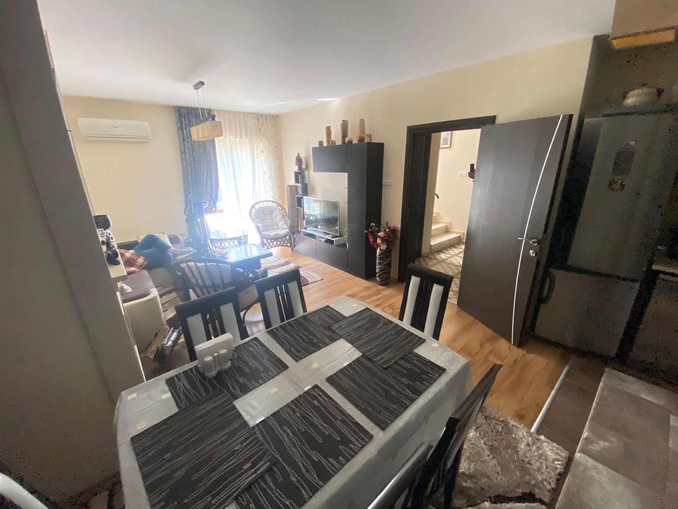 Fully furnished house with swimming pool in a small boutique complex in the seaside town of Ravda. The complex is located in the centre of the resort, 300 m away from the sea. The house area is 120 m2 and has two floors. On the ground floor there is a spacious living room with a fireplace, a kitchen converted to a dining room, where there are two exits - to the pool and the lawn, as well as a toilet and a warehouse On the first floor there are two large bedrooms with access to terraces, a bathroom, a large hallway. The complex has a playground, jacuzzi and barbecue and parking for cars. The house is for sale with furniture, equipment and an adjacent plot. A fireplace is installed in the house.