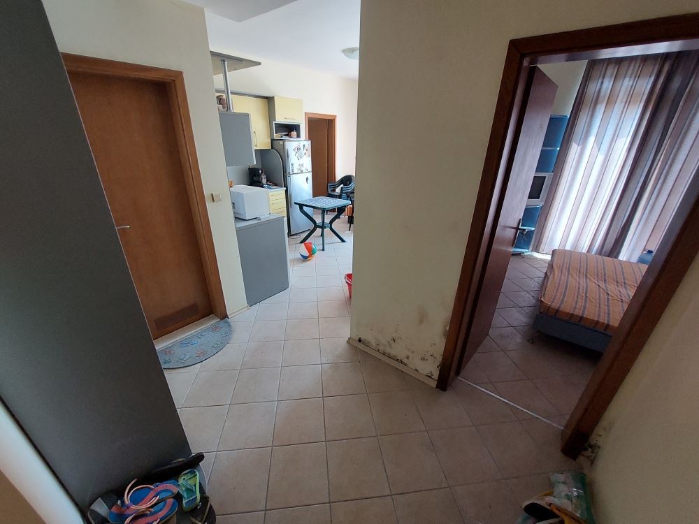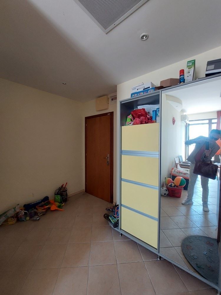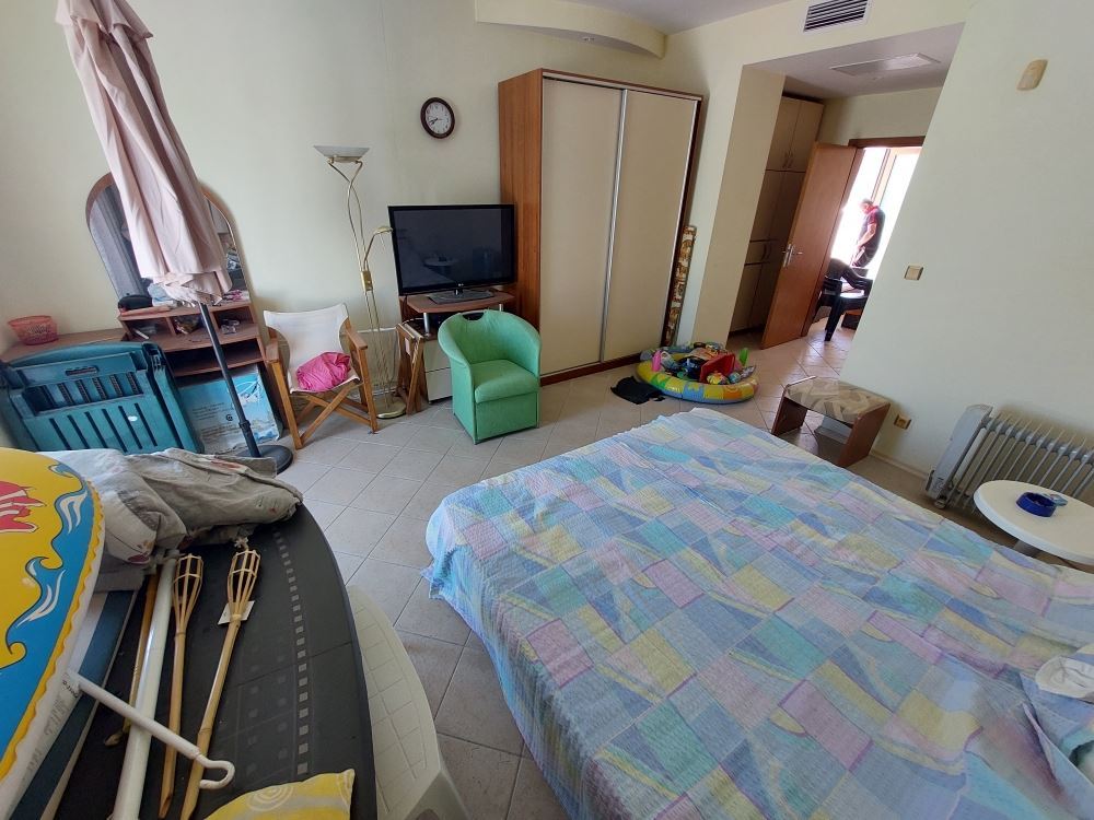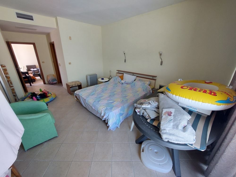 Fully furnished large two-bedroom flat with sea view in a maintenance free building in Sunny Beach resort. The flat is located on the fifth floor and has an area of 150 m2. It consists of living room with kitchen and dining area, two bedrooms, two bathrooms with WC and a balcony. A fully furnished and equipped flat awaits its new owners. It is quiet and calm, although located on the second line to the sea. No maintenance fees. All infrastructure, the sea, the beach and the lively promenade are within walking distance. Convenient transportation to all nearby resorts is available.