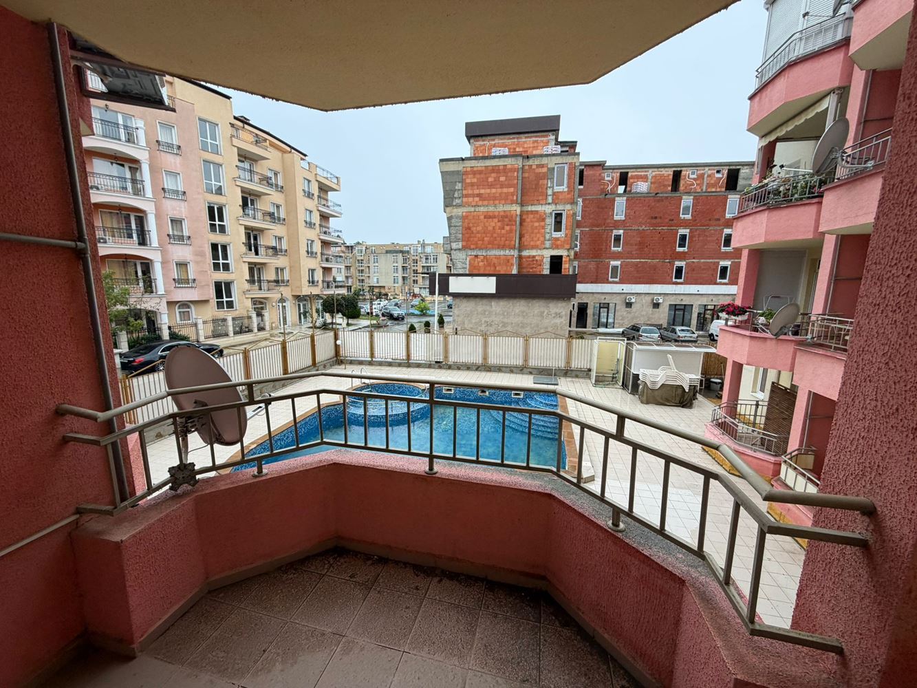 Property highlights: 69 m², second floor, 2 rooms, 1 bedroom, 1 bathroom, 2 balconies, pool view, and low maintenance fee. A great choice for a family holiday, year-round residence, or a profitable investment in one of Bulgaria’s most popular seaside resorts.