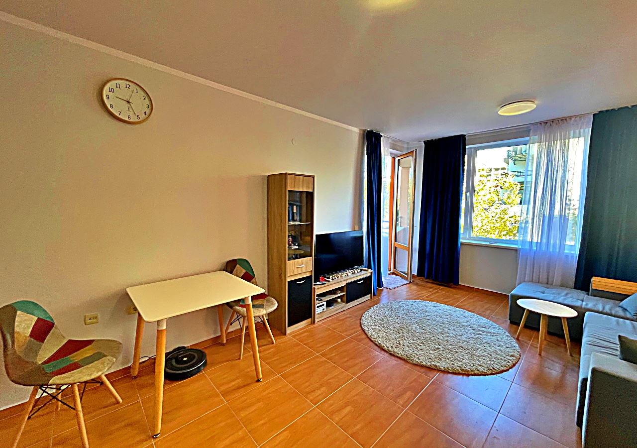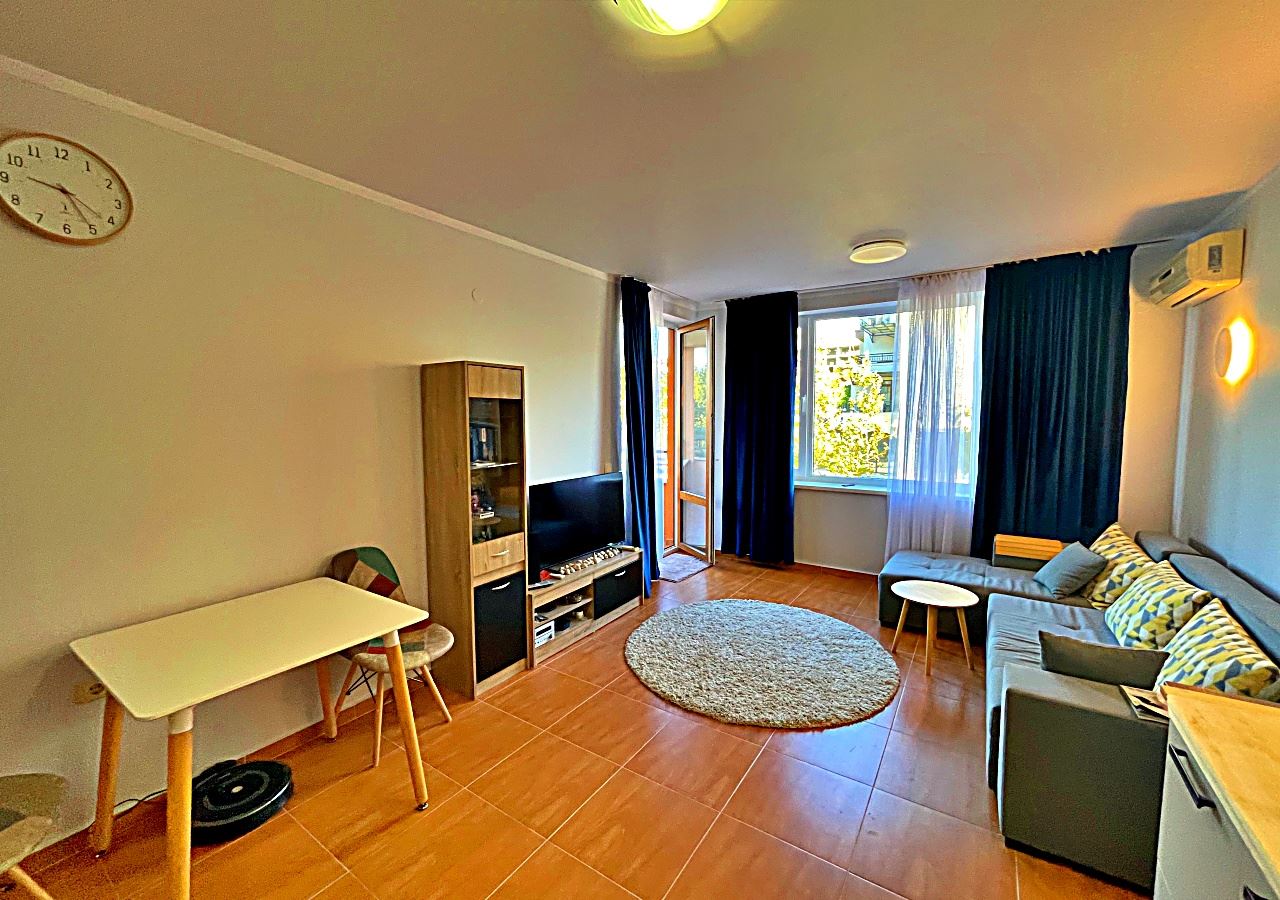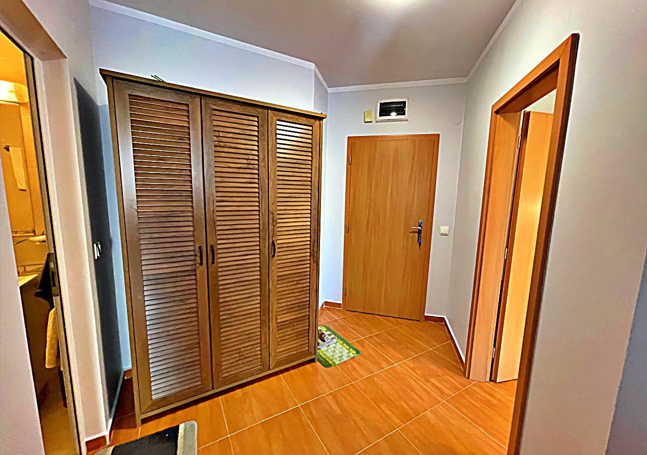 We present a cozy and functional one-bedroom apartment in a pleasant area of Sveti Vlas, located on the second residential floor in a building with an elevator. The property impresses with a comfortable atmosphere, move-in readiness, and beautiful views of the town and the mountains. The apartment has a total area of 61 m² and offers a well-thought-out layout: spacious entrance hall, bright living room with kitchenette, separate bedroom, bathroom with toilet, and a terrace – the perfect place for morning coffee and fresh-air relaxation with panoramic views of the surroundings. The apartment is sold fully furnished and equipped with appliances and household equipment, making it ready for immediate use – an ideal choice for a new home without additional investments or as a property with excellent rental potential.