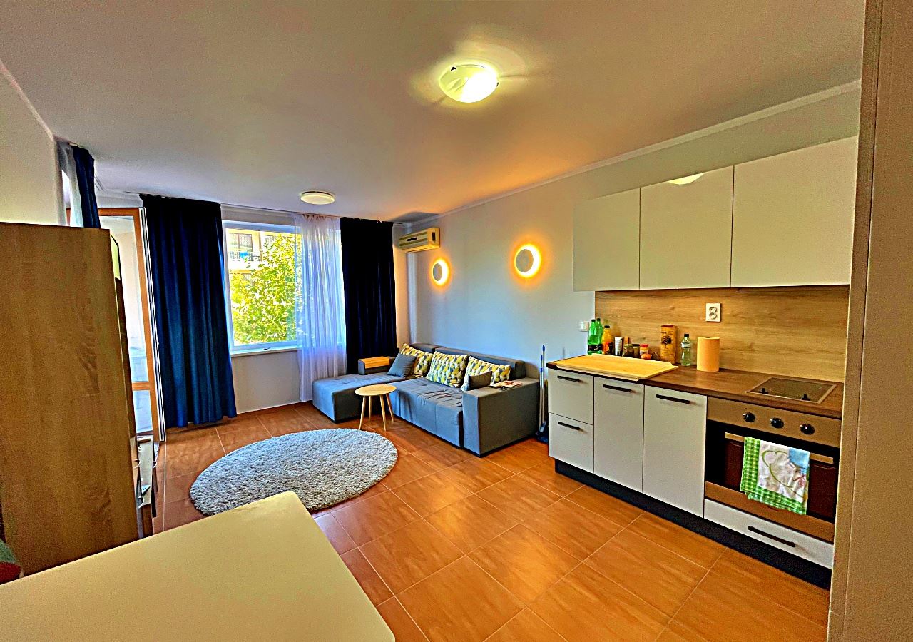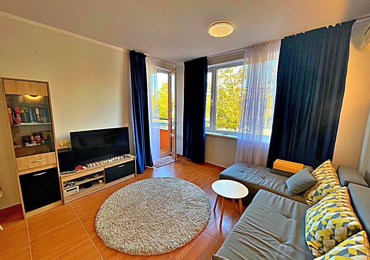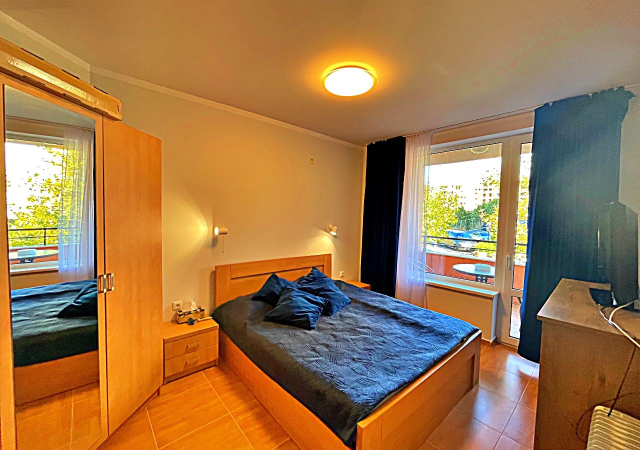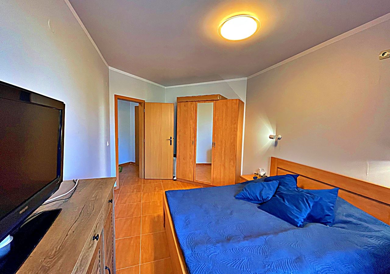 We present a cozy and functional one-bedroom apartment in a pleasant area of Sveti Vlas, located on the second residential floor in a building with an elevator. The property impresses with a comfortable atmosphere, move-in readiness, and beautiful views of the town and the mountains. The apartment has a total area of 61 m² and offers a well-thought-out layout: spacious entrance hall, bright living room with kitchenette, separate bedroom, bathroom with toilet, and a terrace – the perfect place for morning coffee and fresh-air relaxation with panoramic views of the surroundings. The apartment is sold fully furnished and equipped with appliances and household equipment, making it ready for immediate use – an ideal choice for a new home without additional investments or as a property with excellent rental potential.