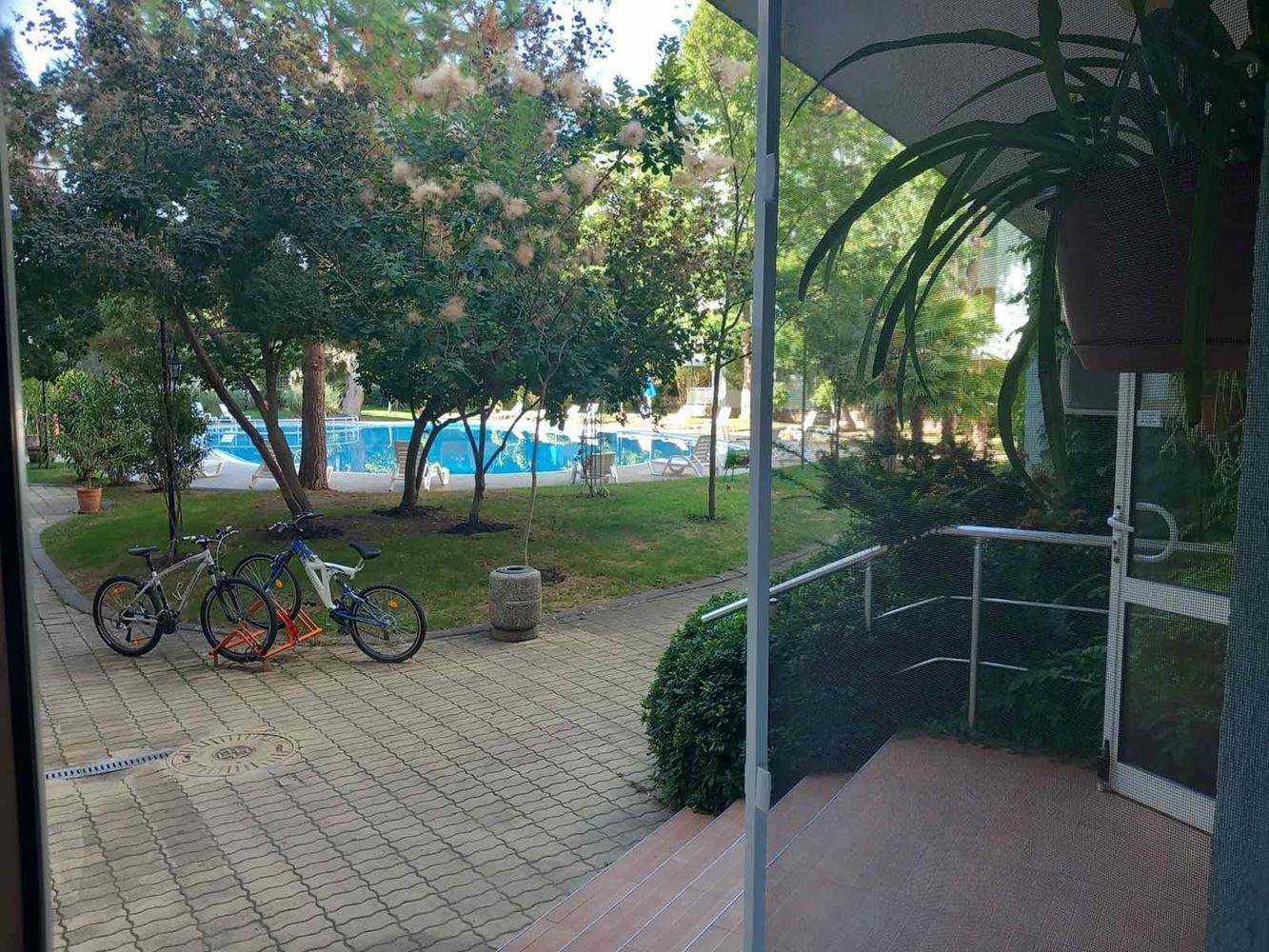 The complex impresses with its beautiful inner courtyard with lush landscaping, creating an atmosphere of peace and coziness. Within the complex, residents and guests can enjoy an adult pool and a children’s pool with water slides, offering entertainment for all ages and ensuring carefree moments throughout the day.