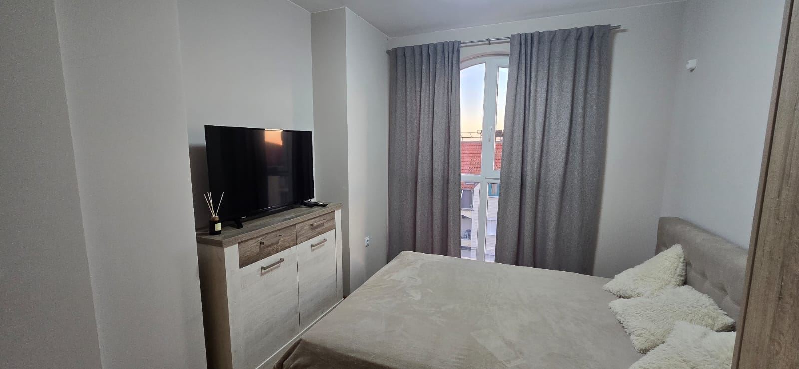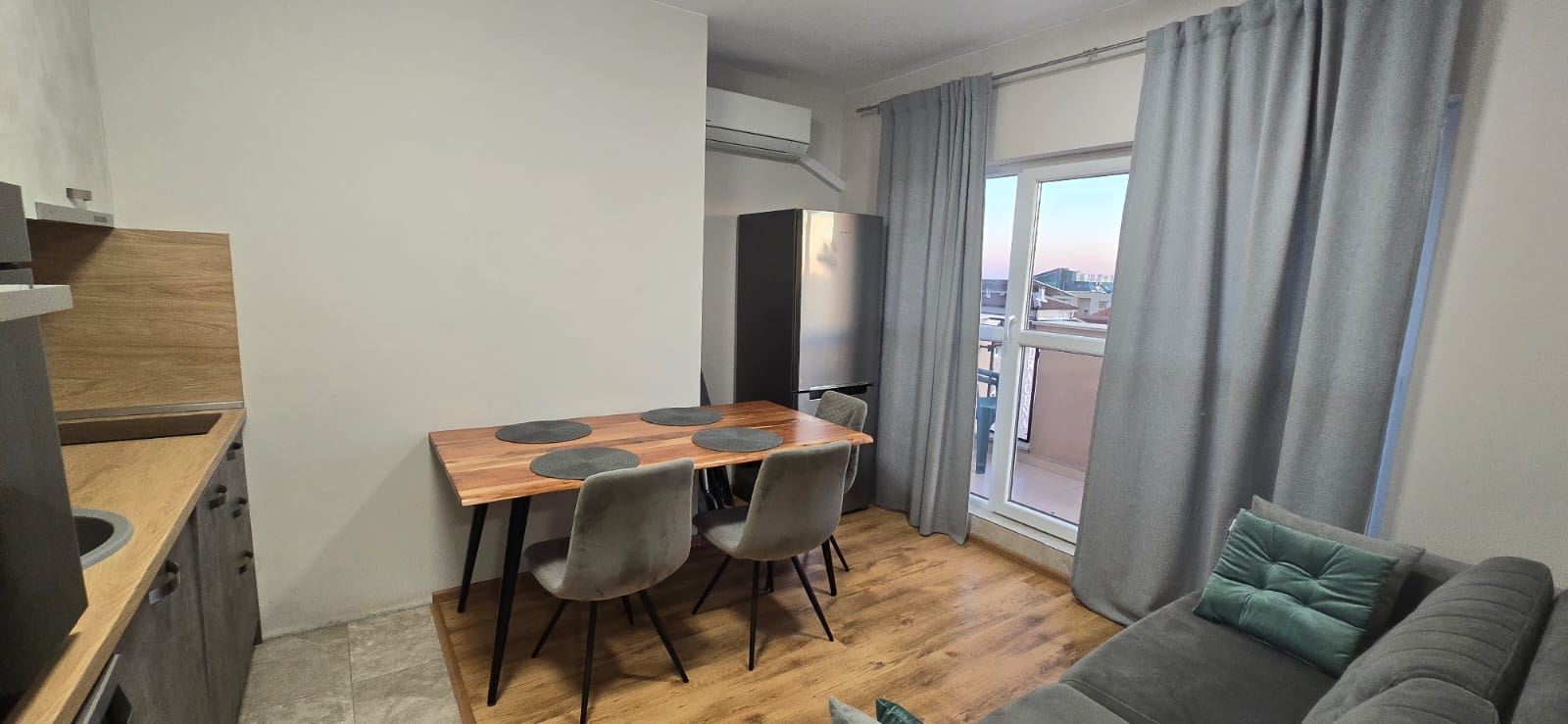 We present you an excellent opportunity to acquire a furnished two bedroom apartment, located in one of the popular complexes in Ravda. This elegant property is located on the top, fifth floor and offers stunning sea views that you can enjoy from the spacious terrace. With a total area of 60,93 sqm, the apartment is functionally distributed for maximum comfort. It has two cosy bedrooms, a stylish living room with an integrated kitchen area equipped with all the necessary high-end appliances, a bathroom and an entrance hall. Exquisitely furnished, this home is ready to receive you immediately.