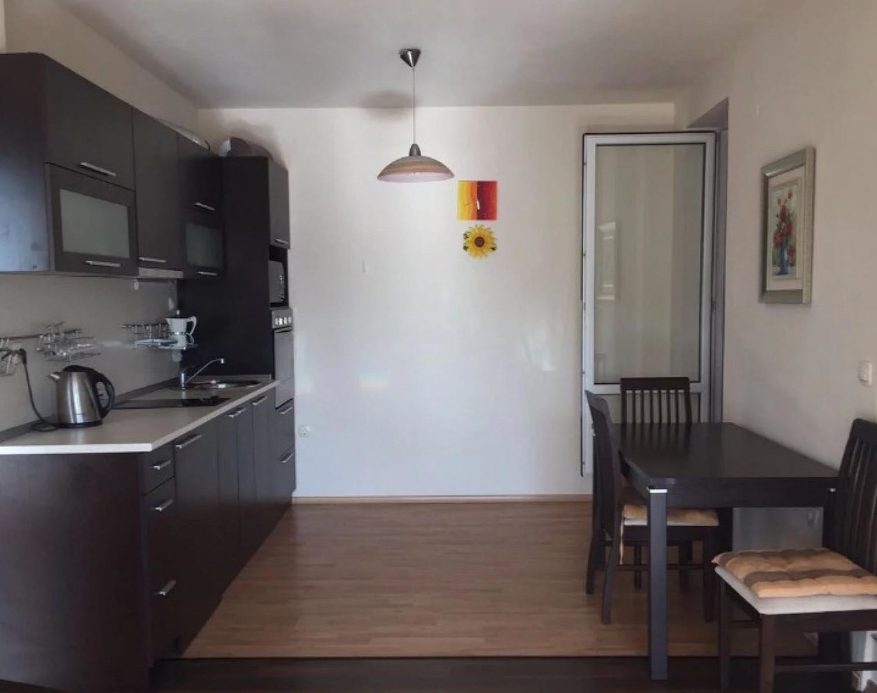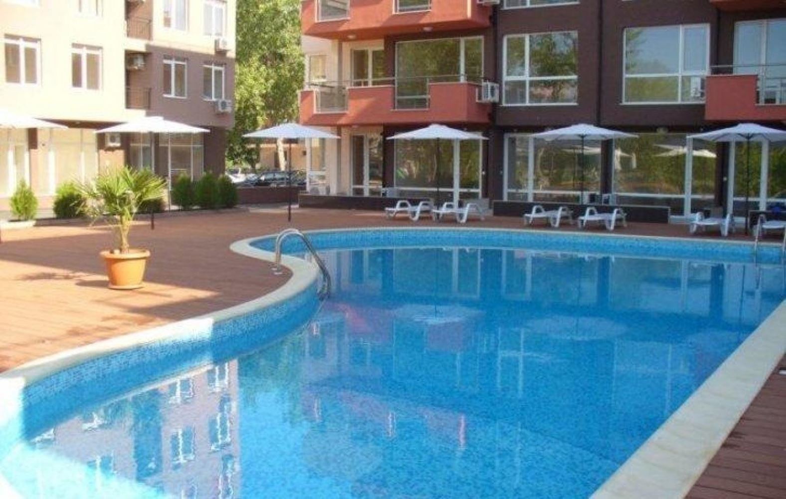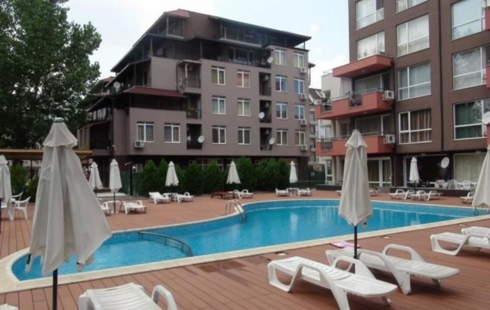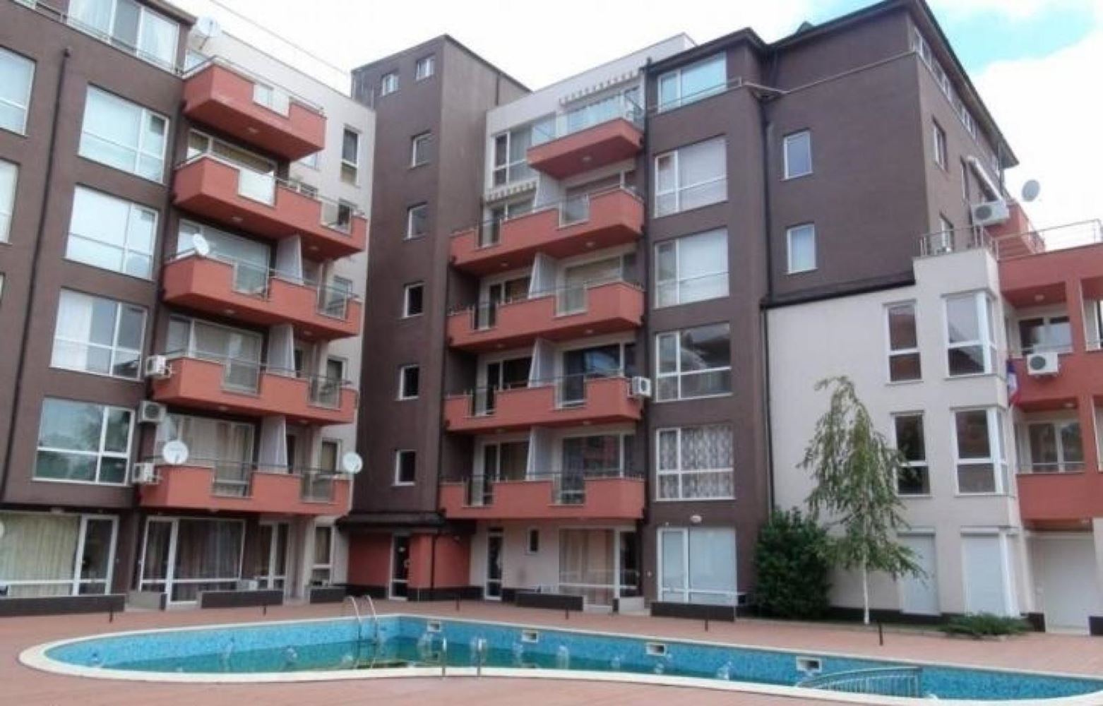 This two bedroom apartment in Sunny Beach is an ideal accommodation for those who dream of a comfortable life in a picturesque area near the river and the sea beach. The apartment is located in a residential complex that provides a variety of amenities and pleasant views. This apartment has spacious and bright rooms that allow you to create cozy and functional interiors. The modern layout ensures optimal utilization of space. The apartment offers a magnificent view of the swimming pool and the park. You can at any time enjoy the beauty of nature and relax looking at the picturesque scenery. The residential complex provides access to the swimming pool, which is ideal for relaxation and recreation on hot days. For families with children, there is a playground where the little ones can play and socialize. The security of the complex provides security and peace of mind for the residents, and the parking lot solves parking problems. The complex is in convenient proximity to the river and only 400 meters from the beach of Sunny Beach. This means that you can enjoy walks along the river or swim in the sea just a short walk away. In addition, all the necessary infrastructure such as stores, restaurants and cafes are in close proximity.