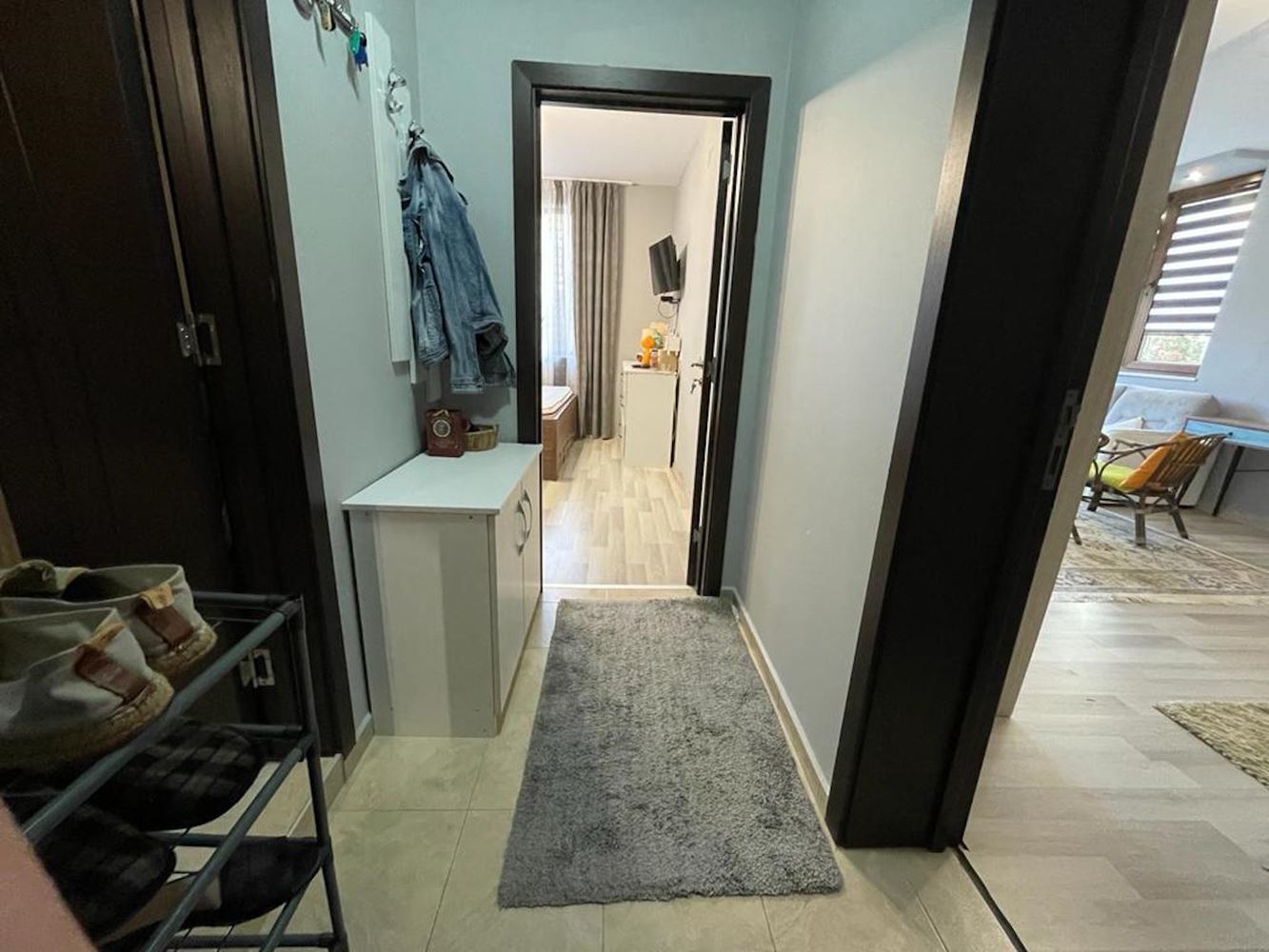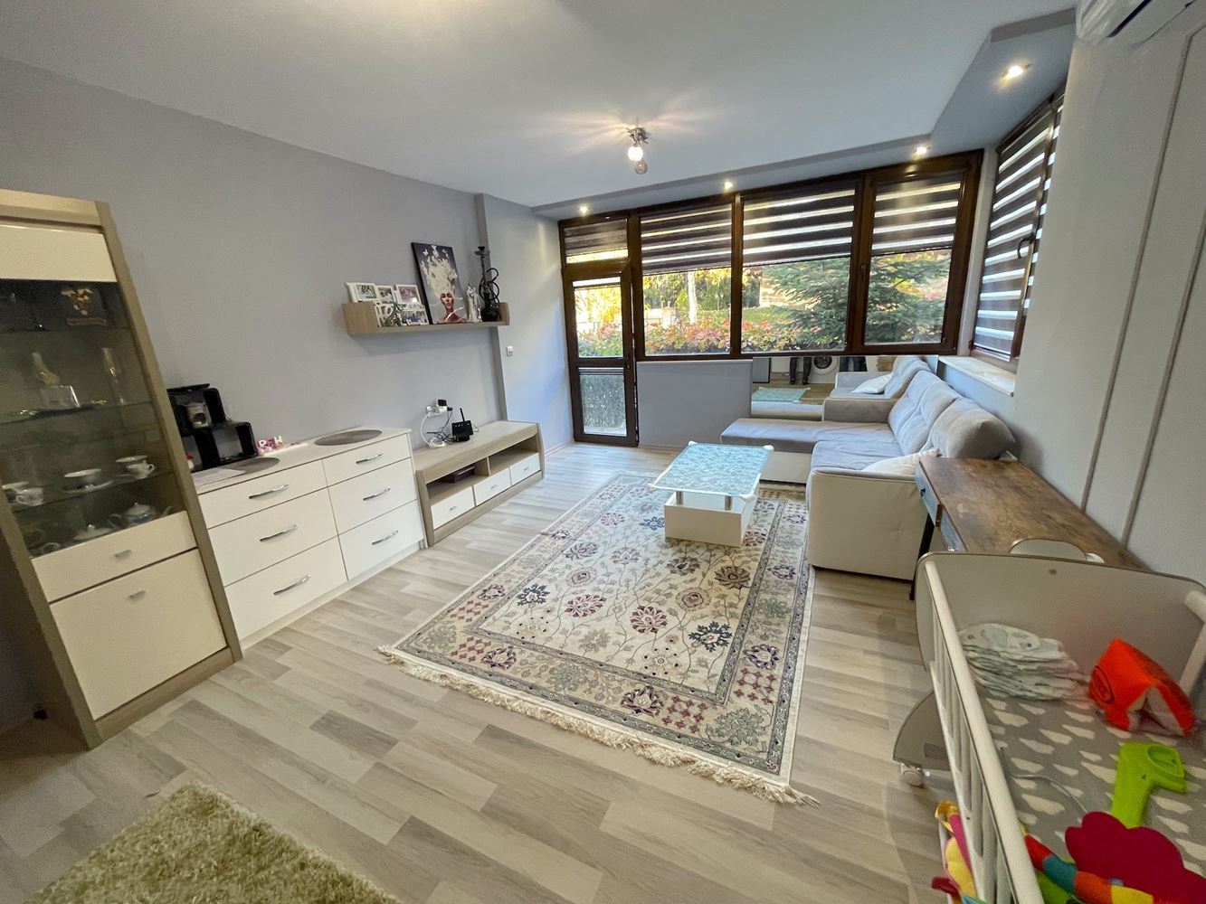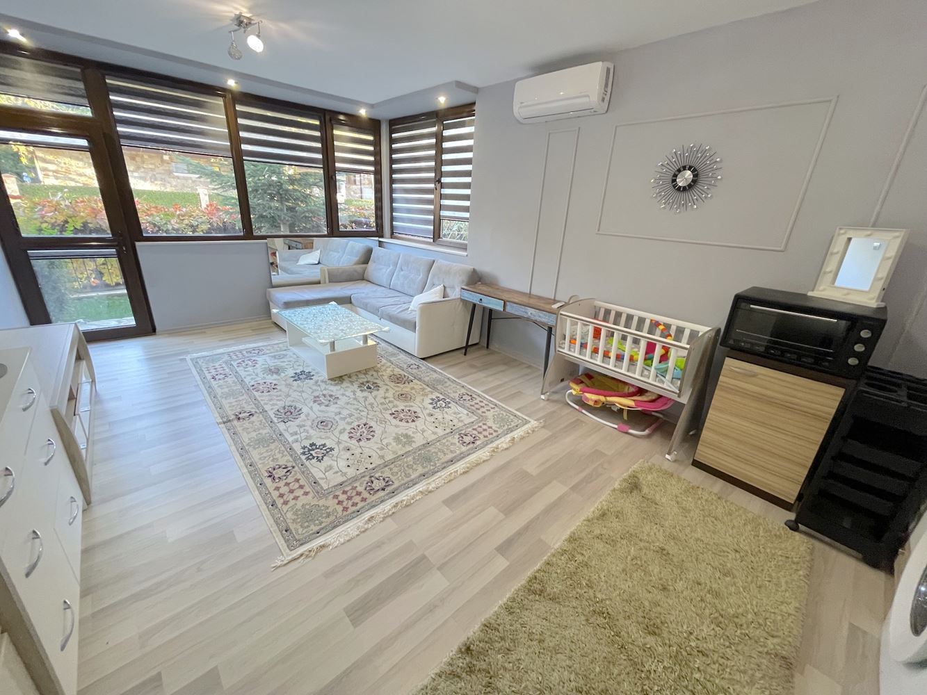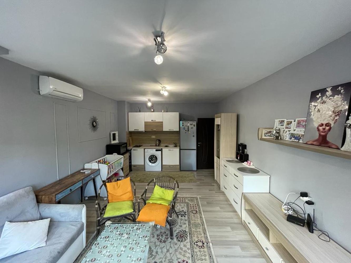 Incredible one bedroom apartment on the low first floor offers a comfortable living space. The apartment is located in a large gated complex, which is located at the junction of two settlements - Nessebar and Ravda, in one of the most beautiful places on the Black Sea coast. The complex consists of 9 buildings with separate areas, and offers its residents a restaurant, cafe, SPA center, fitness center, stores, 7 swimming pools, lots of playgrounds and sports areas, well maintained area. Special attention should be paid to the large free parking area, which is a rarity, especially in the summer season. The apartment of 55 m2 is located on the low first floor, with private garden and private entrance. It consists of an entrance hall, living room with kitchen and dining area, bedroom, bathroom and terrace. In perfect condition. Complete with quality furniture and appliances.