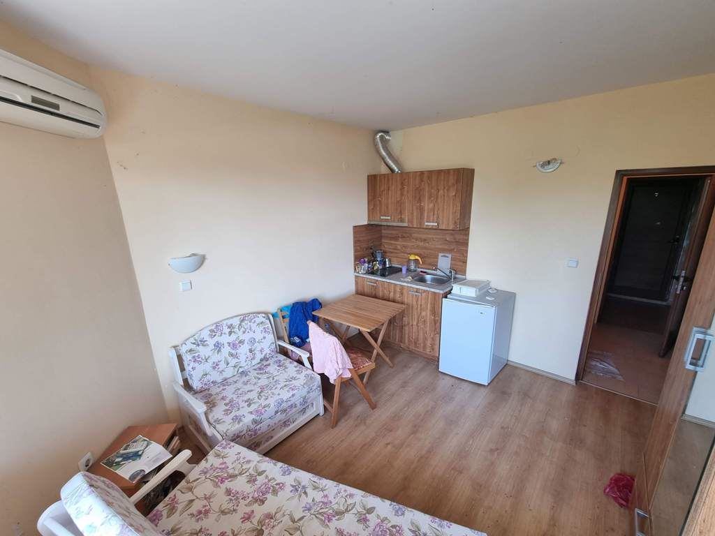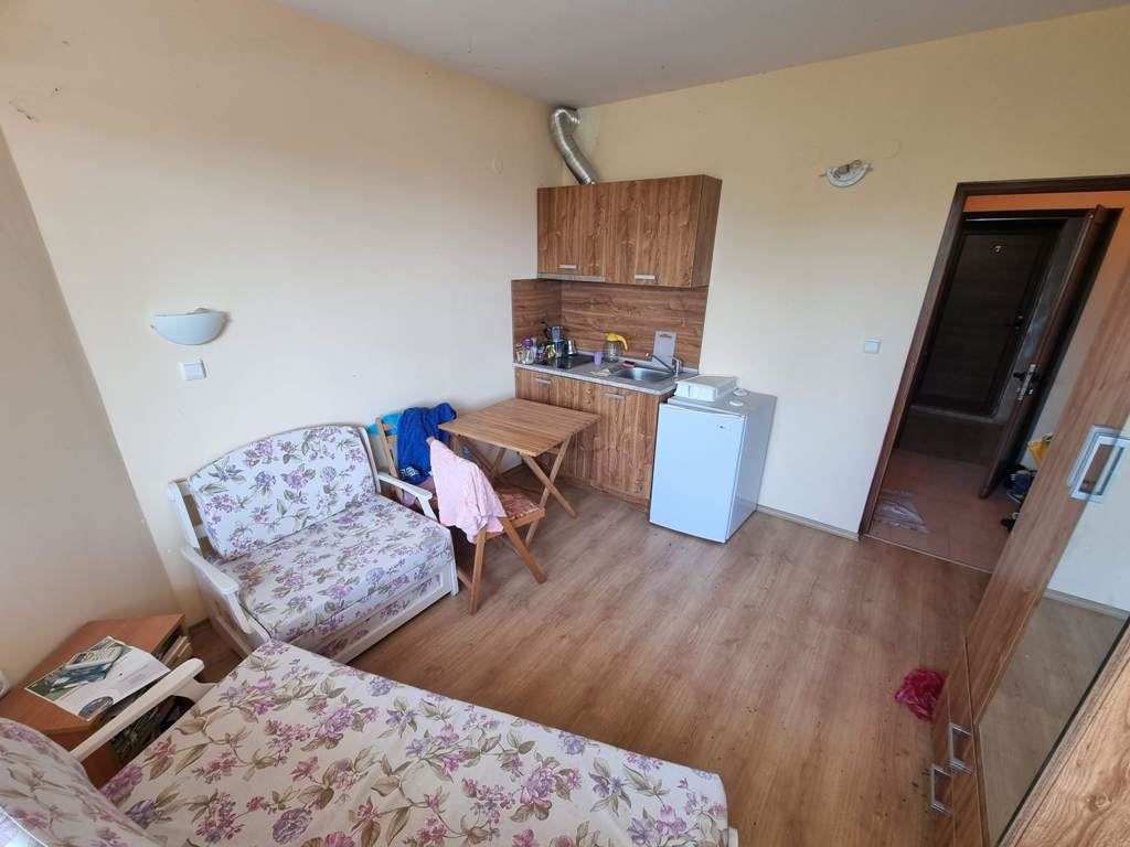 Inexpensive furnished studio flat offers excellent conditions for living or holidaying in the northern part of Sunny Beach resort. The flat has a total area of 30 square metres and is offered with cash furniture, making it ready to live in. The location five minutes walk from the sea and the wide sandy beach makes this flat an ideal place for those who want to enjoy a seaside holiday. In the immediate vicinity of the complex there are shops, supermarkets, restaurants, cafes, bars, pharmacies and other amenities, which provides convenience and comfortable living. The complex is suitable for year-round living, i.e. it is an excellent option for both summer holidays and permanent residence.