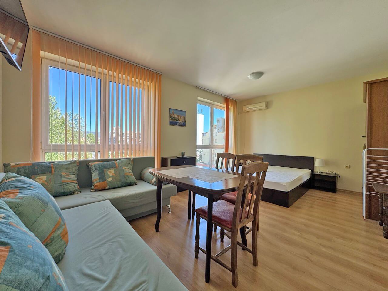 Discover your perfect seaside retreat in the heart of Sunny Beach – a bright and spacious studio in a modern complex that combines comfort, amenities, and tranquility. The property is an ideal choice both for personal holidays and as an investment for seasonal rental. The studio has a total area of 42 m² (excluding the balcony), providing maximum usable interior space. The layout allows for convenient separation of sleeping, relaxation, and dining/work zones, while the practical bathroom ensures everyday comfort. The property features one main room plus bathroom, located in a building with an elevator, ensuring easy access for everyone.