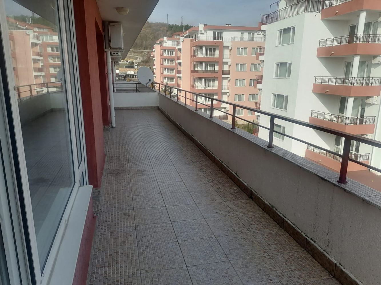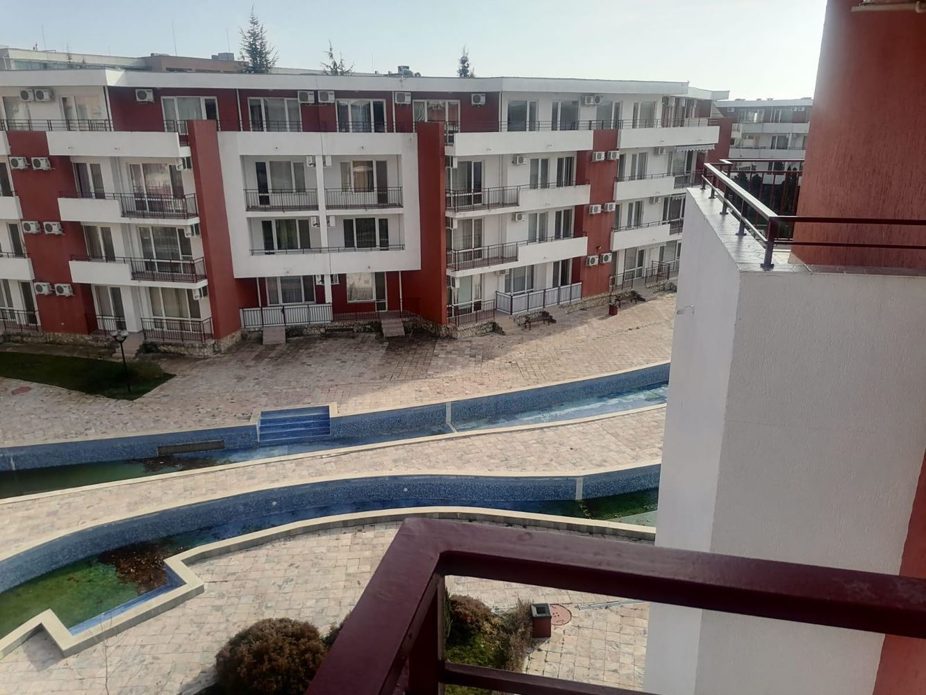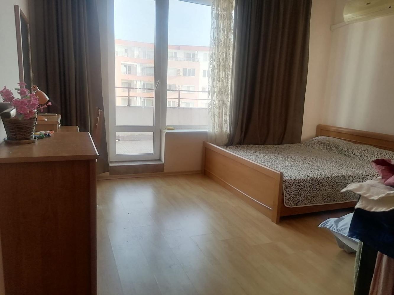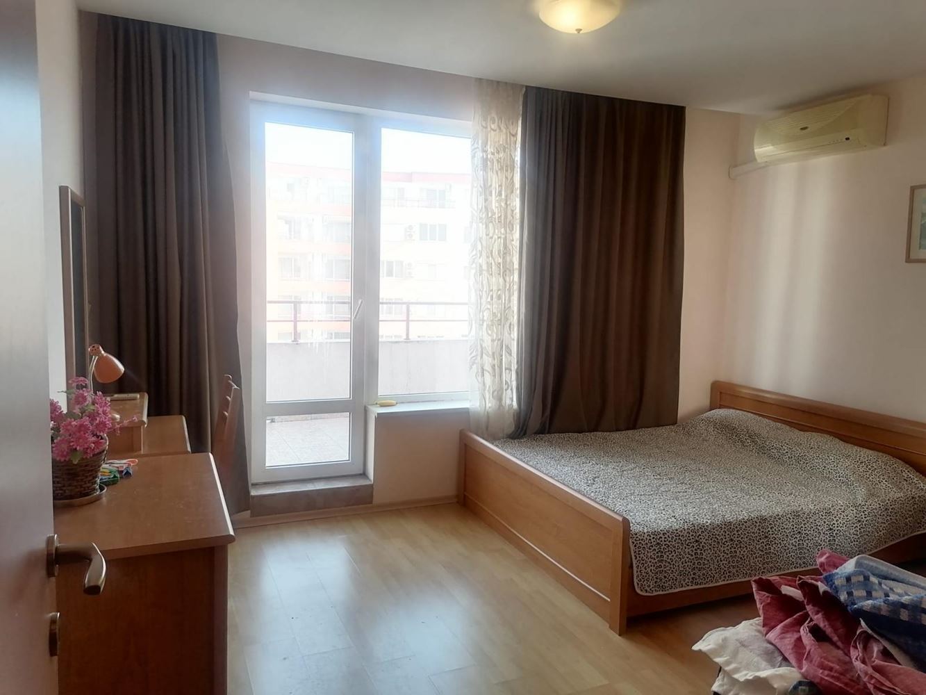 Two-bedroom large flat on the beachfront. The flat of 100 m2 is located on the fourth floor. It consists of an entrance hall, living room with kitchen area, two bedrooms, bathroom with WC and a balcony. The balcony is perfect for morning coffee or breakfast and has a splendid view to the mountains and the residential area. Furniture, appliances, interior decorations and all equipment will be kept by the new owners. The complex is built just a minute away from the coast and is recognized as the best place for family holidays. The beautifully landscaped grounds include a swimming pool, children's play area, gym, sauna, beauty salon, massage, shop and much more. A bus stop and water park are close by, as well as a large supermarket and taxi rank.