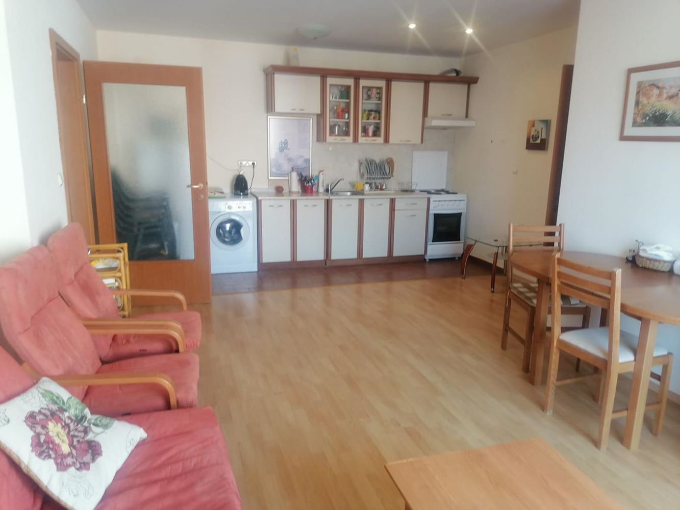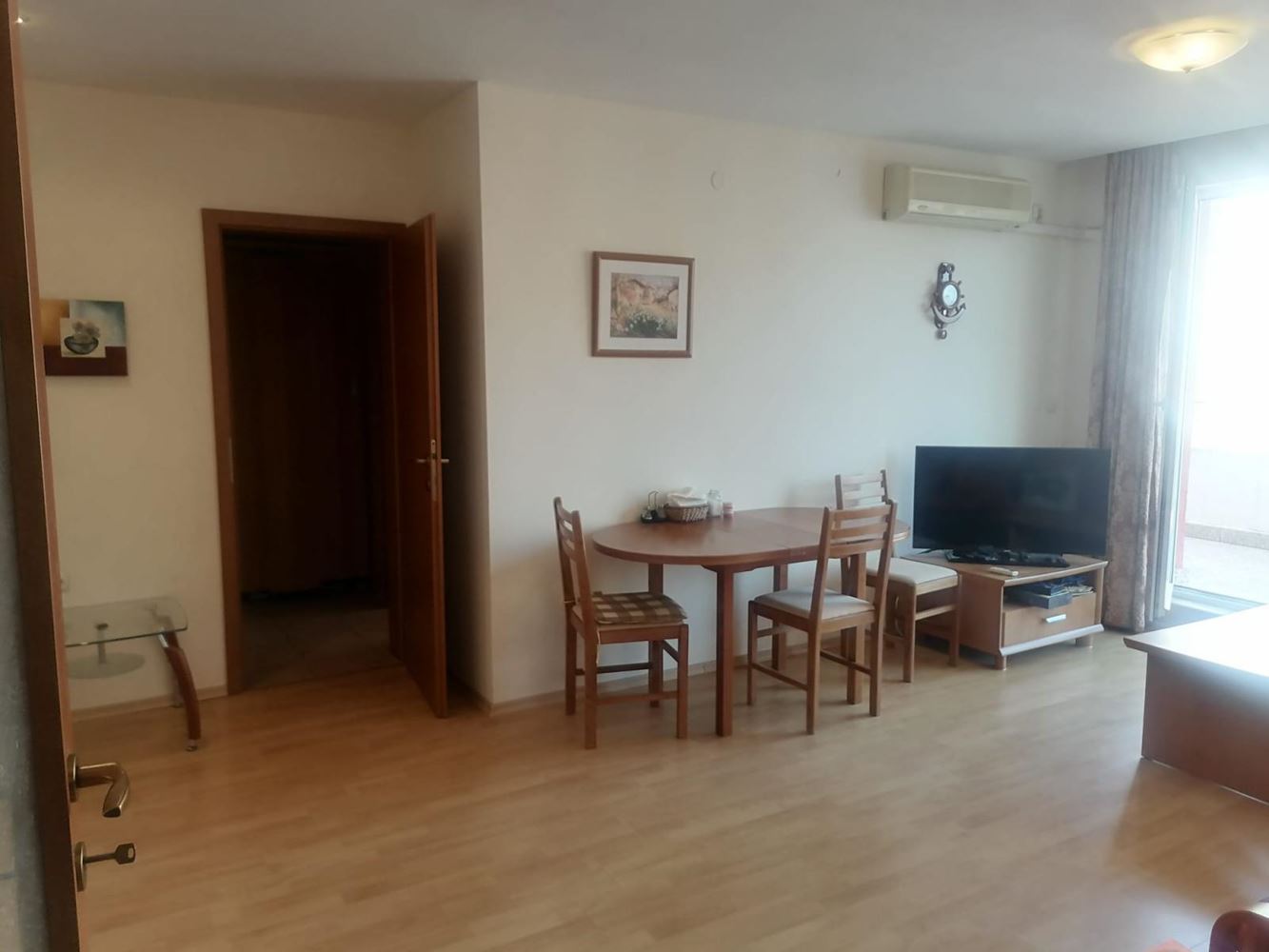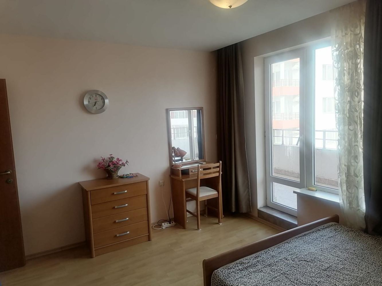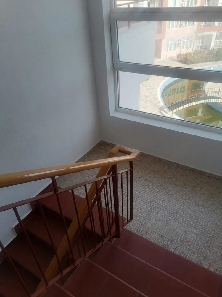 Two-bedroom large flat on the beachfront. The flat of 100 m2 is located on the fourth floor. It consists of an entrance hall, living room with kitchen area, two bedrooms, bathroom with WC and a balcony. The balcony is perfect for morning coffee or breakfast and has a splendid view to the mountains and the residential area. Furniture, appliances, interior decorations and all equipment will be kept by the new owners. The complex is built just a minute away from the coast and is recognized as the best place for family holidays. The beautifully landscaped grounds include a swimming pool, children's play area, gym, sauna, beauty salon, massage, shop and much more. A bus stop and water park are close by, as well as a large supermarket and taxi rank.