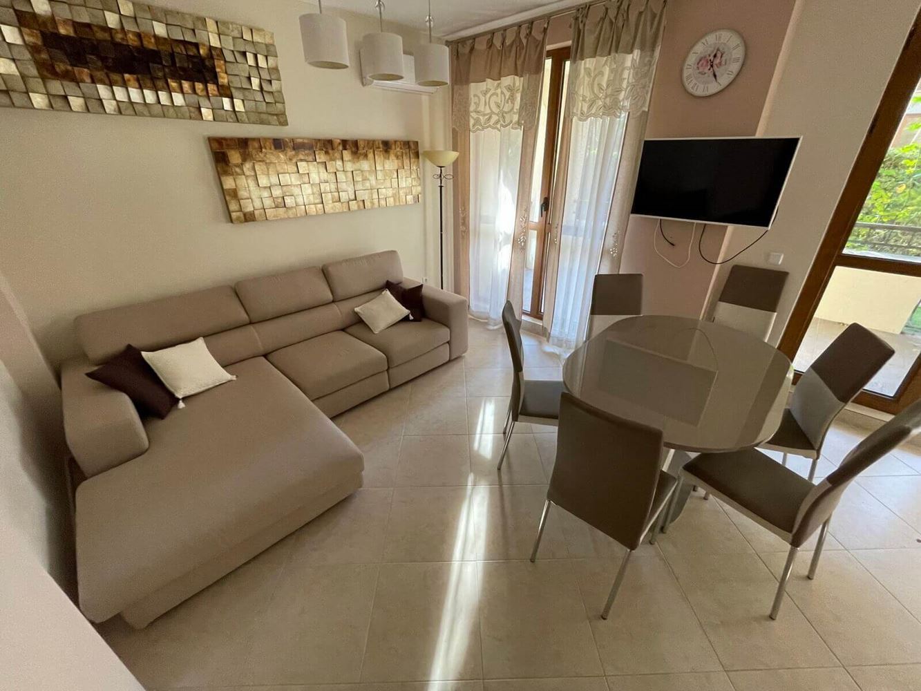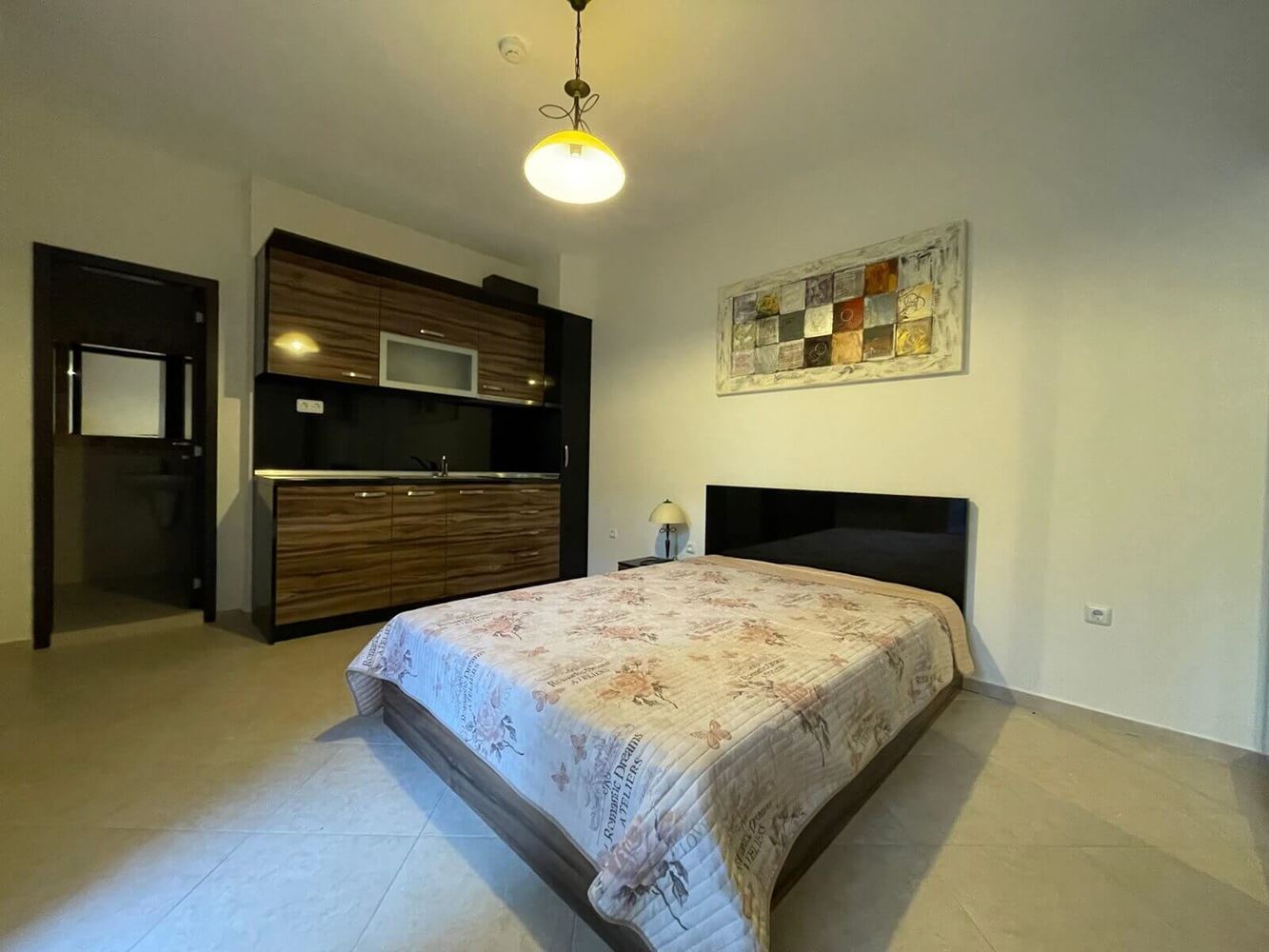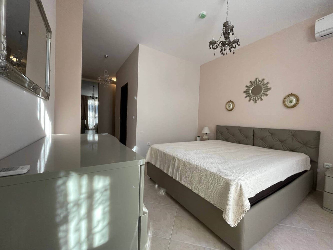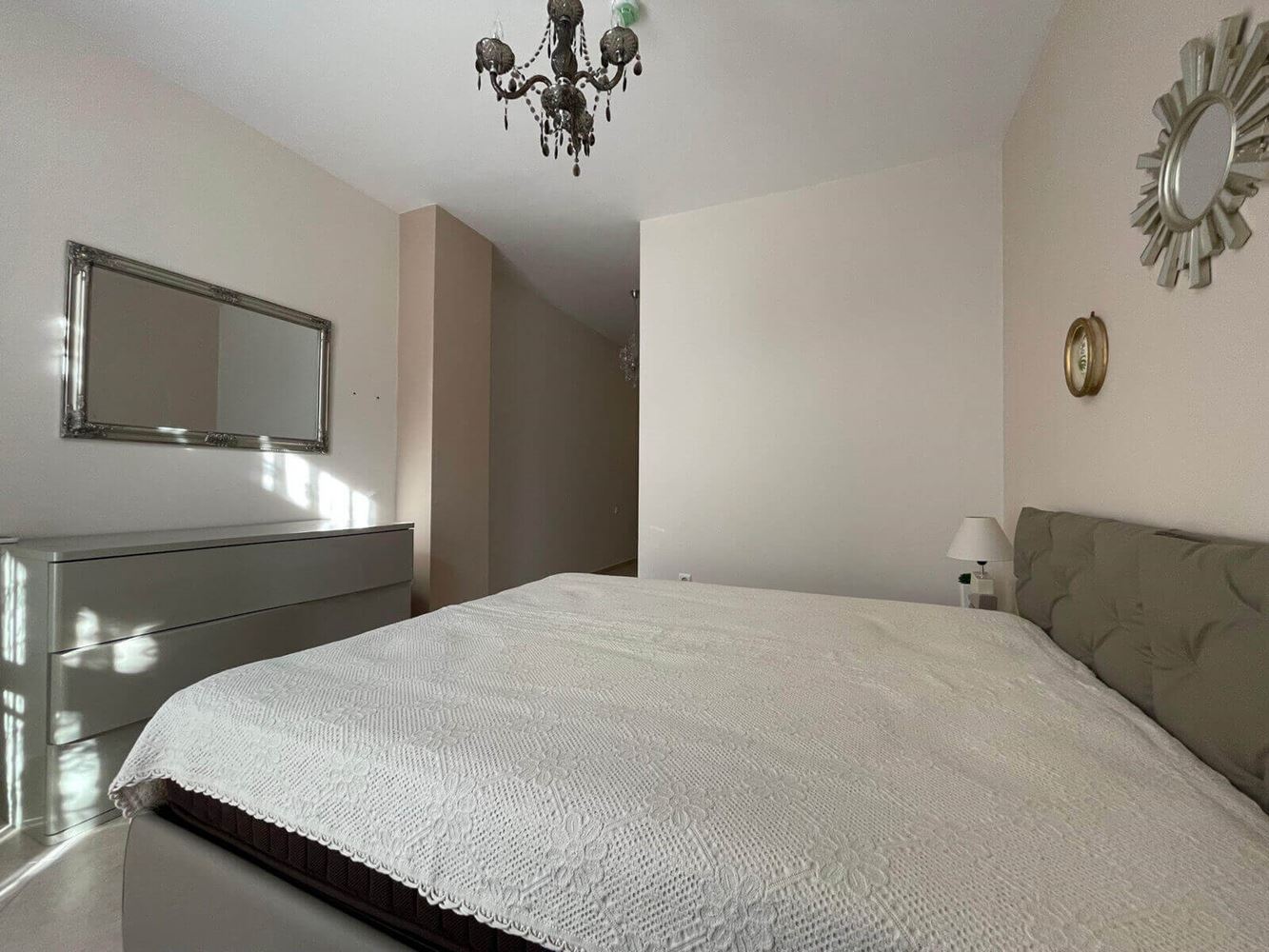 Four-bedroom flat in a luxury development in the centre of Sunny Beach, located 500 metres from the central beach. The total area is 150 m2 and the flat is located on the low ground floor of the building. The flat is sold furnished and equipped with sanitary facilities. The flat consists of an entrance hall, living room with kitchen, four bedrooms, two WCs and four balconies. It opens onto a private lawn. Mediterranean style complex. The interior and exterior finishes are tasteful and high quality. Landscaping and landscaping make a very pleasant impression, with swimming pools, seating areas, benches and swings, decorative street lights, play and sports complexes, well maintained walkways and lawns, palm trees and beautiful flower beds, artificial lakes, areas for rest and sport, several restaurants, shops, fitness club and sauna, underground parking and car parks will allow flat owners to experience the convenience and benefits of the largest complex on the coast.