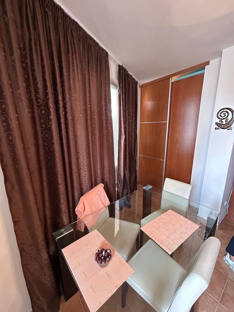 Big modern studio with a great layout is located in a newly built residential building in the town of Pomorie. The apartment has an area of 52 m2 and is located on the third floor. It consists of an entrance hall, a room with a kitchen area and a sleeping place, a bathroom with WC and a balcony. The beach is about 300 meters away. If you want you can visit the famous SPA hotel "Grand Hotel Pomorie", as well as rehabilitation sanatorium, where you can get a full range of medical and cosmetology services using the therapeutic mud of Lake Pomorie. Pomorie is an excellent place for recreation, permanent residence, as well as for treatment and rehabilitation. The infrastructure of the town is open all year round.
