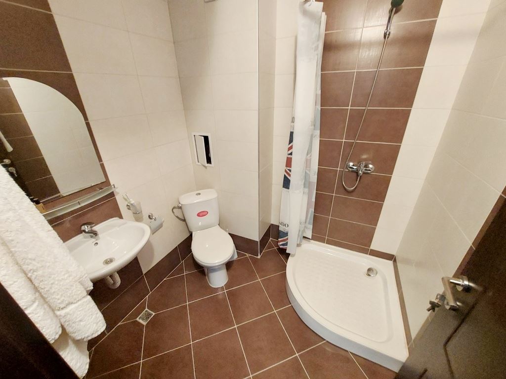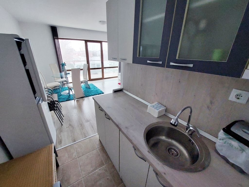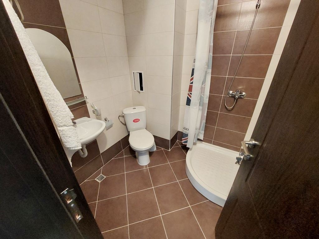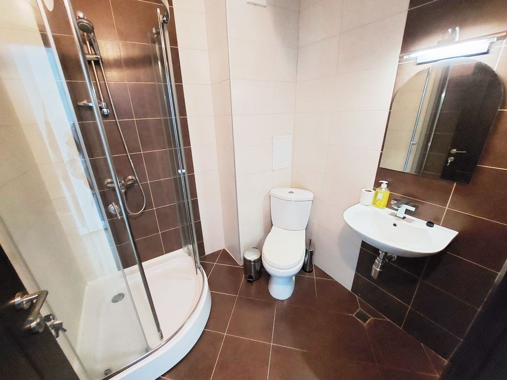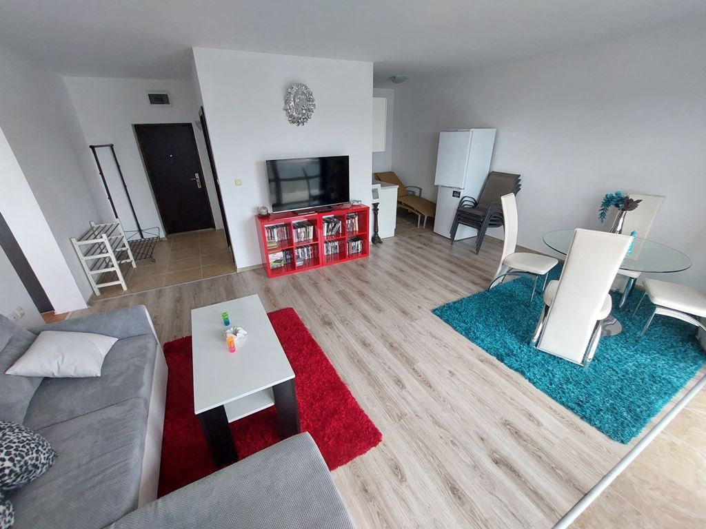 Large one-bedroom apartment in an apartment building with no maintenance fees is located in a convenient area of Sunny Beach resort. The area is quiet, with all the necessary communications. In walking distance to all the stores, institutions, pharmacies, medical center, bus stops. The beach is no more than a 10 minute walk away. The widest beach strip on the coast, and the entire beach has a length of 6 km. The beach is divided into paid and free zones. At paid zones umbrellas and sun loungers are installed. The apartment has a total area of 114 m2, located on the third floor of the building.
