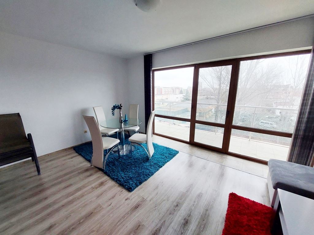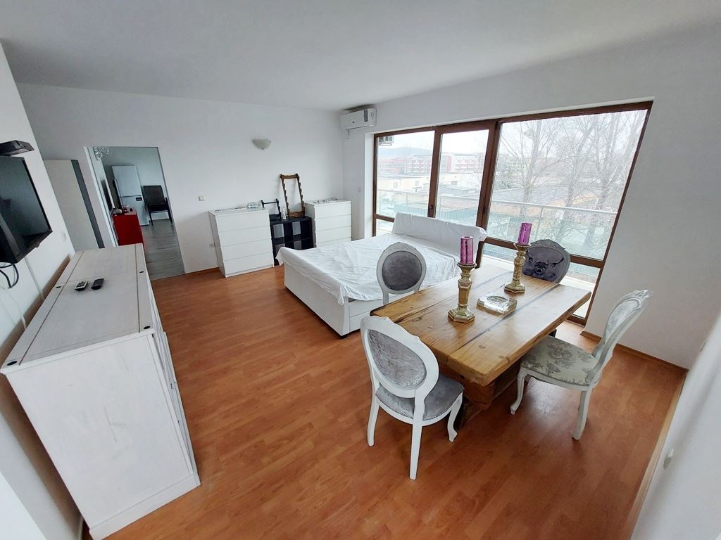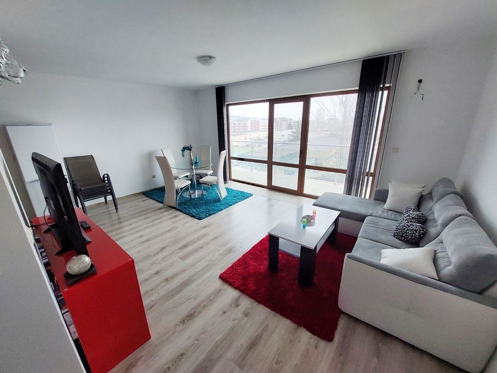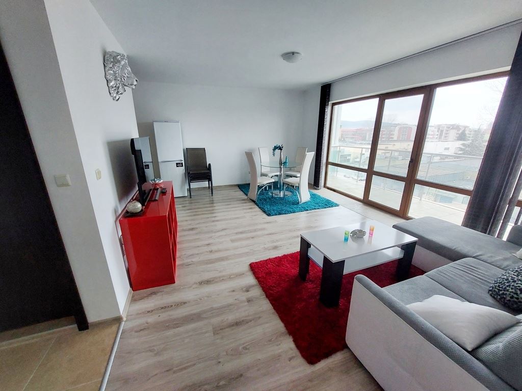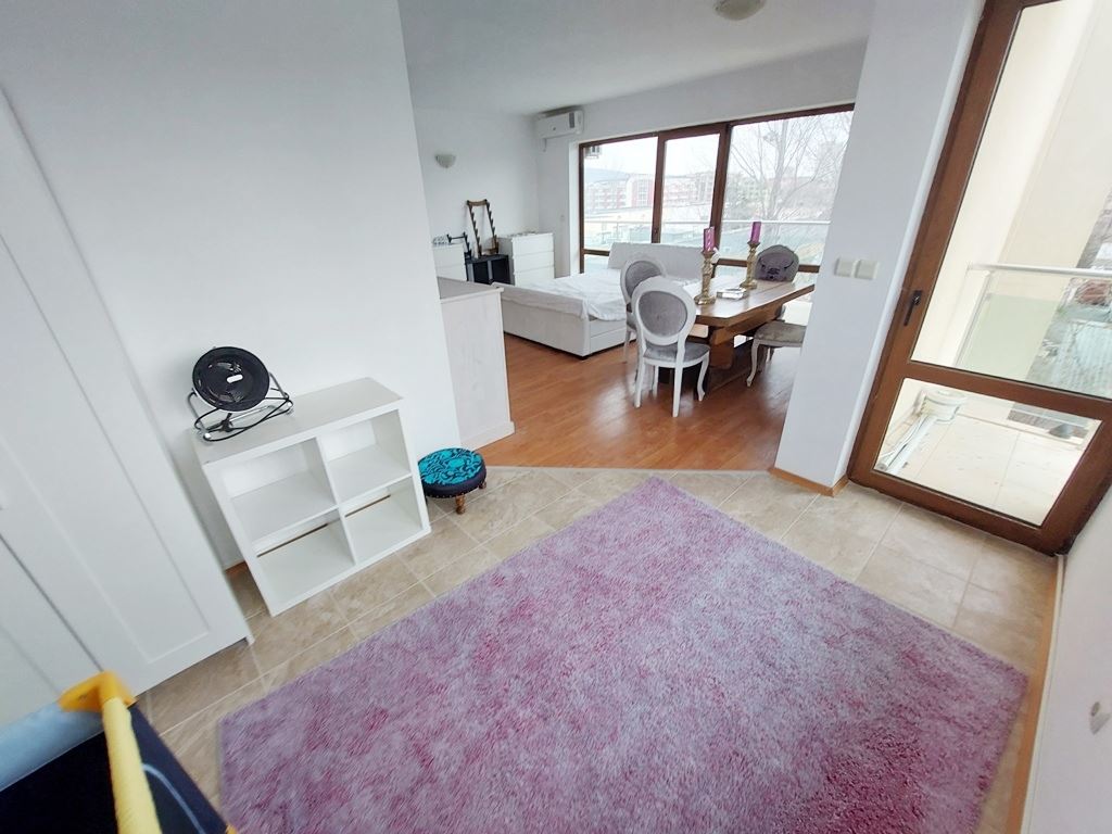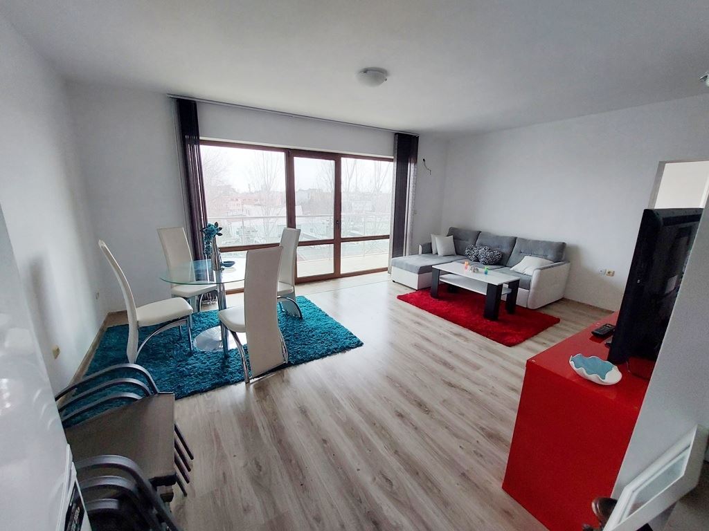 Large one-bedroom apartment in an apartment building with no maintenance fees is located in a convenient area of Sunny Beach resort. The area is quiet, with all the necessary communications. In walking distance to all the stores, institutions, pharmacies, medical center, bus stops. The beach is no more than a 10 minute walk away. The widest beach strip on the coast, and the entire beach has a length of 6 km. The beach is divided into paid and free zones. At paid zones umbrellas and sun loungers are installed. The apartment has a total area of 114 m2, located on the third floor of the building.