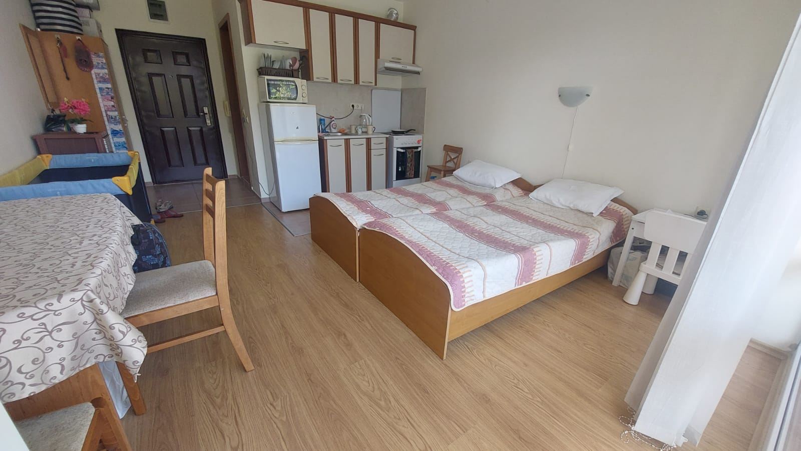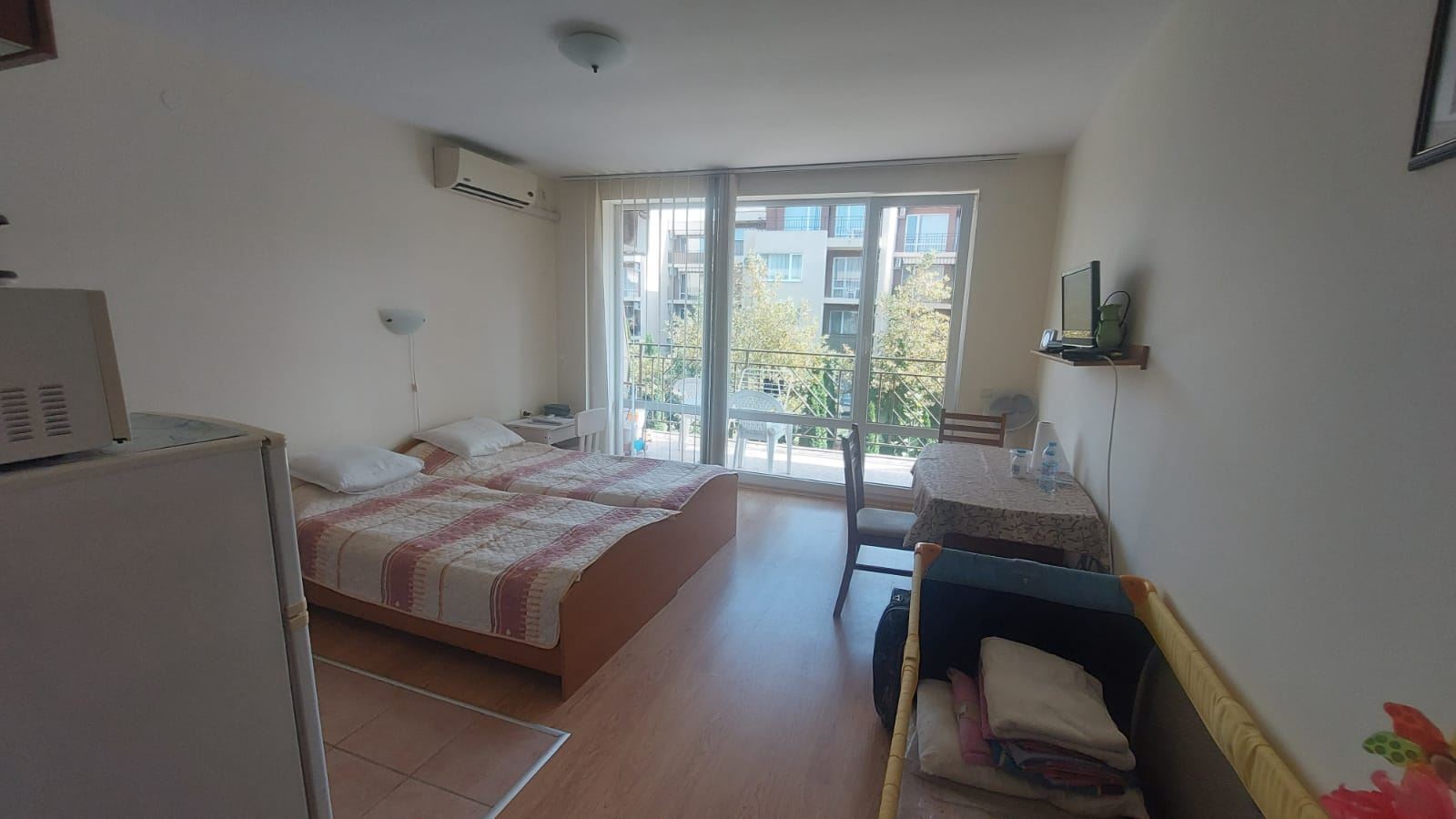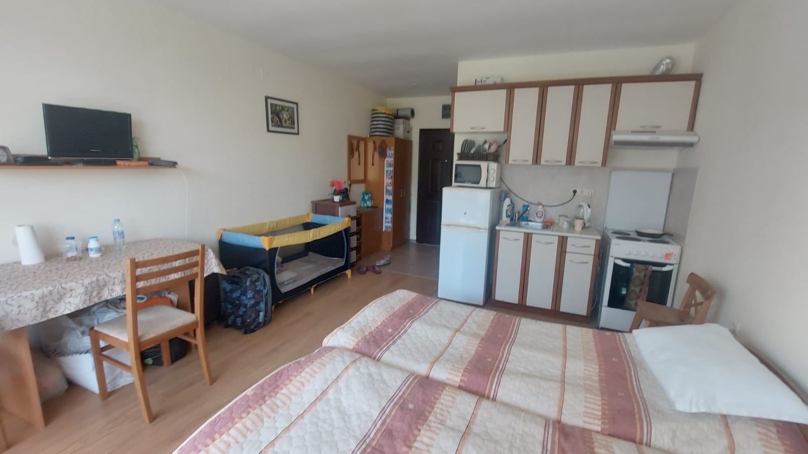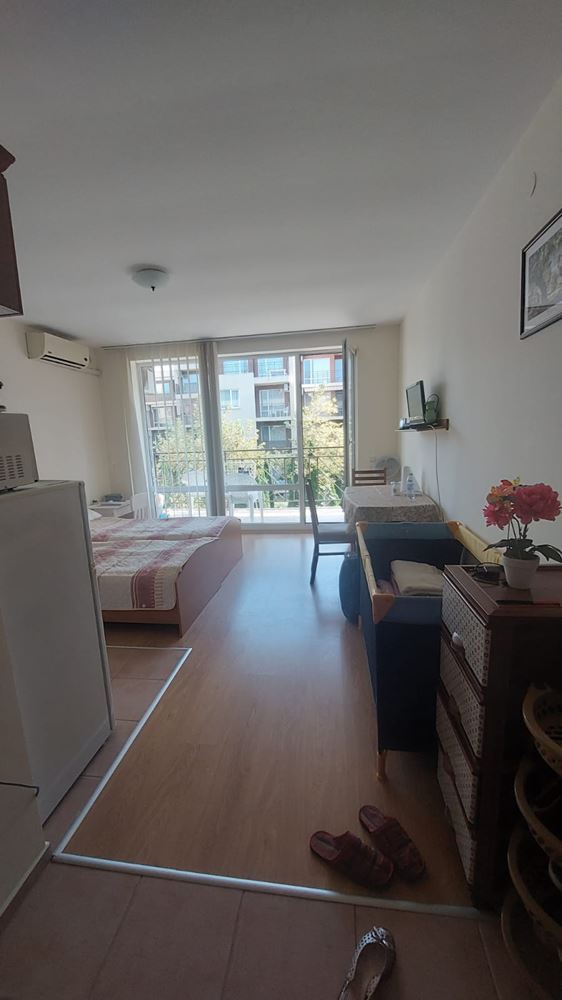 A large studio in a beautiful complex in Sunny Beach is an excellent opportunity for a comfortable stay or vacation. The apartment has an area of 40 square meters and provides a spacious living room with a kitchen, a combined bathroom and a balcony. This provides a comfortable space for living. The accommodation is fully furnished and equipped with everything you need, making it ready to move in. This includes furniture, appliances and other amenities. The complex has extensive and well-maintained grounds with several swimming pools, restaurant, bar, sports and children's playgrounds, tennis court, parking and 24-hour security. This provides residents with many opportunities for an active lifestyle and recreation. There is an Aquapark and a large supermarket next to the complex, making it easy to access various services and products. This apartment and the complex in which it is located are perfect for permanent year-round living due to the amenities and infrastructure.