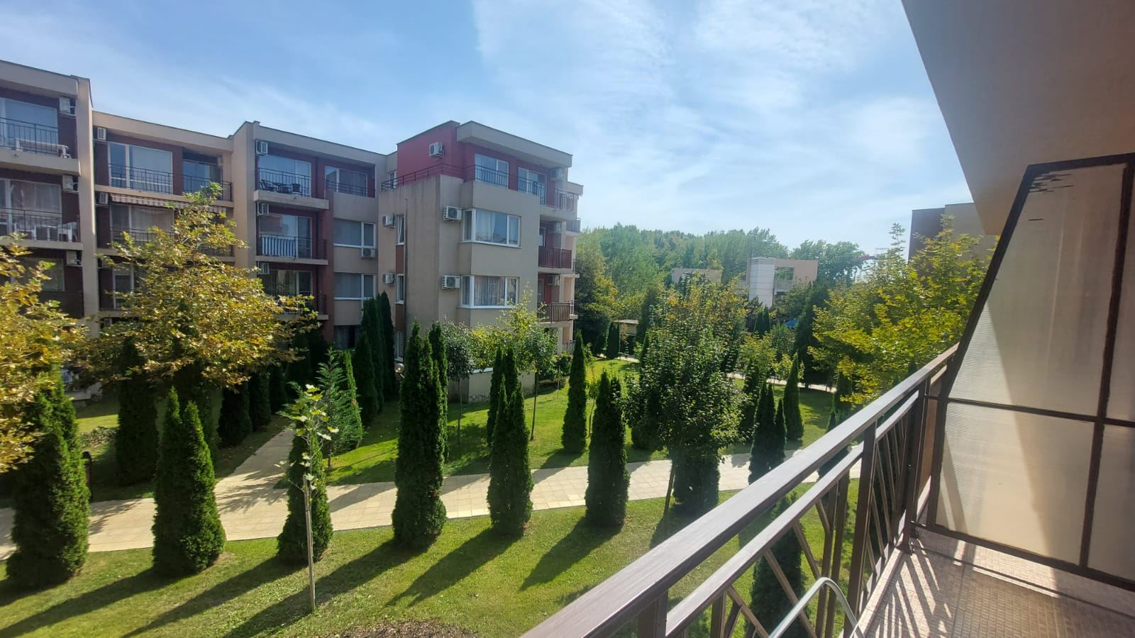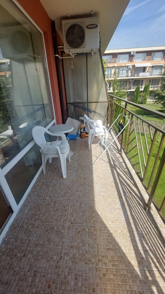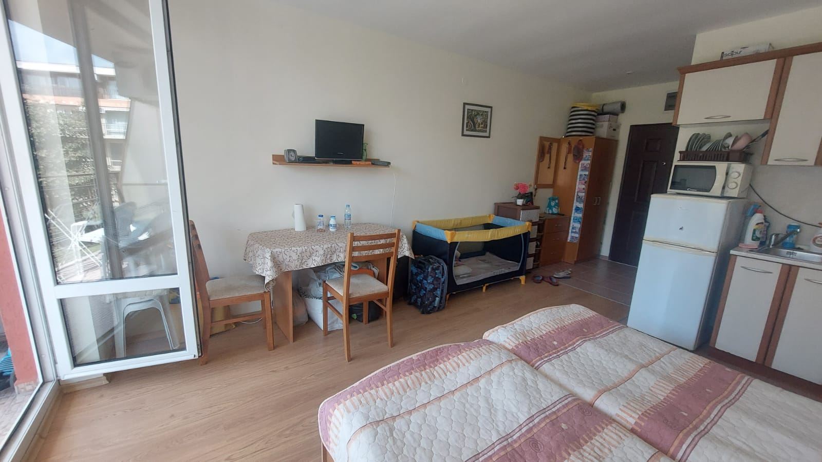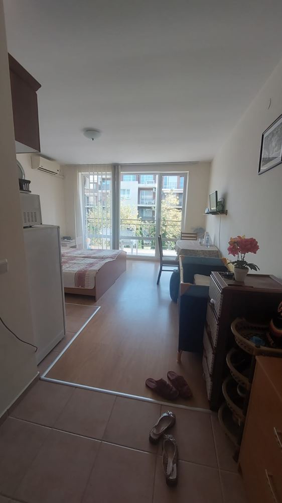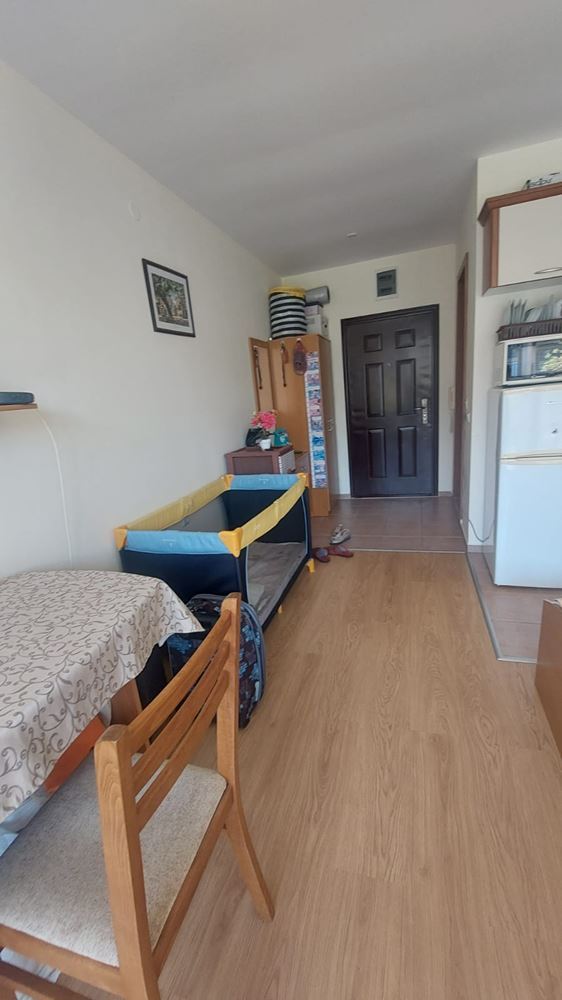 A large studio in a beautiful complex in Sunny Beach is an excellent opportunity for a comfortable stay or vacation. The apartment has an area of 40 square meters and provides a spacious living room with a kitchen, a combined bathroom and a balcony. This provides a comfortable space for living. The accommodation is fully furnished and equipped with everything you need, making it ready to move in. This includes furniture, appliances and other amenities. The complex has extensive and well-maintained grounds with several swimming pools, restaurant, bar, sports and children's playgrounds, tennis court, parking and 24-hour security. This provides residents with many opportunities for an active lifestyle and recreation. There is an Aquapark and a large supermarket next to the complex, making it easy to access various services and products. This apartment and the complex in which it is located are perfect for permanent year-round living due to the amenities and infrastructure.