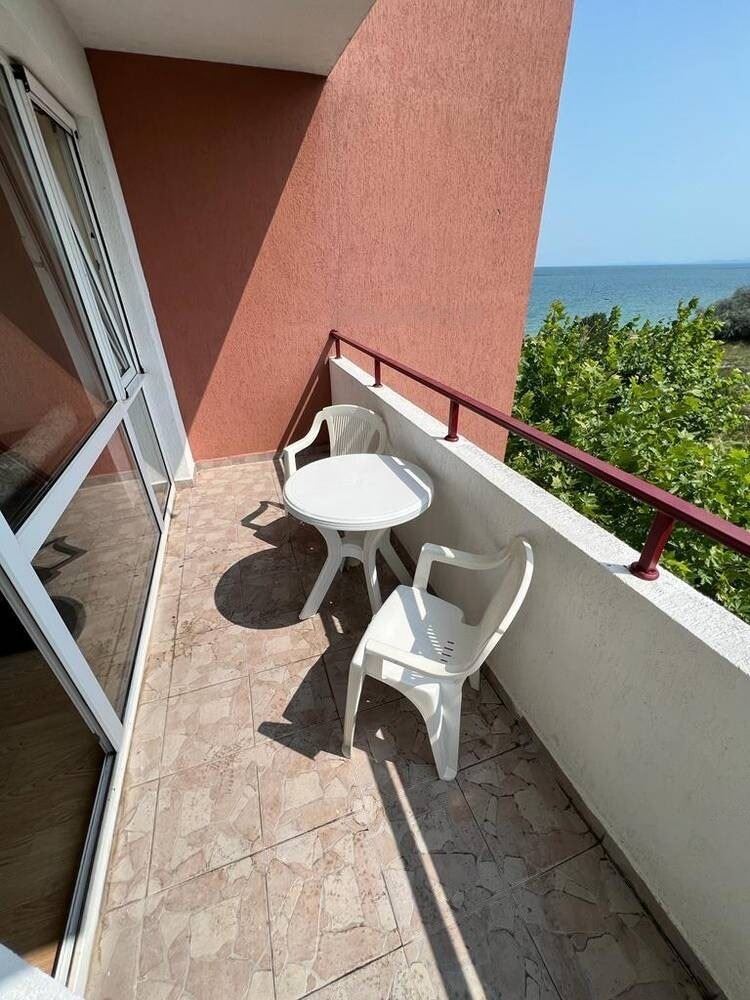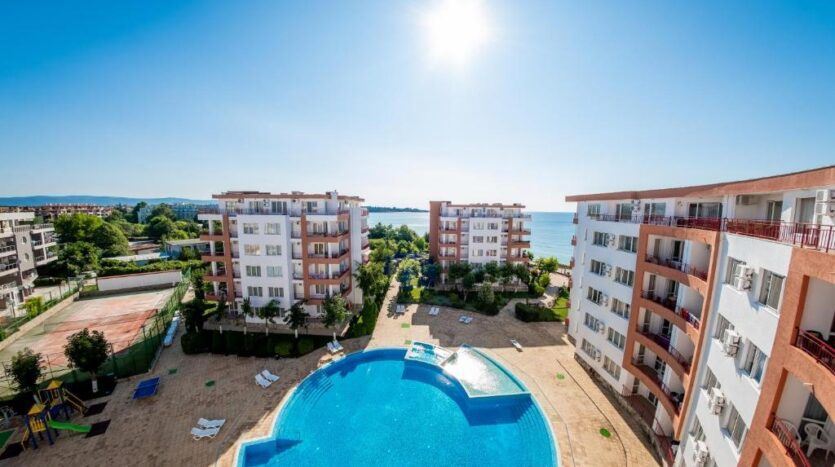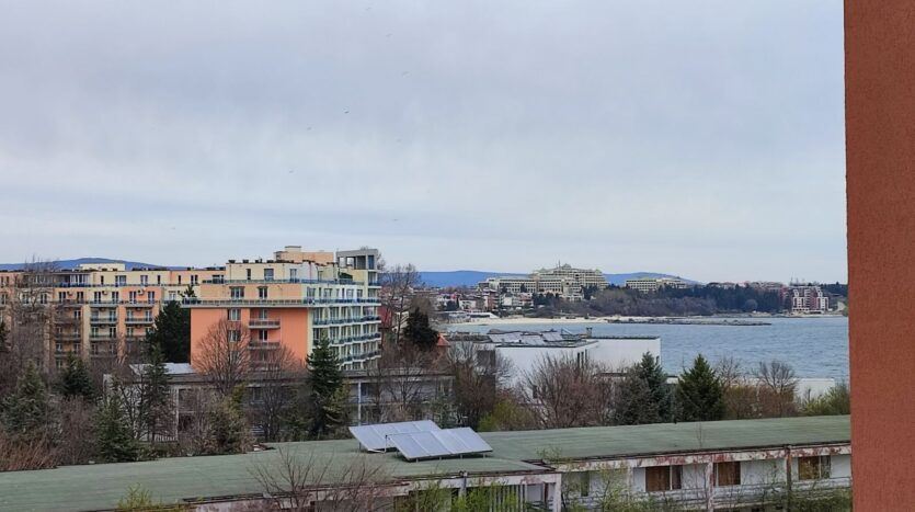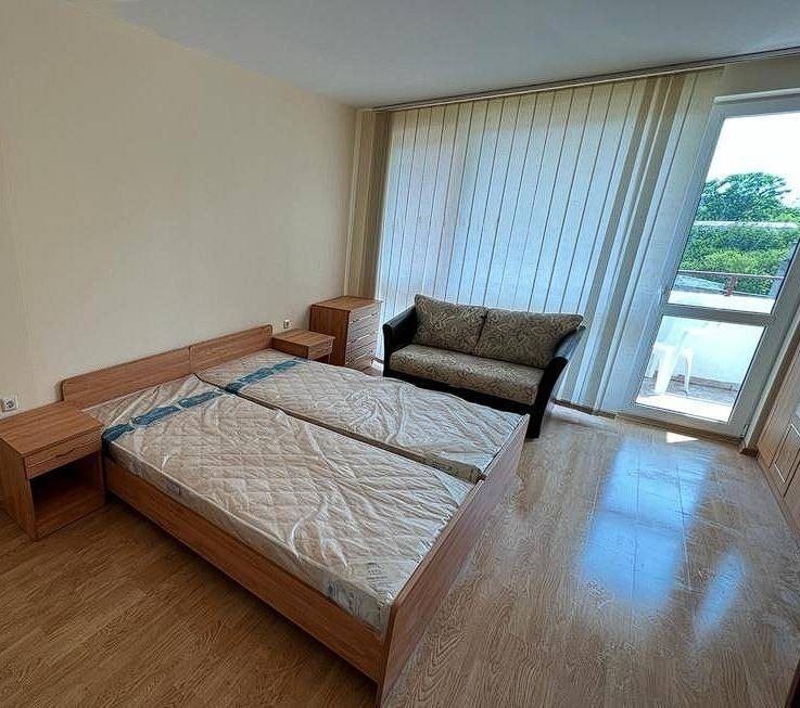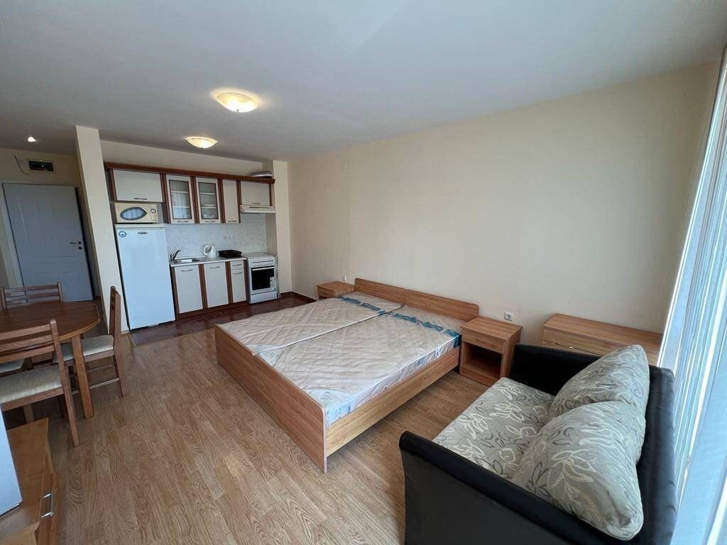 Large studio with sea view in a cozy sea front complex in the center of the resort village Ravda, 2 km from the museum town of Nessebar and 5 km from Sunny Beach. The whole infrastructure of the village, including numerous restaurants, bars, stores, children's attractions, discos, is at the disposal of tenants and in walking distance from the complex. The 46 m2 apartment is located on the fourth floor and is sold furnished and equipped. The complex has a well-maintained and well-greened area with a swimming pool, a playground with swings and slides, a tennis court and a soccer field, benches, a restaurant-garden, from the terrace of which you can admire the sea. There is also a store on the territory of the complex. The complex is closed, the territory is fenced. There is a free parking lot for the owners and their guests.