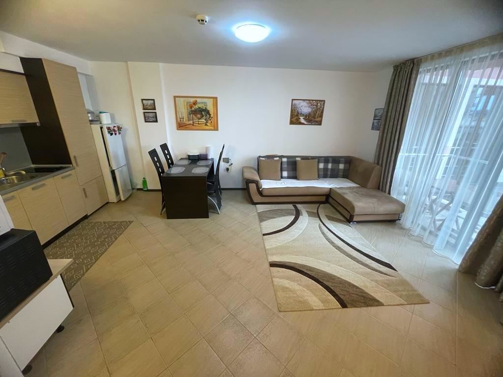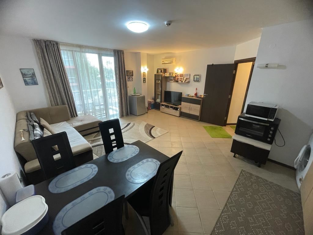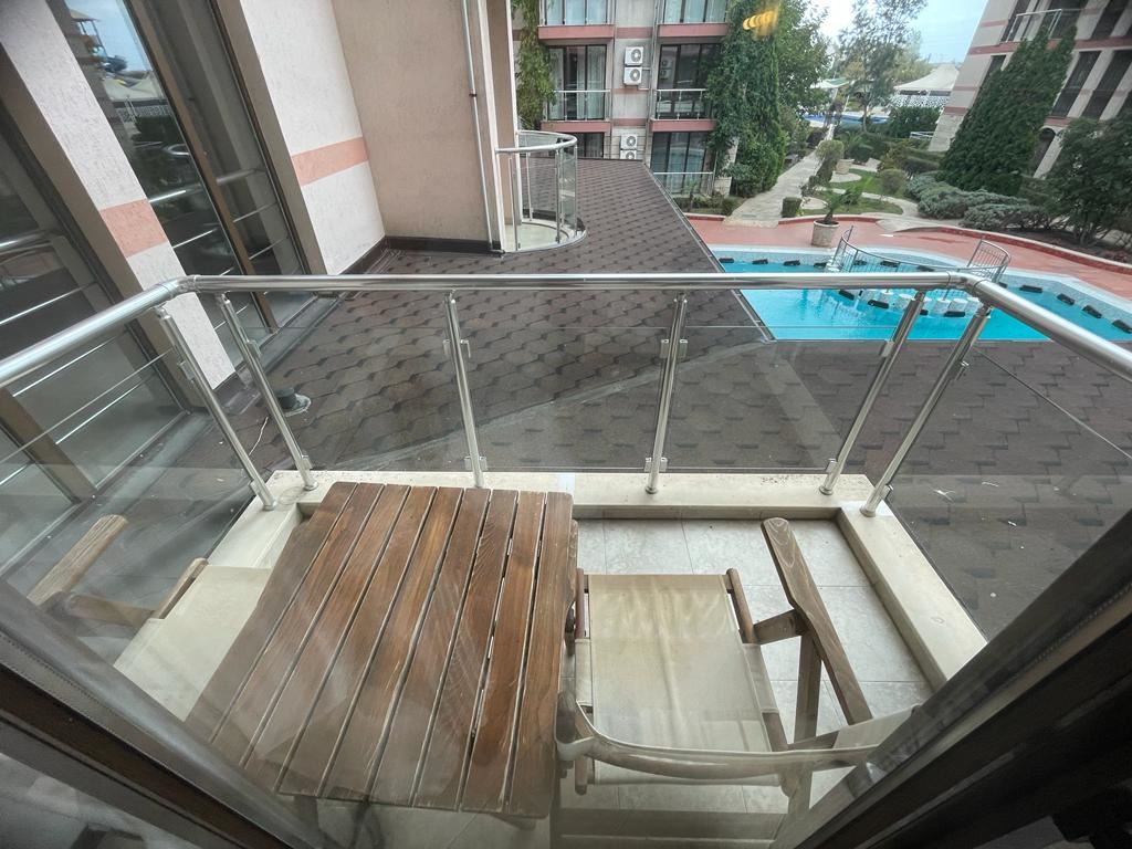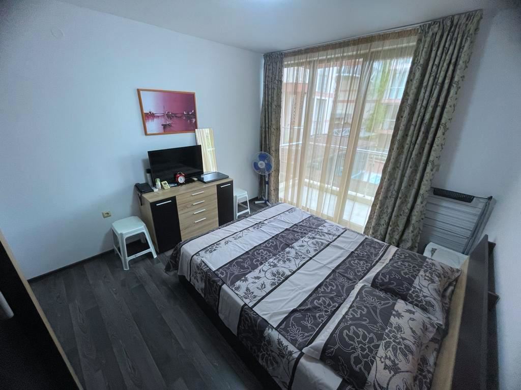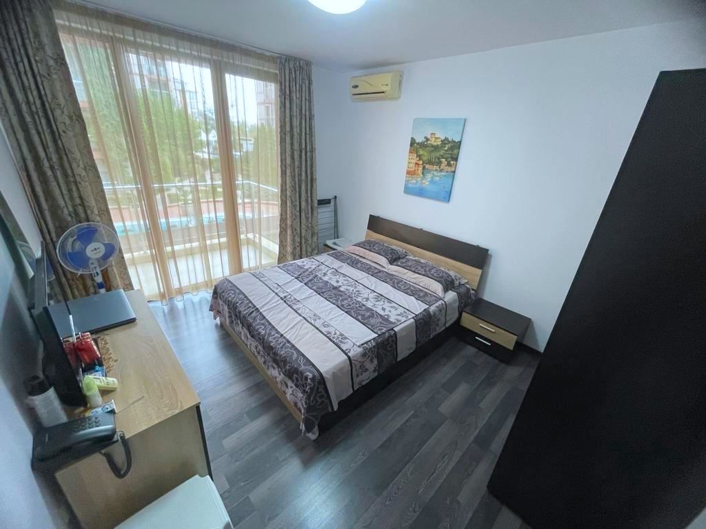 We present you an exclusive opportunity to purchase a stylish one bedroom apartment in the heart of the resort. Sunny Beach. This spacious property of 72,00 sq.m is located on the first floor and offers stunning views of the complex's pool, combining cosiness and comfort with modern amenities. The apartment consists of two functional rooms, including a bright and cosy bedroom, ideal for relaxing after a long day. The spacious living area is perfect for family dinners or friendly gatherings. In addition, the apartment has a balcony from which you can enjoy a beautiful view of the pool, combined with fresh sea air. High quality furniture and appliances are available for your use and included in the price.