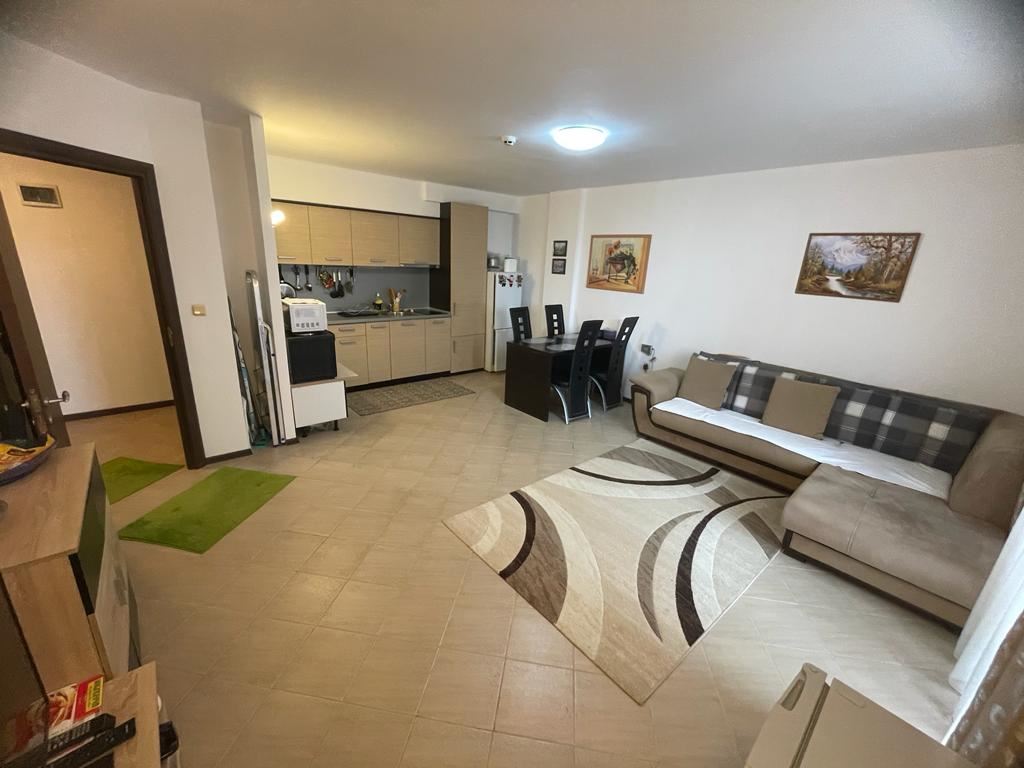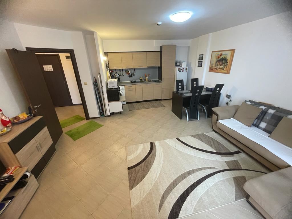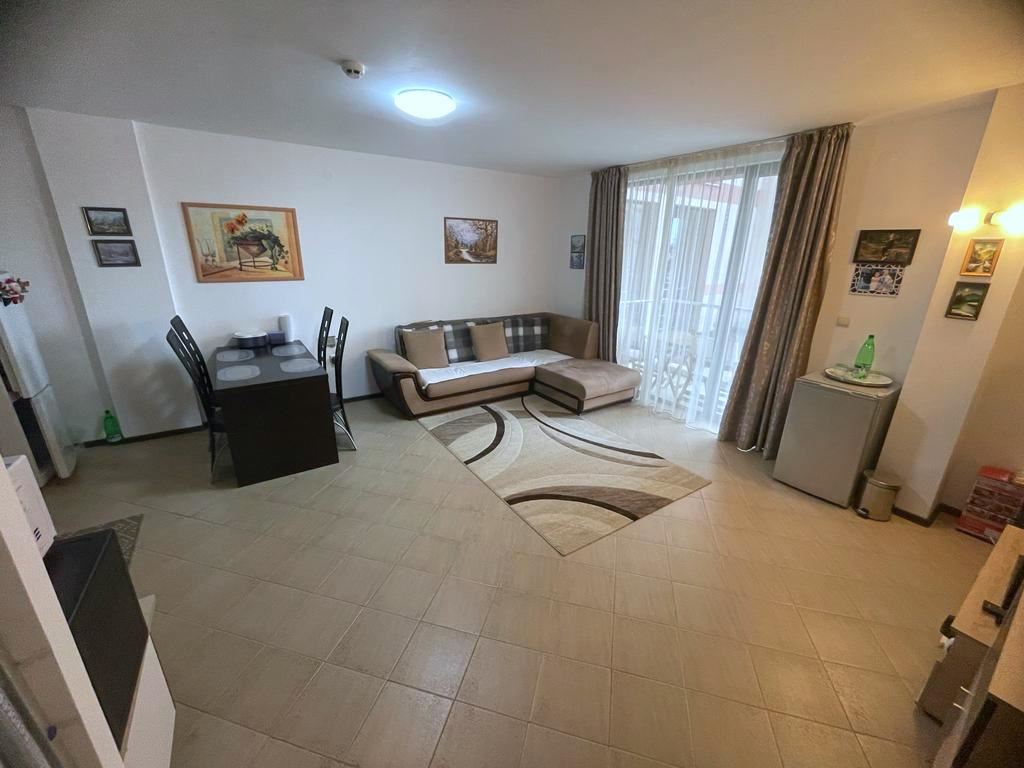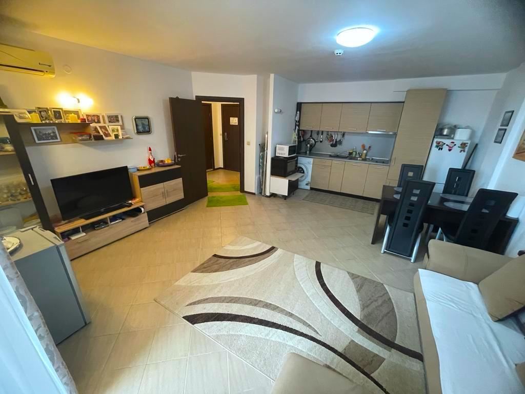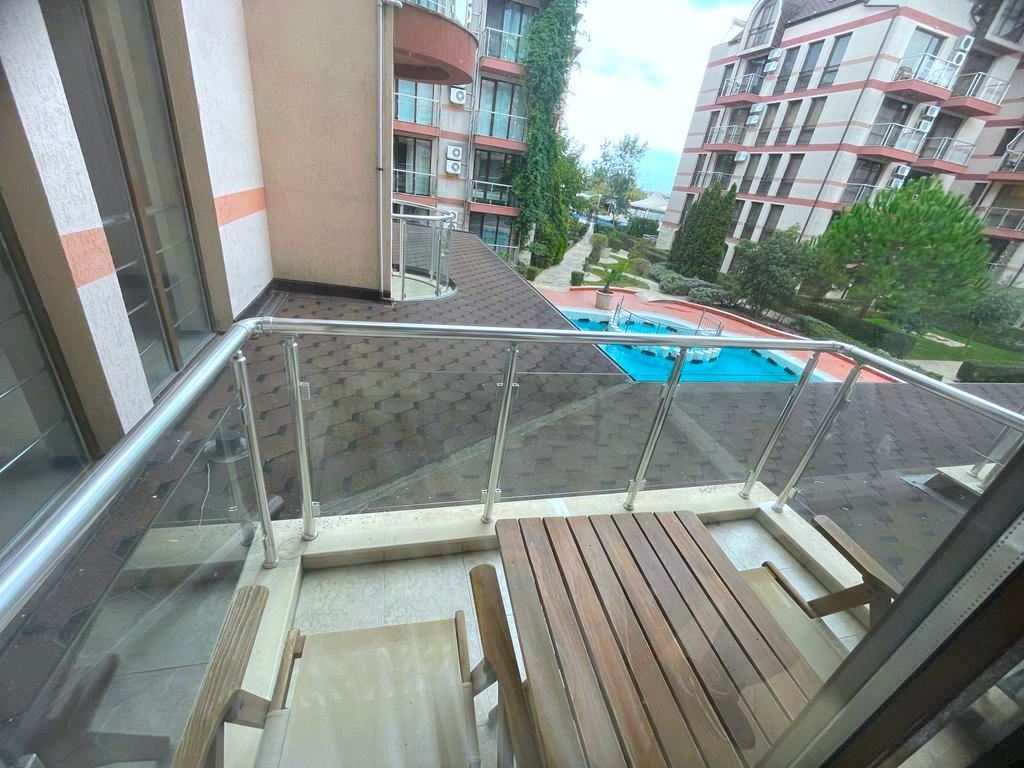 We present you an exclusive opportunity to purchase a stylish one bedroom apartment in the heart of the resort. Sunny Beach. This spacious property of 72,00 sq.m is located on the first floor and offers stunning views of the complex's pool, combining cosiness and comfort with modern amenities. The apartment consists of two functional rooms, including a bright and cosy bedroom, ideal for relaxing after a long day. The spacious living area is perfect for family dinners or friendly gatherings. In addition, the apartment has a balcony from which you can enjoy a beautiful view of the pool, combined with fresh sea air. High quality furniture and appliances are available for your use and included in the price.