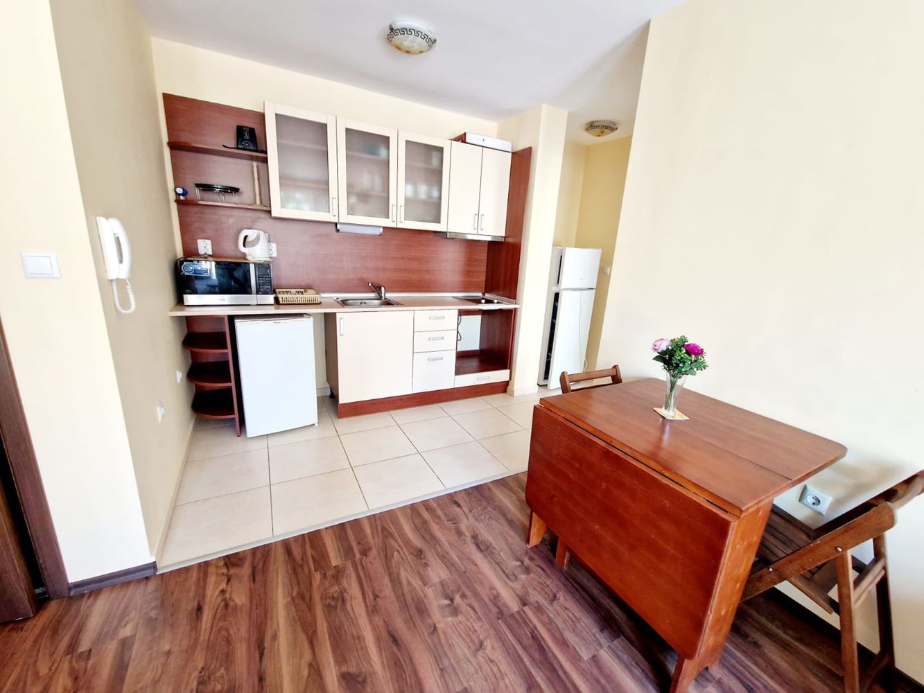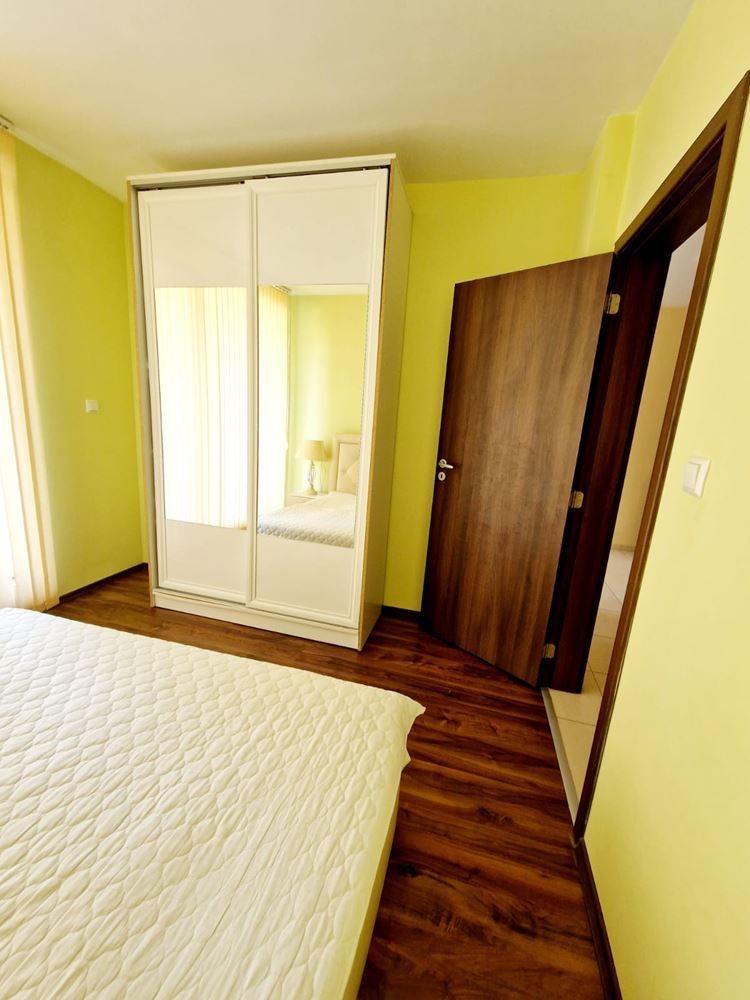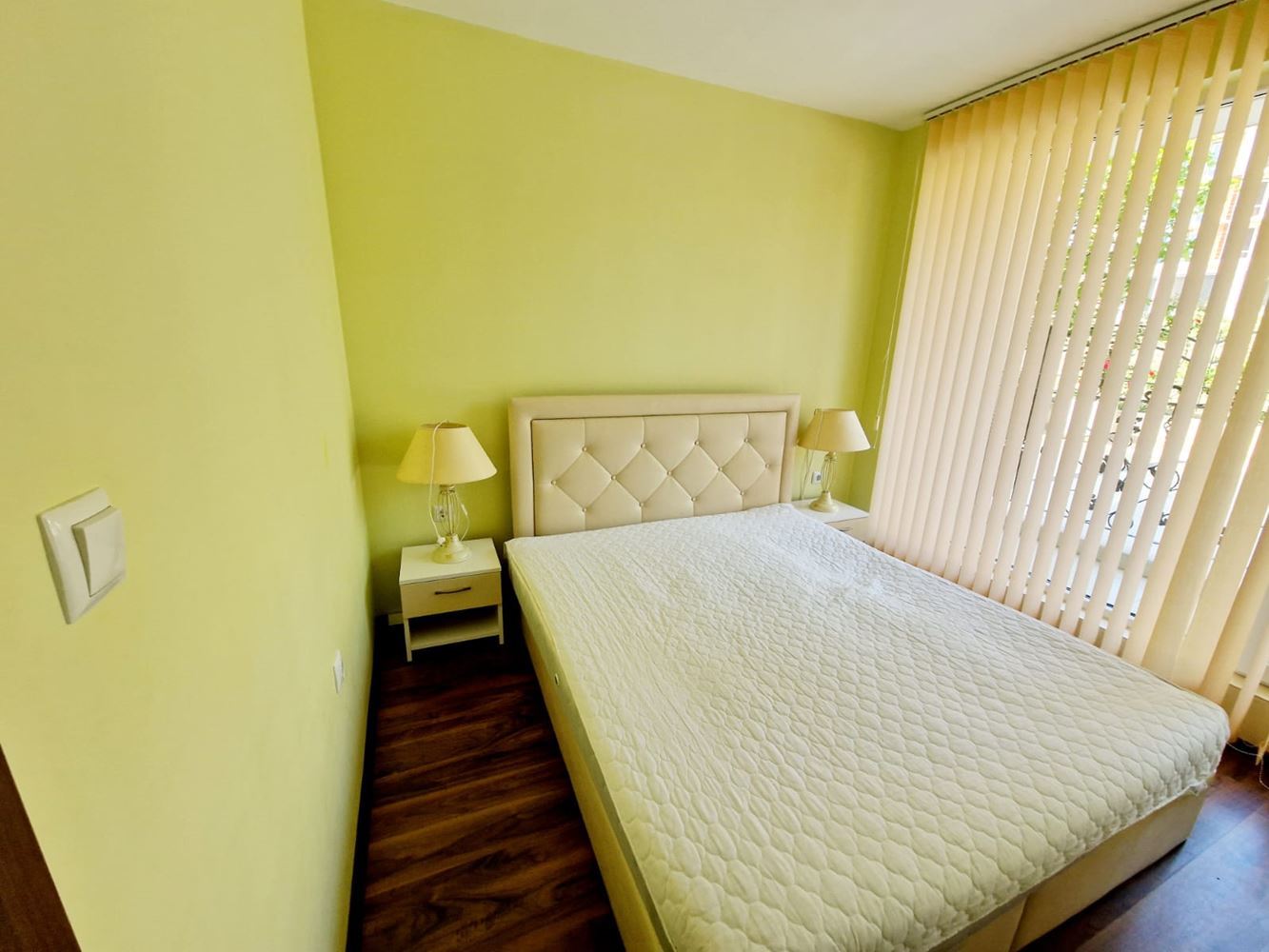 A unique opportunity to purchase a lovely one bedroom apartment in the picturesque town of Sveti Vlas, a top resort on the Bulgarian coast. The apartment is a stylish and functional space with a total area of 55 m2. The living room is combined with the kitchen, a spacious bedroom, a bathroom with a toilet and a balcony with mountain views. First floor. For sale with furniture and appliances.