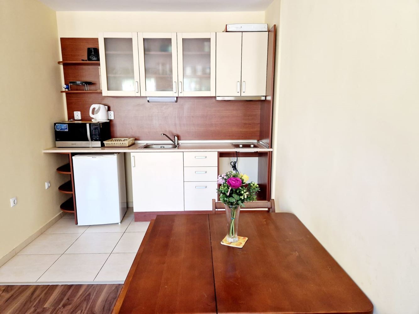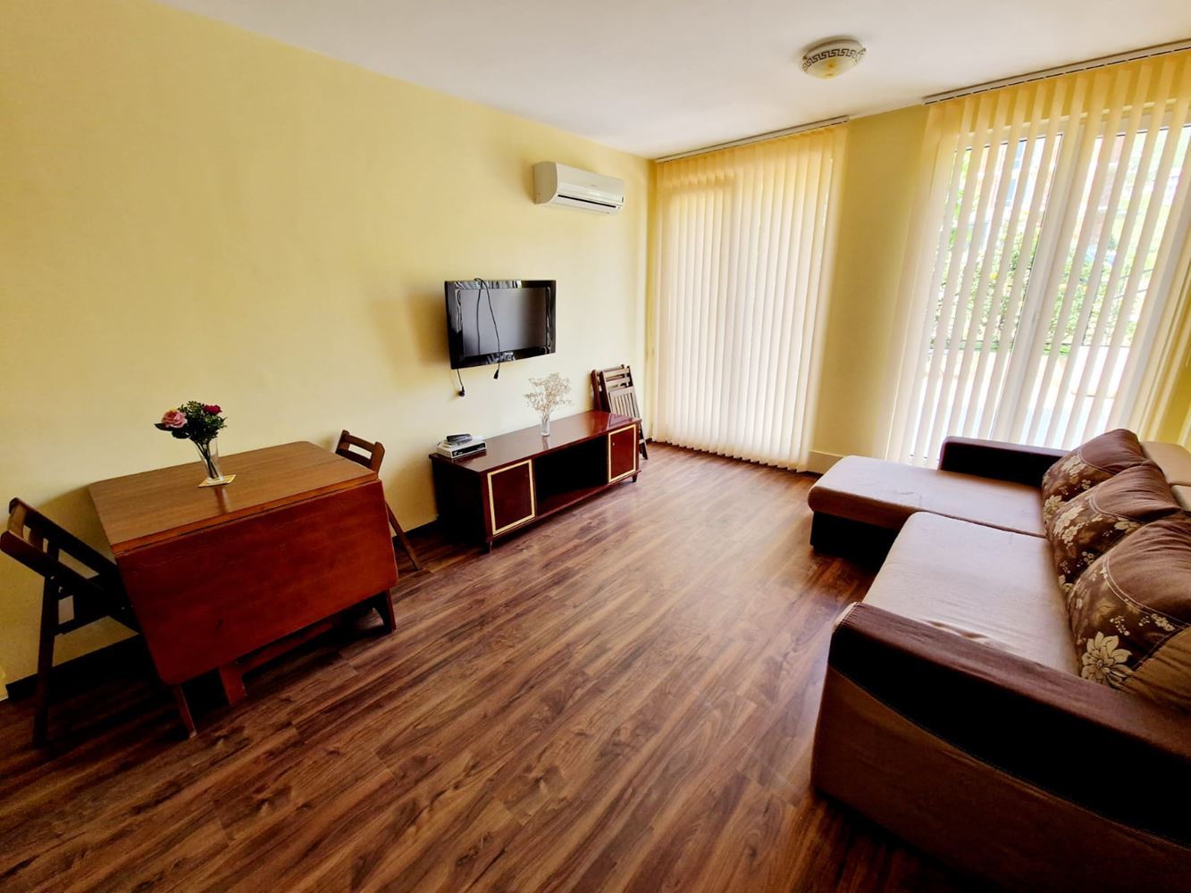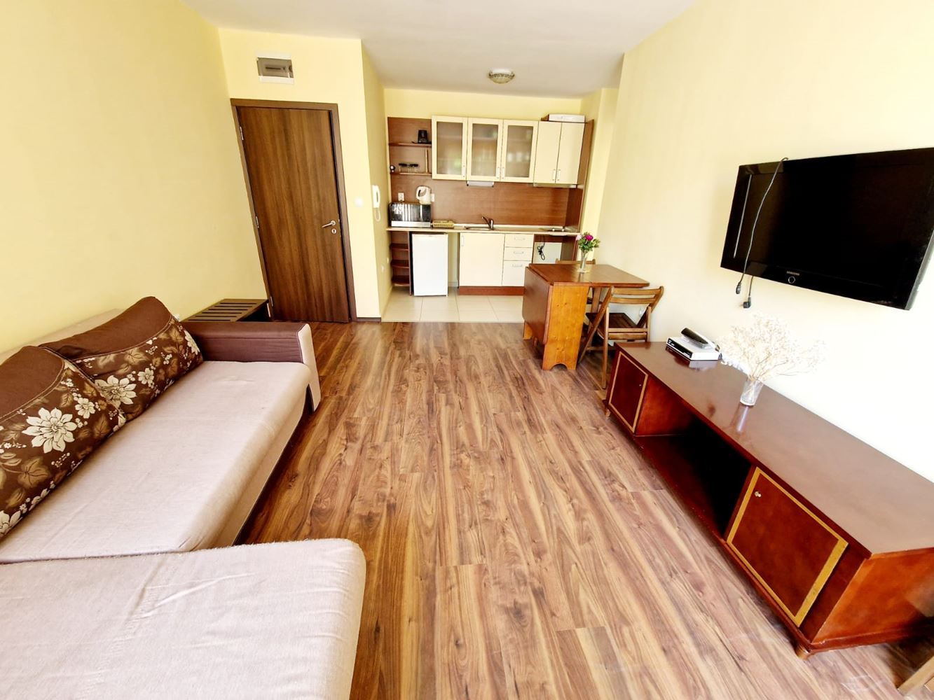 A unique opportunity to purchase a lovely one bedroom apartment in the picturesque town of Sveti Vlas, a top resort on the Bulgarian coast. The apartment is a stylish and functional space with a total area of 55 m2. The living room is combined with the kitchen, a spacious bedroom, a bathroom with a toilet and a balcony with mountain views. First floor. For sale with furniture and appliances.