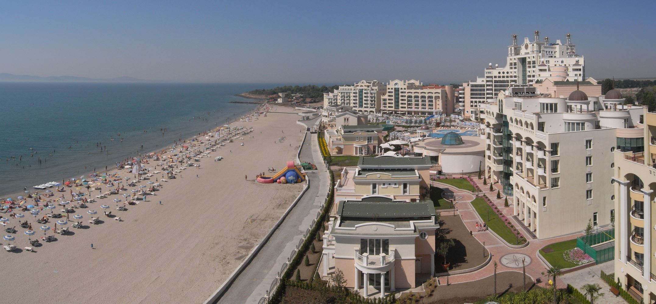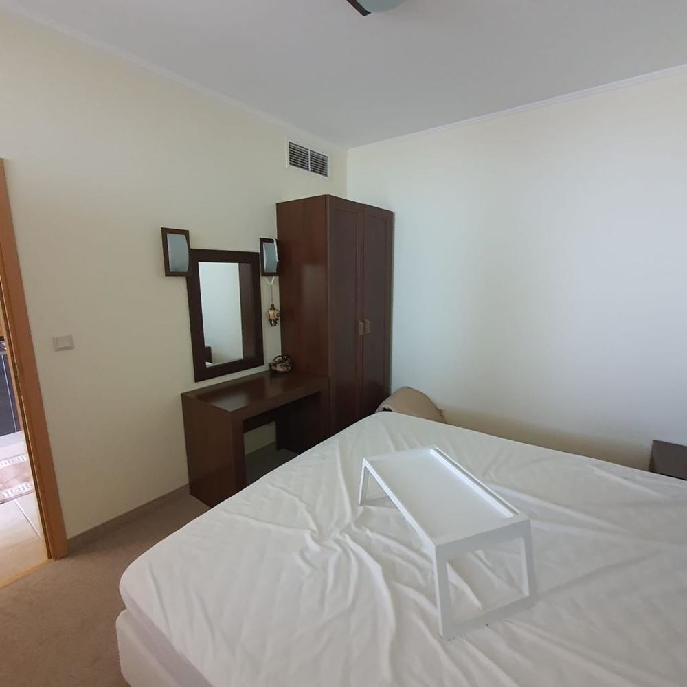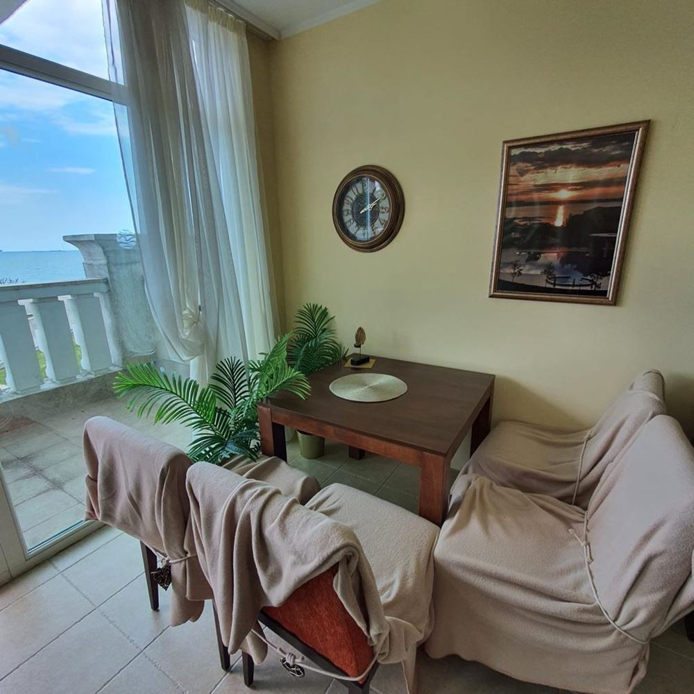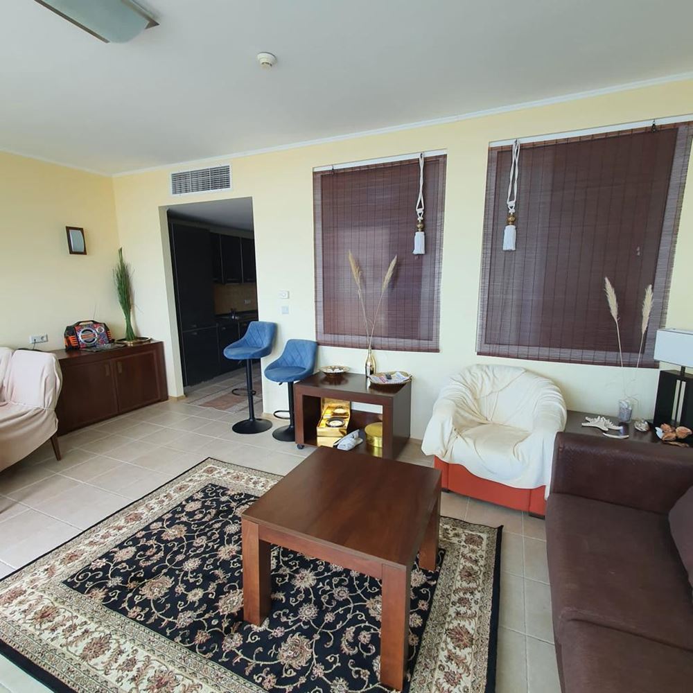 Beautiful one-bedroom flat in the famous resort town of Pomorie. The flat is located in a fashionable complex, which is located on the first line directly to the sandy beach. The complex has a perfectly equipped infrastructure, including swimming pools with recreation areas, SPA-center, fitness centre, bars, restaurants, reception, security, parking. This spacious one-bedroom flat is located on the high ground floor, actually the first floor. The size of the flat is 72 m2. The bright and spacious flat is offered furnished and equipped. It has a sea view.