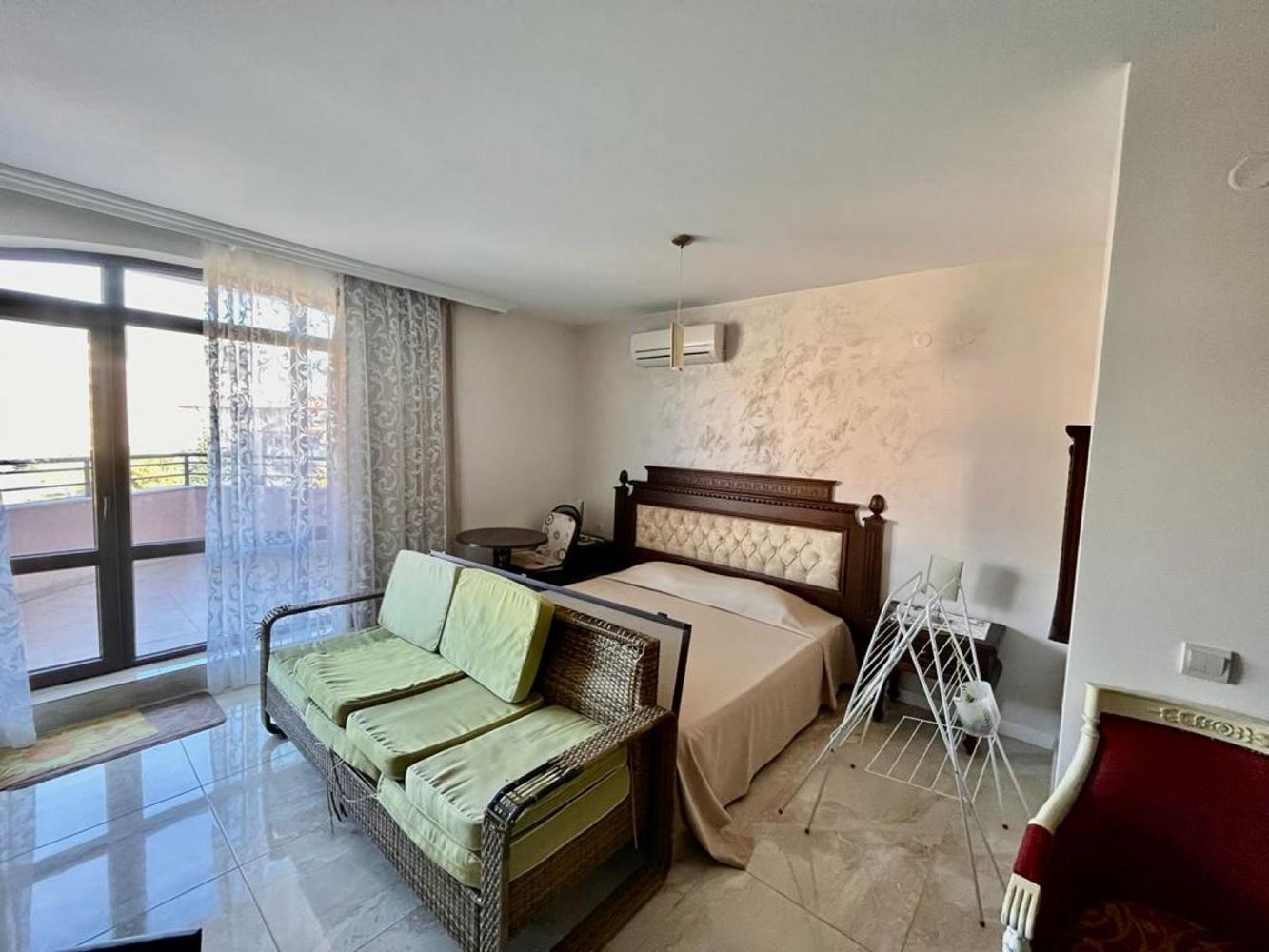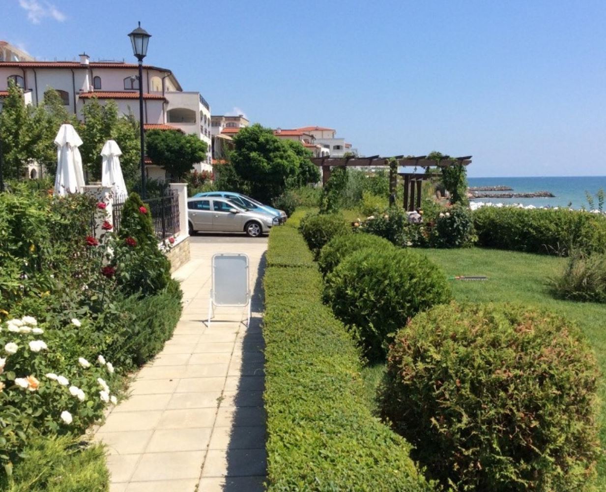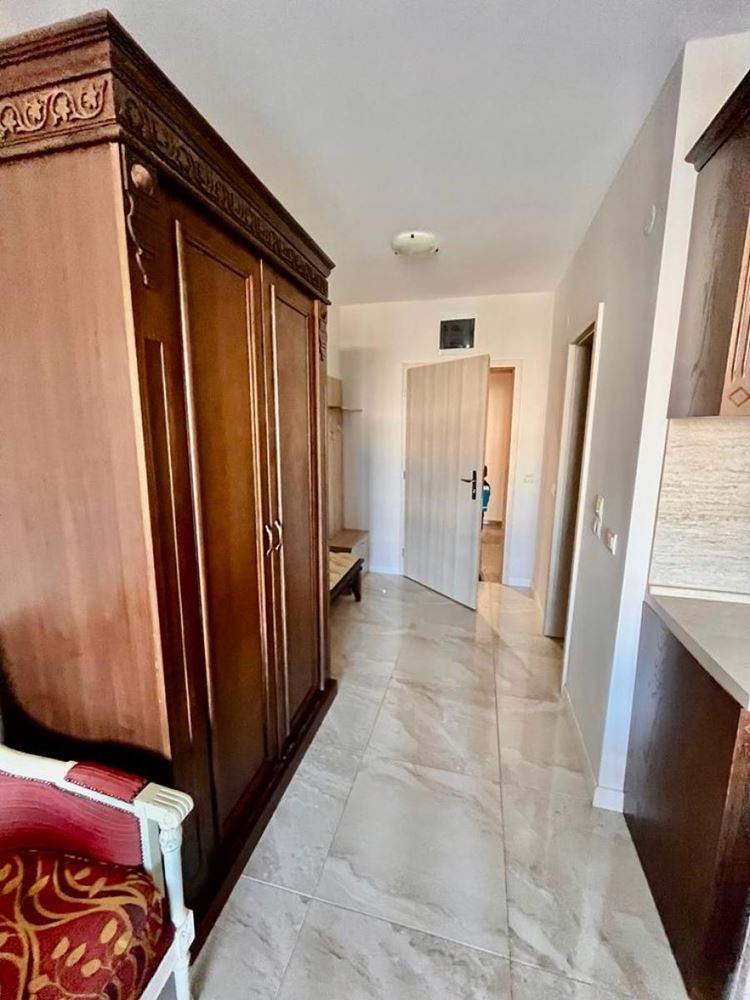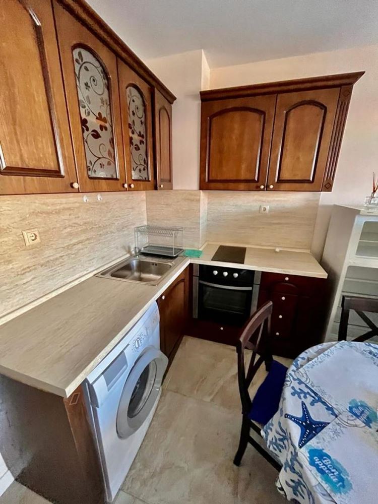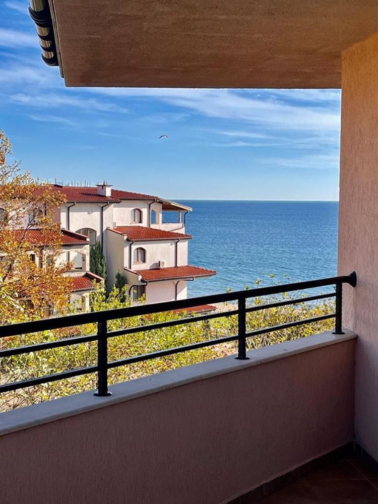 This beautiful studio with sea view in the seaside town of Sveti Vlas is a perfect combination of comfort and aesthetics within a modern accommodation. The apartament has a spacious area of 62 square metres and is located on the 5th floor of an exclusive complex on the first line from the beach. The layout of the apartament is as functional and comfortable as possible. Upon entering, you are greeted by the entrance hall, which creates a feeling of cosiness and hospitality. From here you have access to the living room, which serves as both a kitchen area and a sleeping area. This provides an open and airy space filled with light and fresh air thanks to the balcony with mesmerising views of the sea, mountains and the complex grounds. The apartament is fully furnished with stylish and functional furniture, making it ready for instant move-in or rental. This exclusive luxury complex is a top quality project. The high standards of construction, finishing materials and interior design create an atmosphere of luxury and cosiness. The infrastructure of the complex is designed to provide residents with a full-fledged holiday without domestic problems. Here you can enjoy all the comforts of modern civilisation while being surrounded by the beauty of nature and sea breeze.