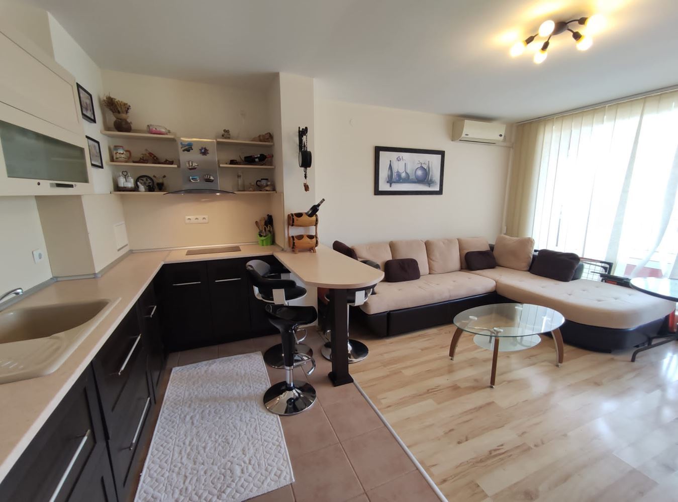 Lovely one-bedroom apartment in Sunny Beach Resort is located in a gated club-type complex. The complex is located in the western part of the resort at a distance of about one kilometre from the beaches. Infrastructure, cafes, restaurants, shops etc. are within walking distance. The complex is surrounded by a large and beautiful garden, with all the necessary amenities for not only a good summer holiday, but also for permanent residence all year round. Outdoor pools are open during the summer season and all year round you can use the slides, all children's and sports grounds, the café, the restaurant, the mini market, the car park. The flat is located on the third floor of the building. It consists of an entrance hall, living room with kitchen area, spacious bedroom, bathroom and a balcony overlooking the property. The flat has a total floor area of 64 m2. It is sold with quality stylish furniture and appliances.