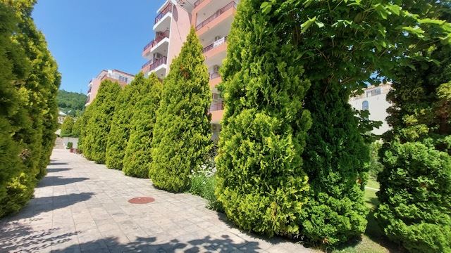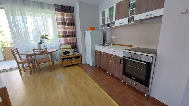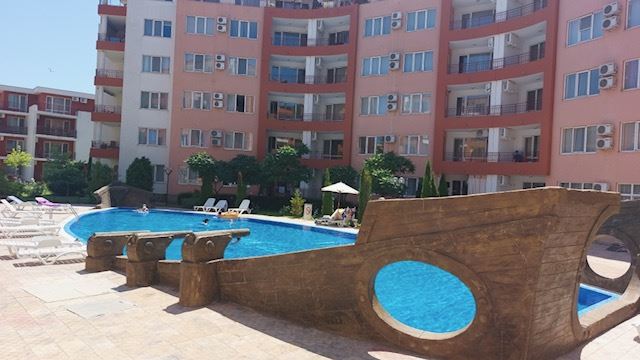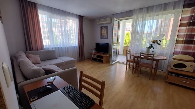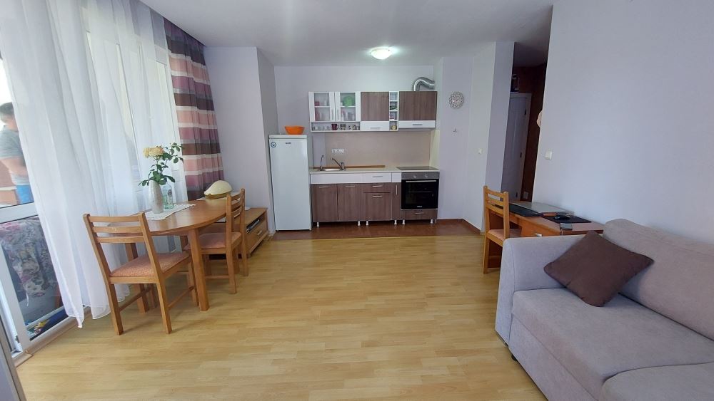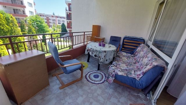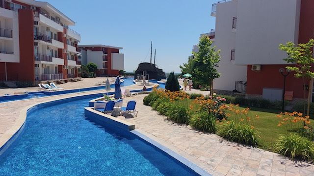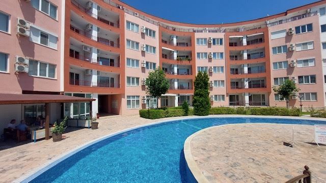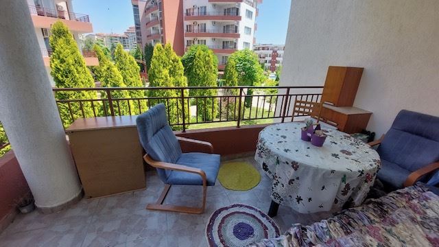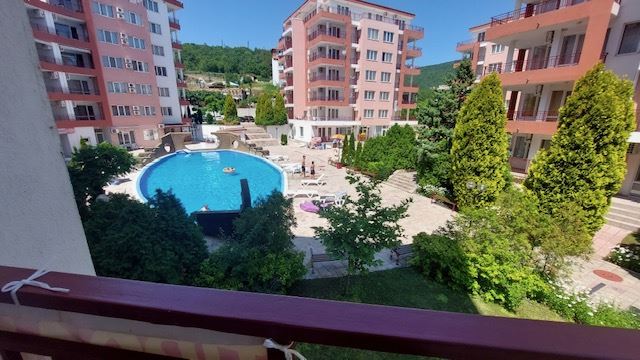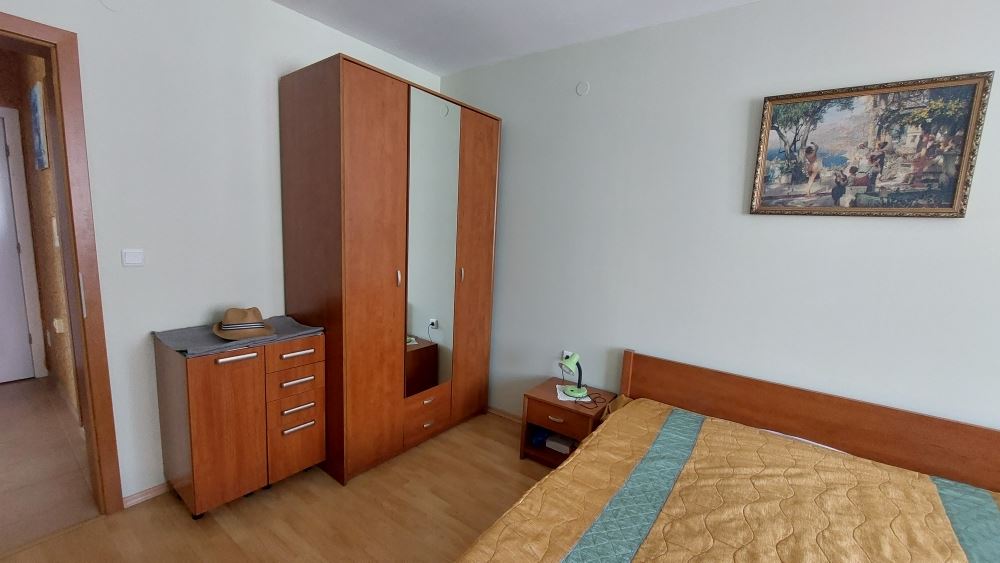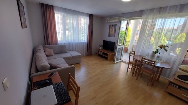 Spacious pleasant one bedroom apartment on the first line from the sea in the elite resort of Elenite. The 76 m2 apartment is located on a comfortable second floor. The living space includes a spacious living room with kitchen and dining area, a bedroom, a bathroom with toilet and a balcony overlooking the beautiful territory and courtyard. The apartment is furnished and equipped with the necessary amenities and comfort for a pleasant year-round stay. The furniture is in good condition. Excellent investment in resort real estate.