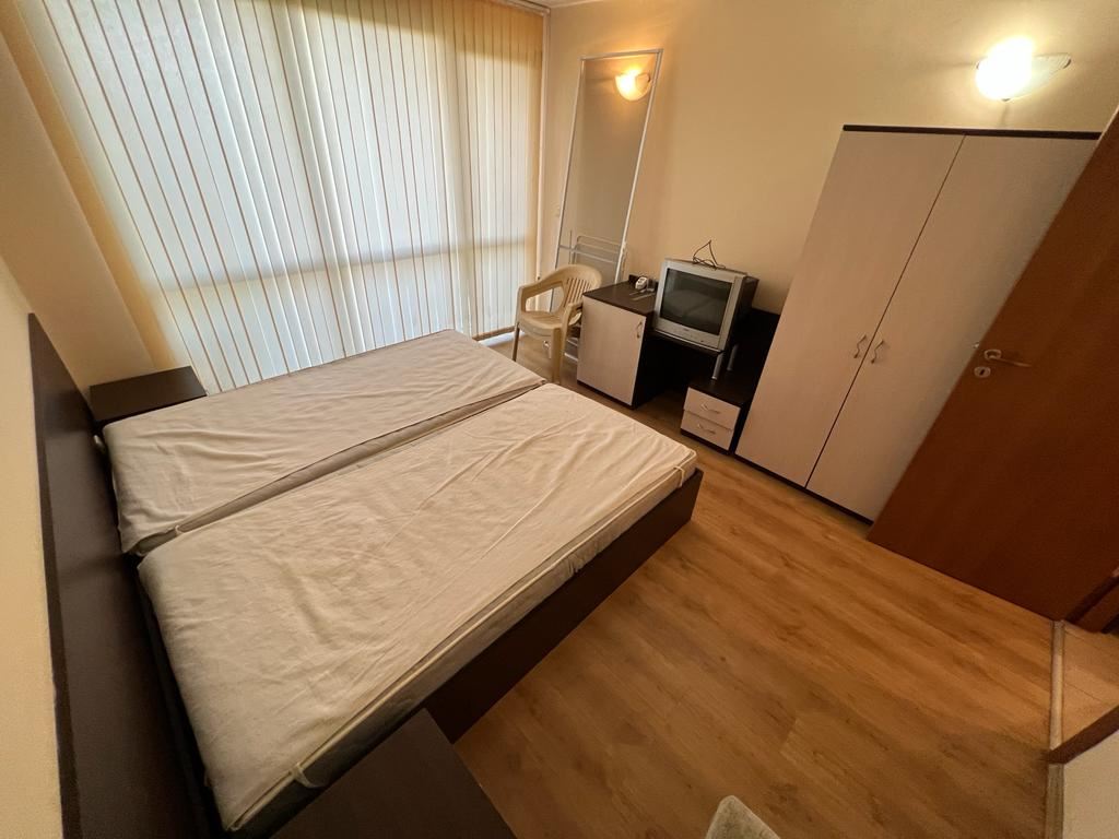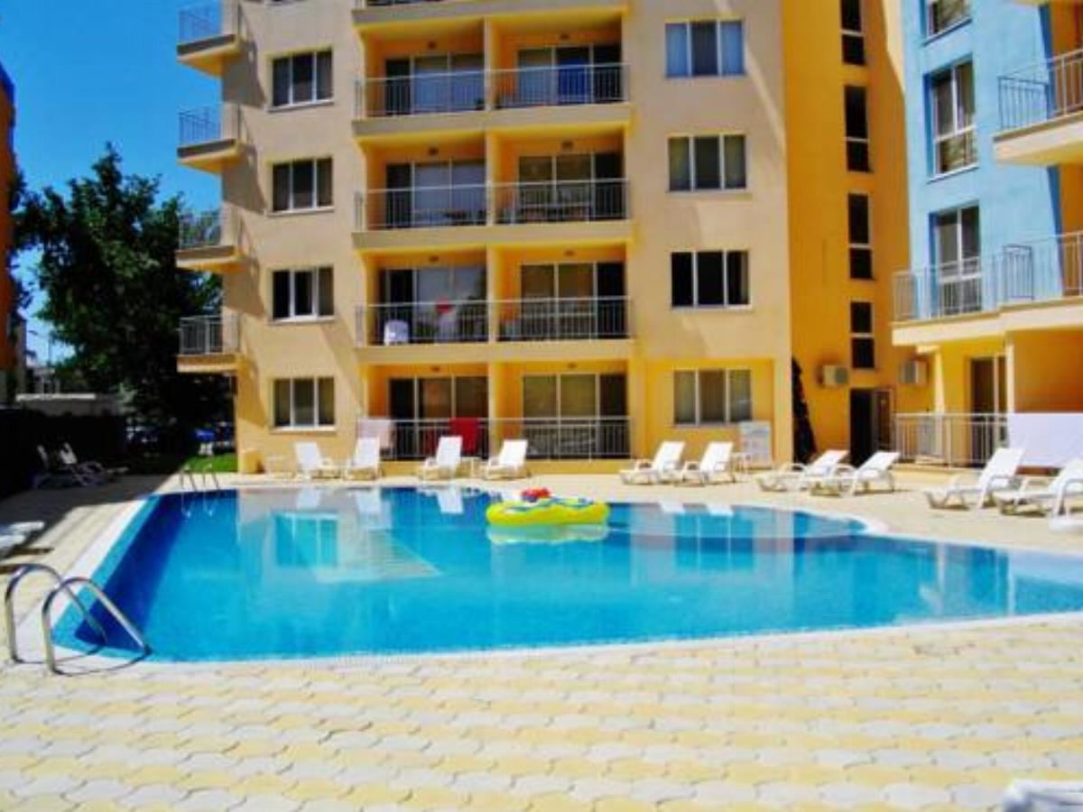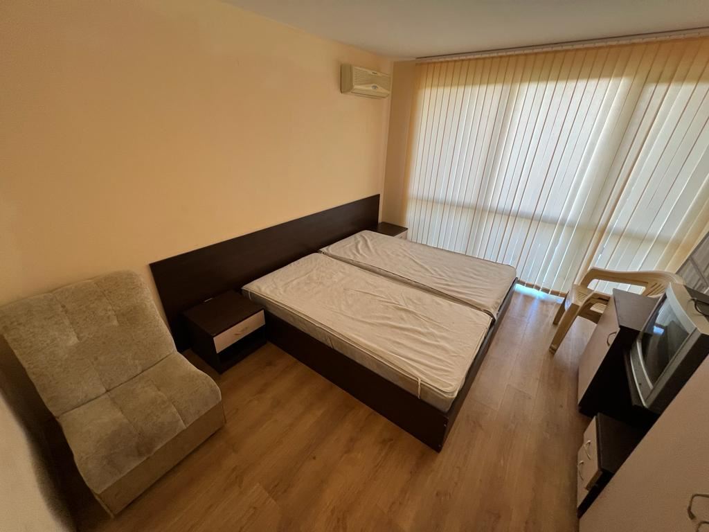 Lovely studio in a well-maintained, low maintenance complex in Sunny Beach. It consists of living room with kitchen, bathroom with toilet and balcony. Cozy six-storey complex with swimming pool and excellent location located in the central part of the resort, the distance to the sea is about 500 meters, walking distance within 5 minutes. Nearby there are supermarkets, restaurants, bus stop and other infrastructure. The flat with size 35m2 is located on the lowest ground floor and it is offered furnished. The beach of Sunny Beach, bordering its semicircular bay extends for 8 km and is 60 m wide, the sand is fine and clean, golden in colour, forming in some places picturesque dunes.