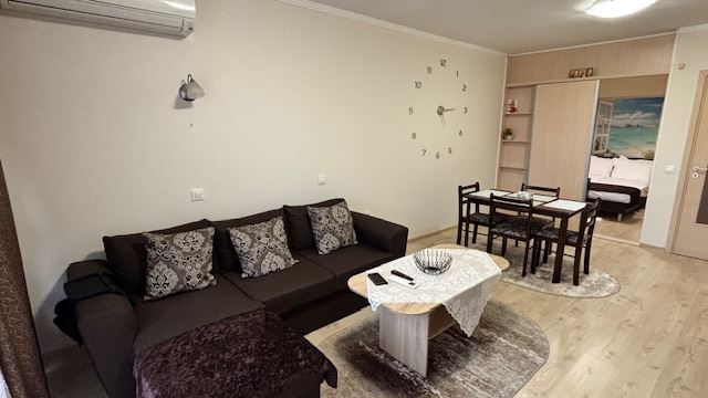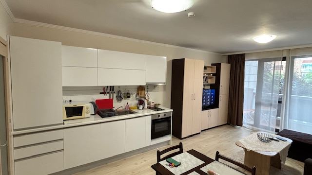 The apartment offers a functional layout and a modern interior. Its location is unbeatable – just 100 meters from the wide sandy beach and within walking distance of the Old Town of Nessebar, a UNESCO World Heritage Site. The vibrant center of the new town is only 200 m away, where you will find a pedestrian promenade, a beautiful park, popular restaurants, cozy cafés, shops, supermarkets, schools, a kindergarten, bank branches, and public transport connections – all within easy reach.