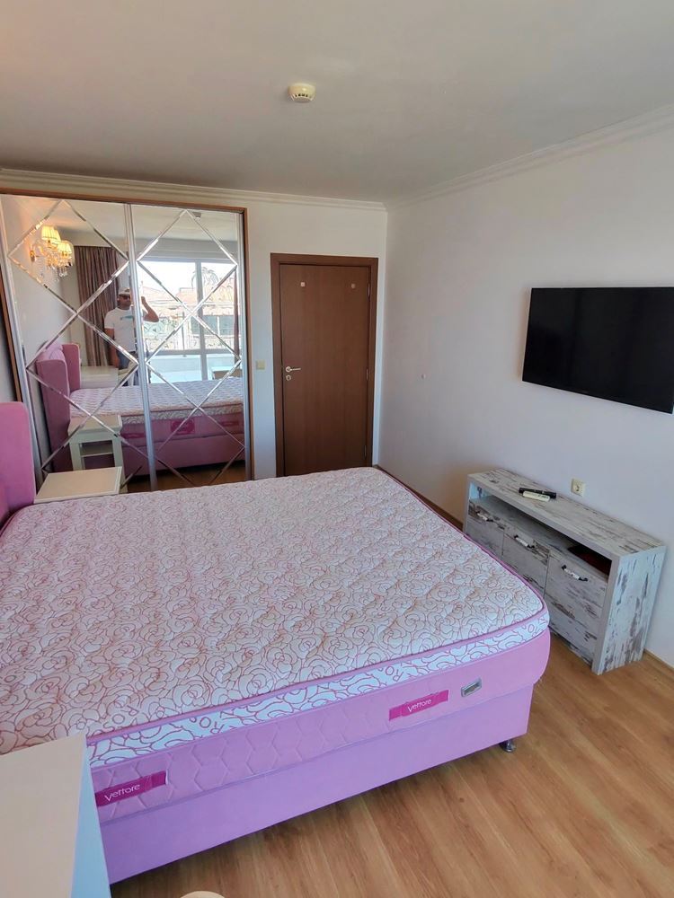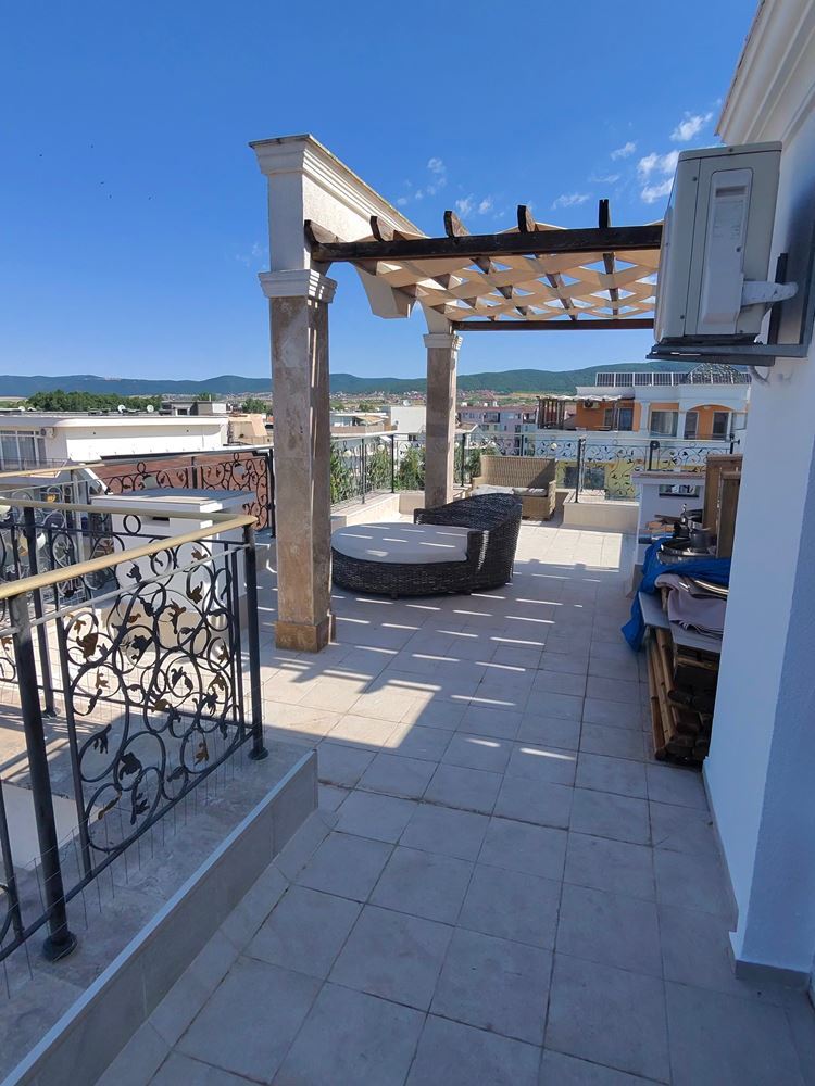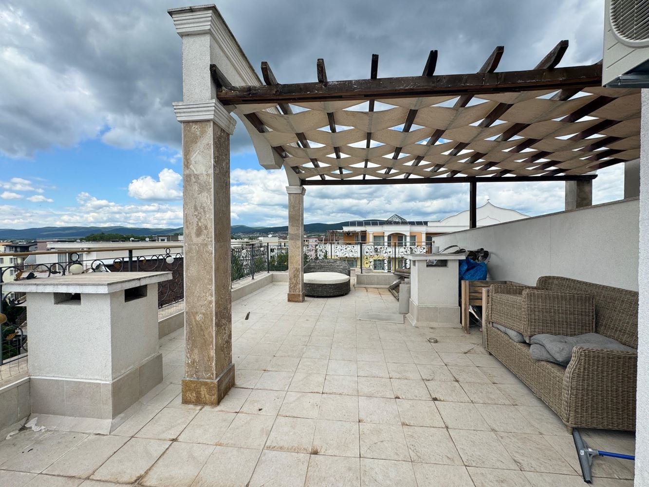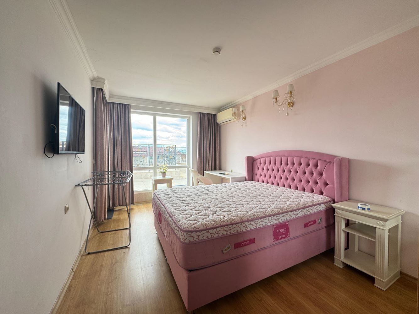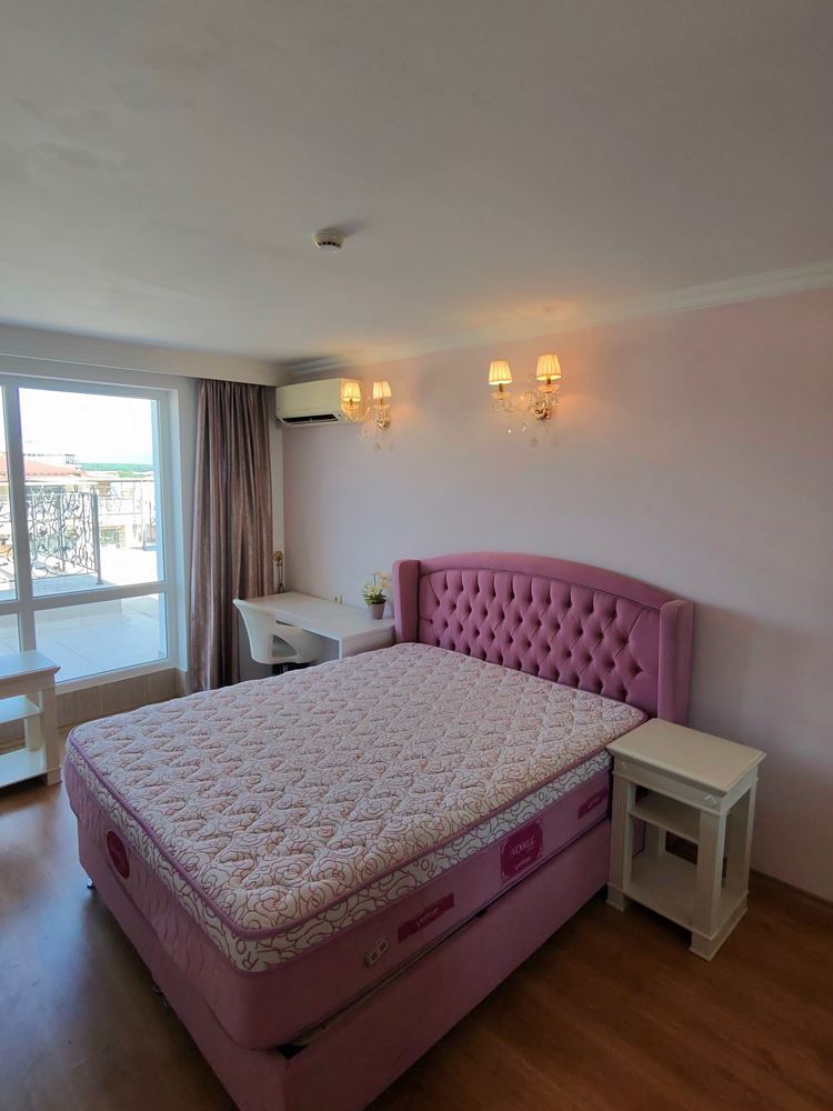 We present to you a unique one bedroom penthouse located in the heart of the resort. Sunny Beach, which combines luxury, comfort and unforgettable panoramic views. With a total area of 100 m2, this exclusive property is located on the top floor and offers everything you need for your perfect beachfront retreat.The penthouse features a spacious living room that flows seamlessly into a modern equipped kitchen and dining area. The cosy bedroom is the ideal place for peace and relaxation. A bathroom with luxury equipment serves the apartment, providing everything you need for your comfort.