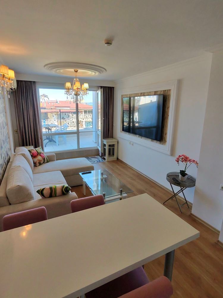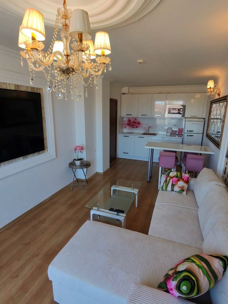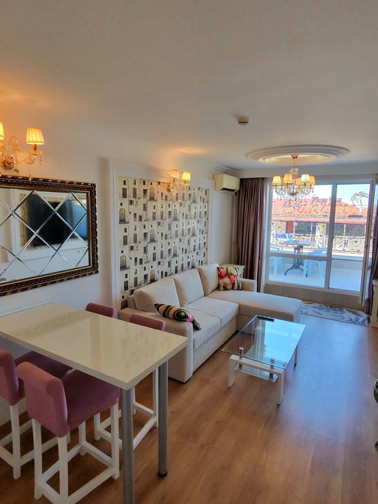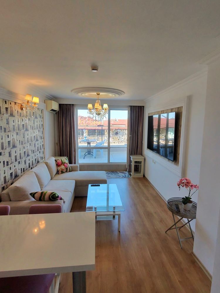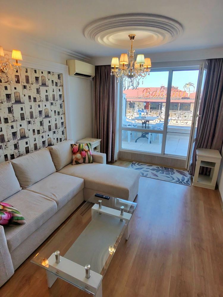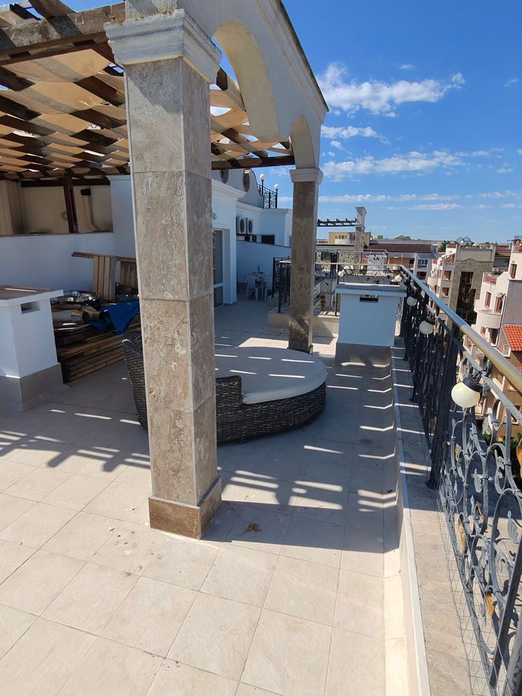 We present to you a unique one bedroom penthouse located in the heart of the resort. Sunny Beach, which combines luxury, comfort and unforgettable panoramic views. With a total area of 100 m2, this exclusive property is located on the top floor and offers everything you need for your perfect beachfront retreat.The penthouse features a spacious living room that flows seamlessly into a modern equipped kitchen and dining area. The cosy bedroom is the ideal place for peace and relaxation. A bathroom with luxury equipment serves the apartment, providing everything you need for your comfort.
