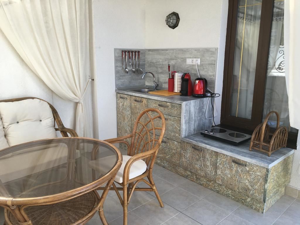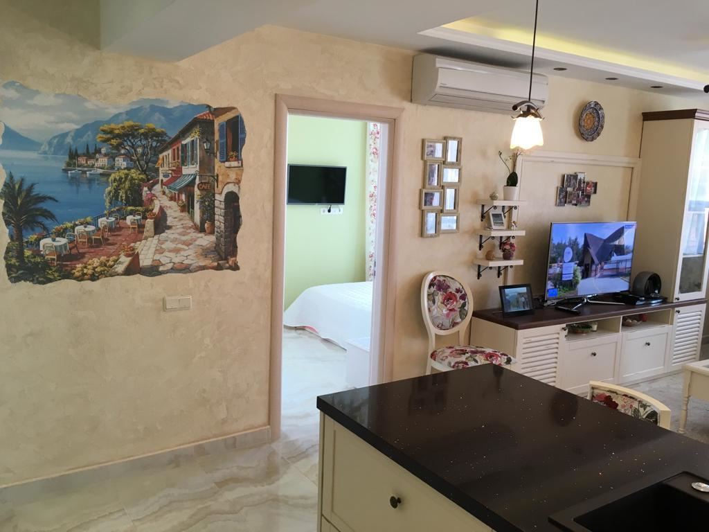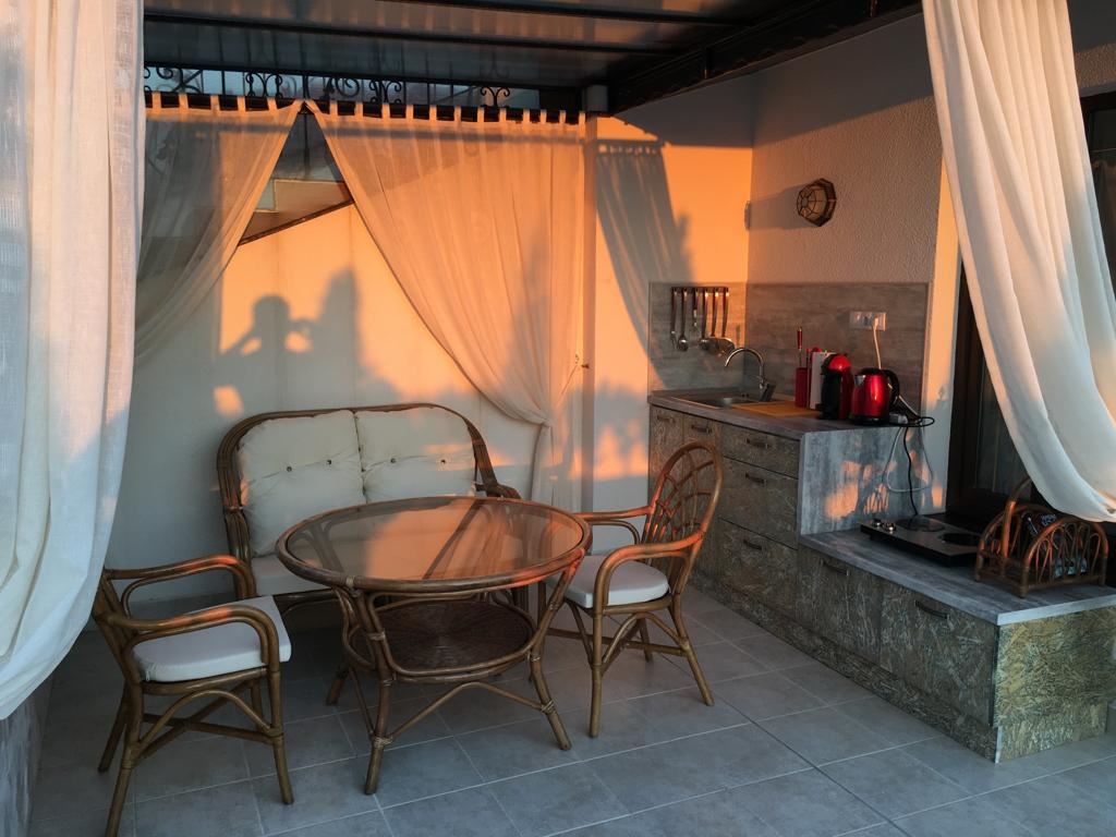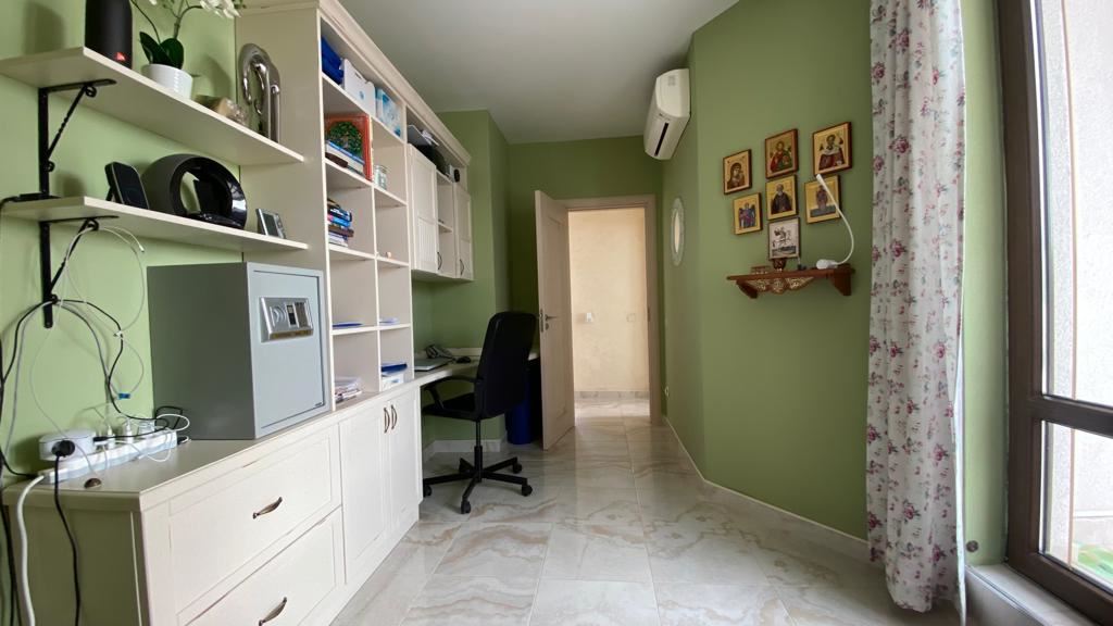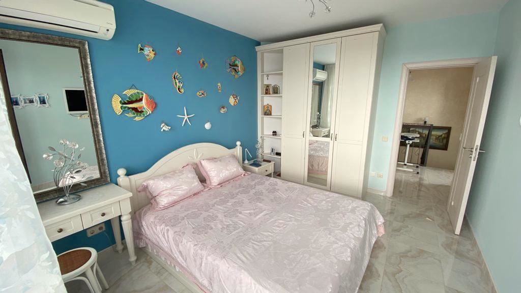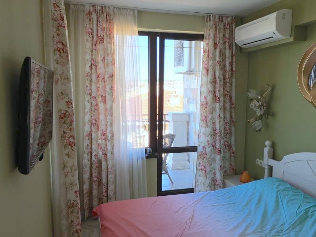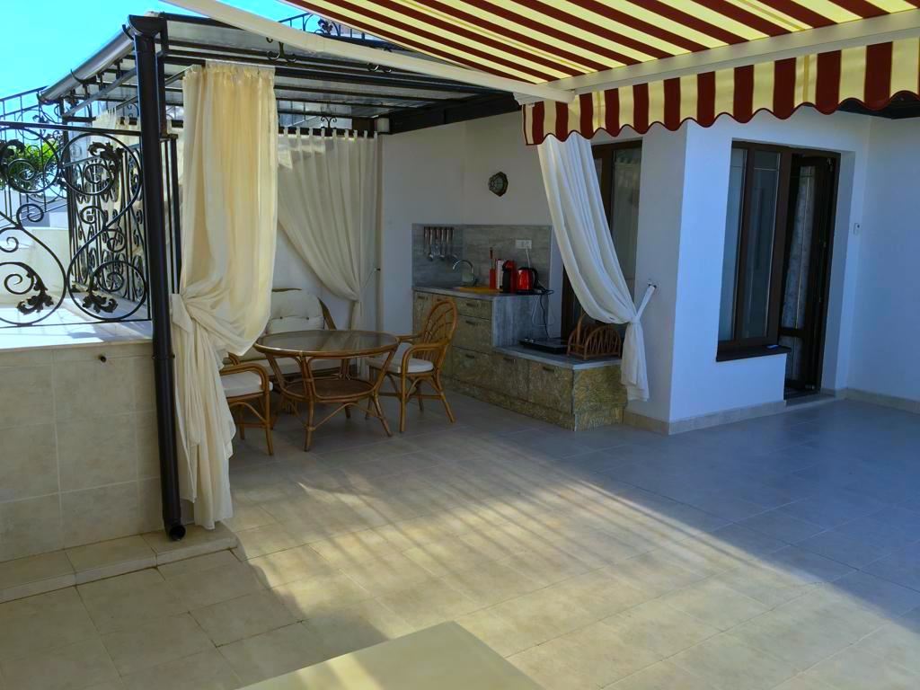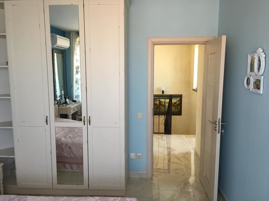 Luxury duplex apartment overlooking the sea in the complex, located on the coast, with incredible views of the seascape in the amazingly beautiful prestigious resort town of Sveti Vlas. The apartment of 216 m2 is located on the fourth and fifth floors and consists of a living room with equipped kitchen, dining area, bedroom, bathroom - on the first level. On the second level there are two bedrooms, two bathrooms, a patio-terrace with a equipped kitchen area with barbecue and sunbathing area. The apartment is in perfect condition, furnished with quality furniture and appliances. There is everything you need for all year round living and summer vacations. The architectural design of the complex impresses with its diversity, you can enjoy a walk in the fresh air or relax under the fabulous tents. There are beautiful statues, fountains and trees on the territory of the complex. The total area of the greened territory is about 3000 m2. The complex has its own infrastructure, there are all conditions for convenience, full recreation and year-round residence on the seashore.