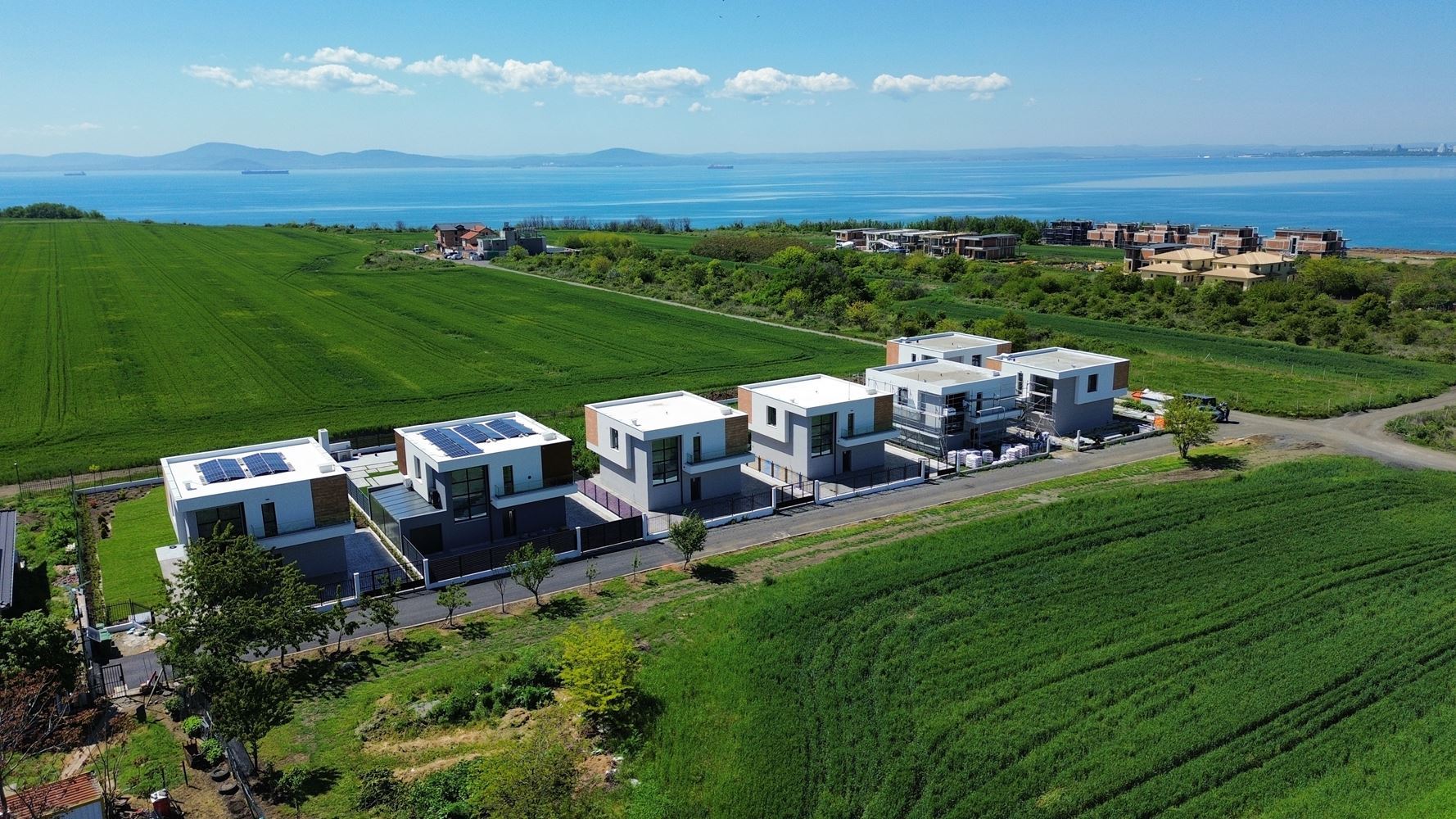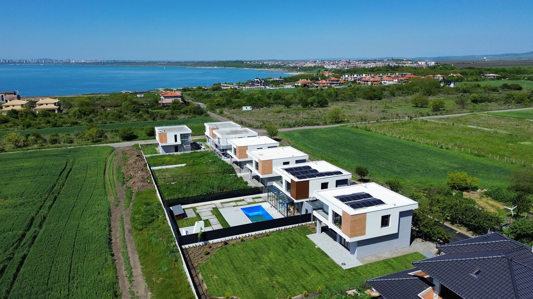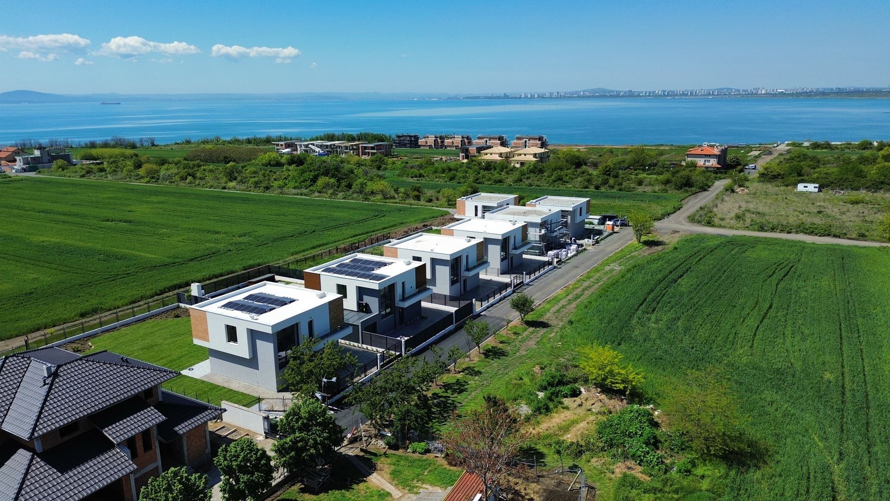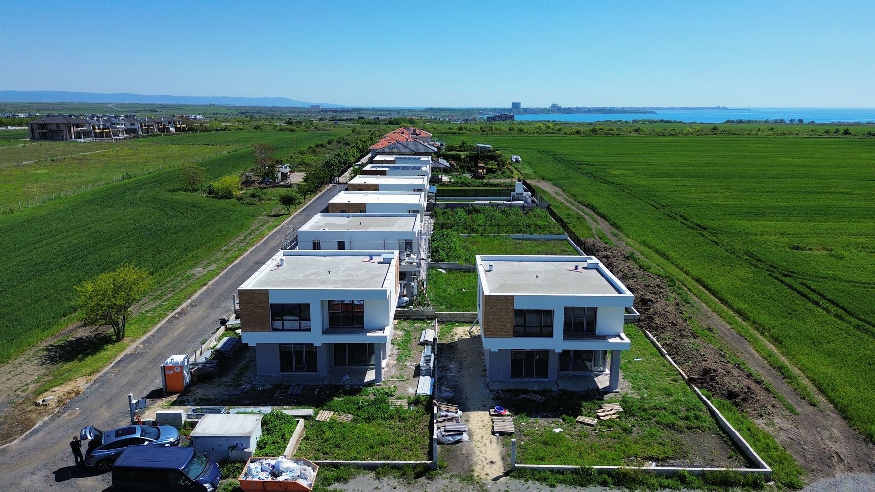 Luxurious modern two-storey houses under construction with the possibility of building a swimming pool, located in a beachfront location, 8 minutes by car to Bourgas. The villas are in a unique location close to the sea and are completely private with their own yard and parking spaces. The layout of the houses is as follows: At the ground floor there is a living room, a kitchen-dining room, a toilet, a pantry, a veranda which leads out to the yard. On the first floor there are three bedrooms, one with dressing room, two bathrooms with WC and two terraces. The idea behind the houses is to create a special holiday and permanent residence just a short drive from the city. The houses are located in close proximity to the sea. Construction is scheduled to start in April 2023 and finish in December 2024.