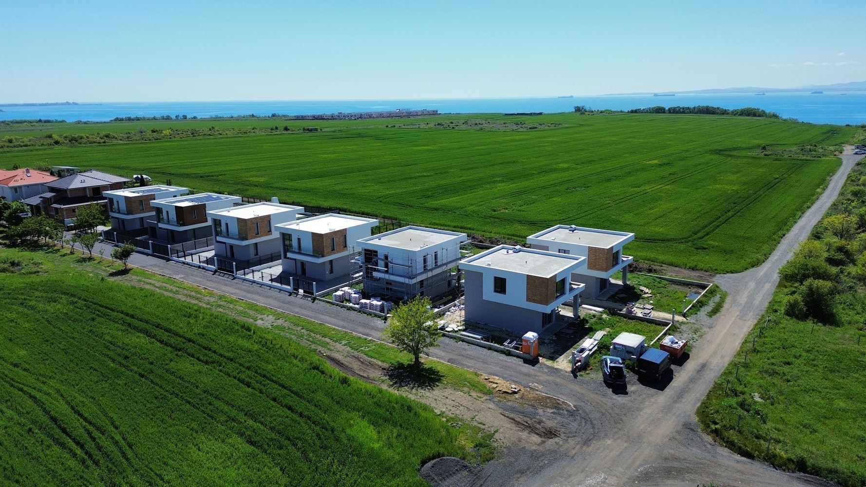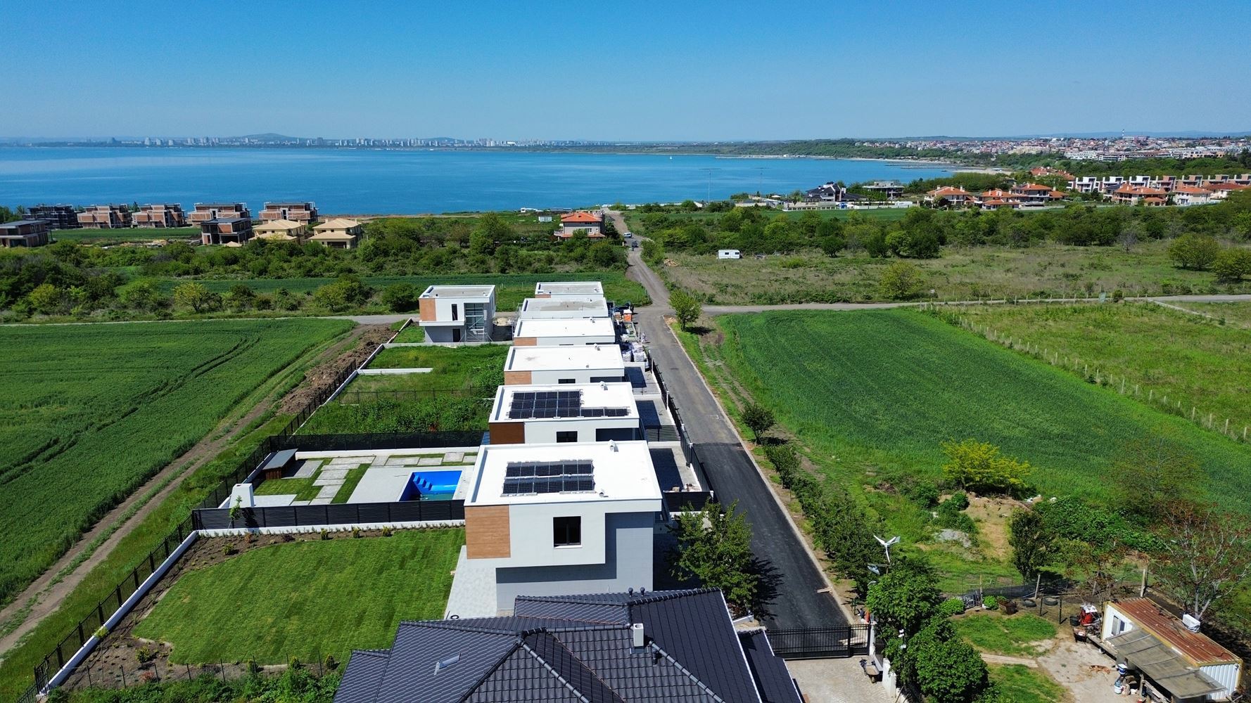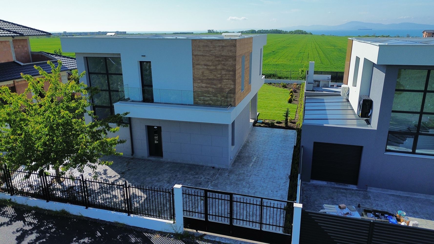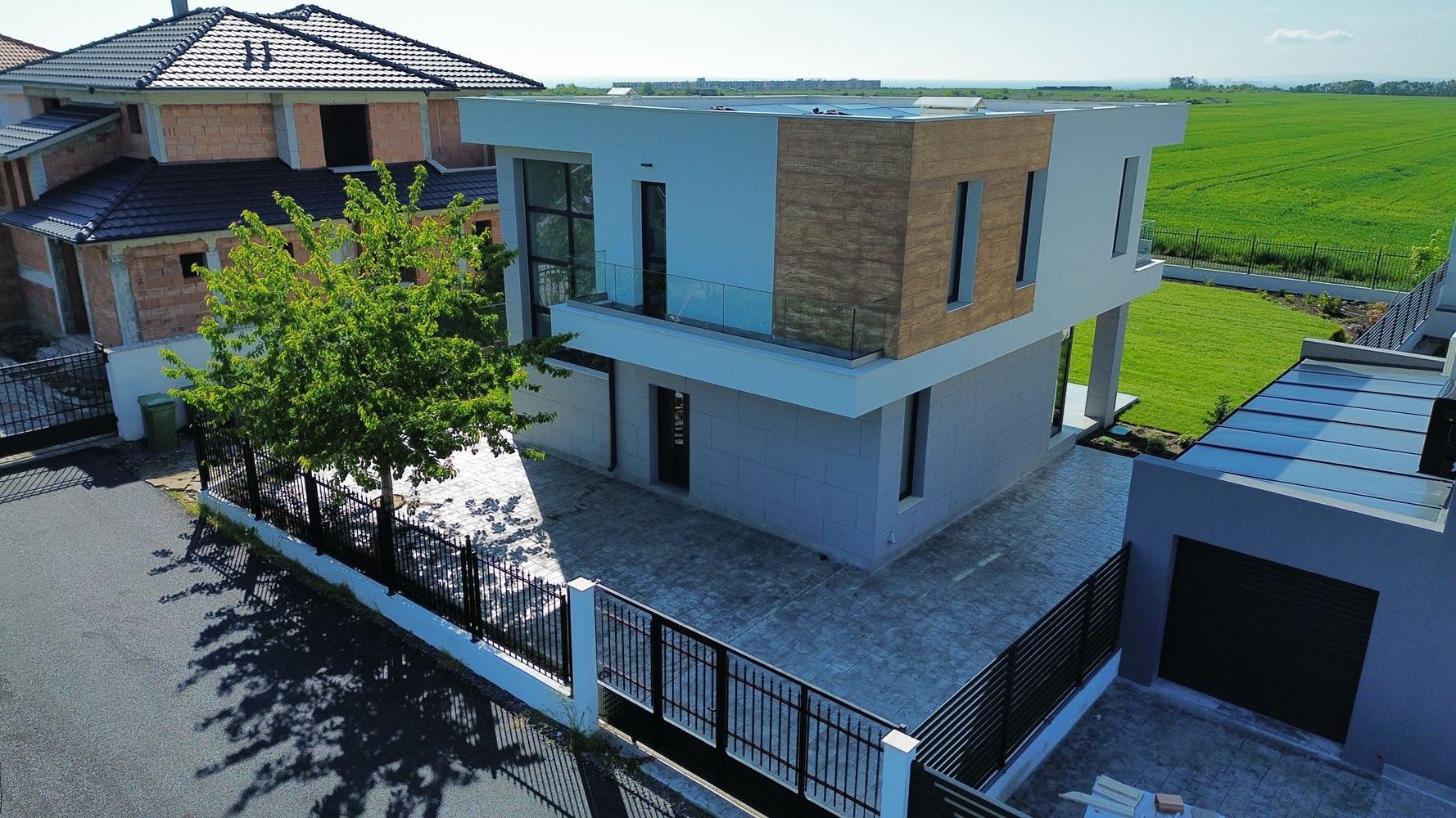 Luxurious modern two-storey houses under construction with the possibility of building a swimming pool, located in a beachfront location, 8 minutes by car to Bourgas. The villas are in a unique location close to the sea and are completely private with their own yard and parking spaces. The layout of the houses is as follows: At the ground floor there is a living room, a kitchen-dining room, a toilet, a pantry, a veranda which leads out to the yard. On the first floor there are three bedrooms, one with dressing room, two bathrooms with WC and two terraces. The idea behind the houses is to create a special holiday and permanent residence just a short drive from the city. The houses are located in close proximity to the sea. Construction is scheduled to start in April 2023 and finish in December 2024.