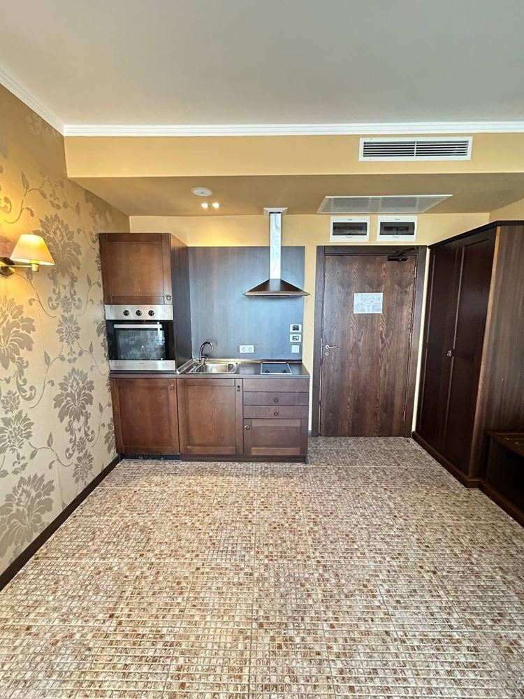 It consists of an entrance hall, a spacious living room with kitchenette, a separate bedroom, a bathroom with toilet, and a balcony with a beautiful view of the resort.